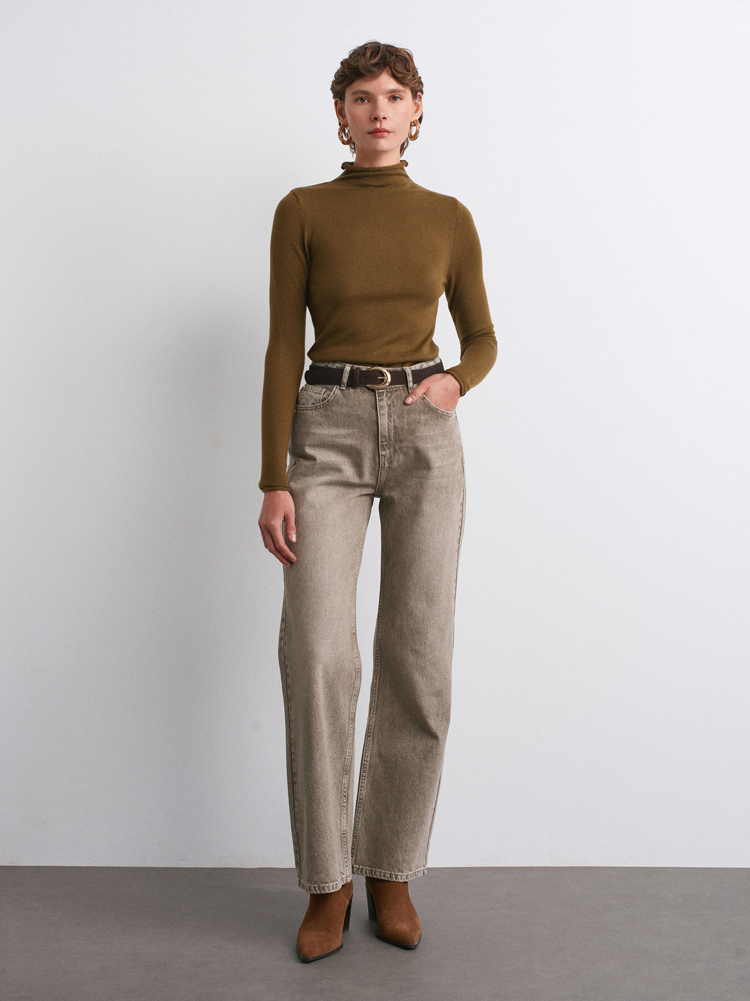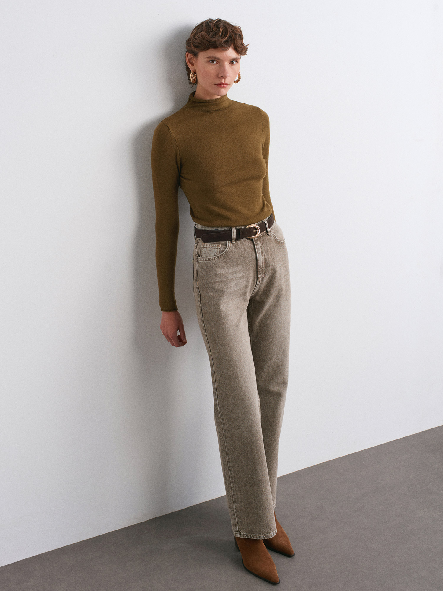 72034 Kar Yıkama Renkli Denim Pantolon-Haki