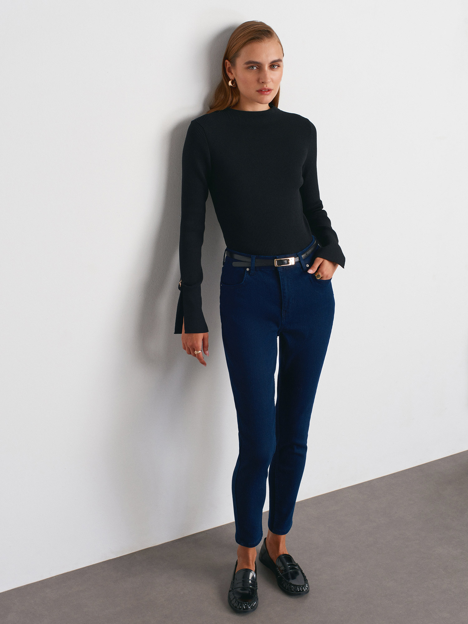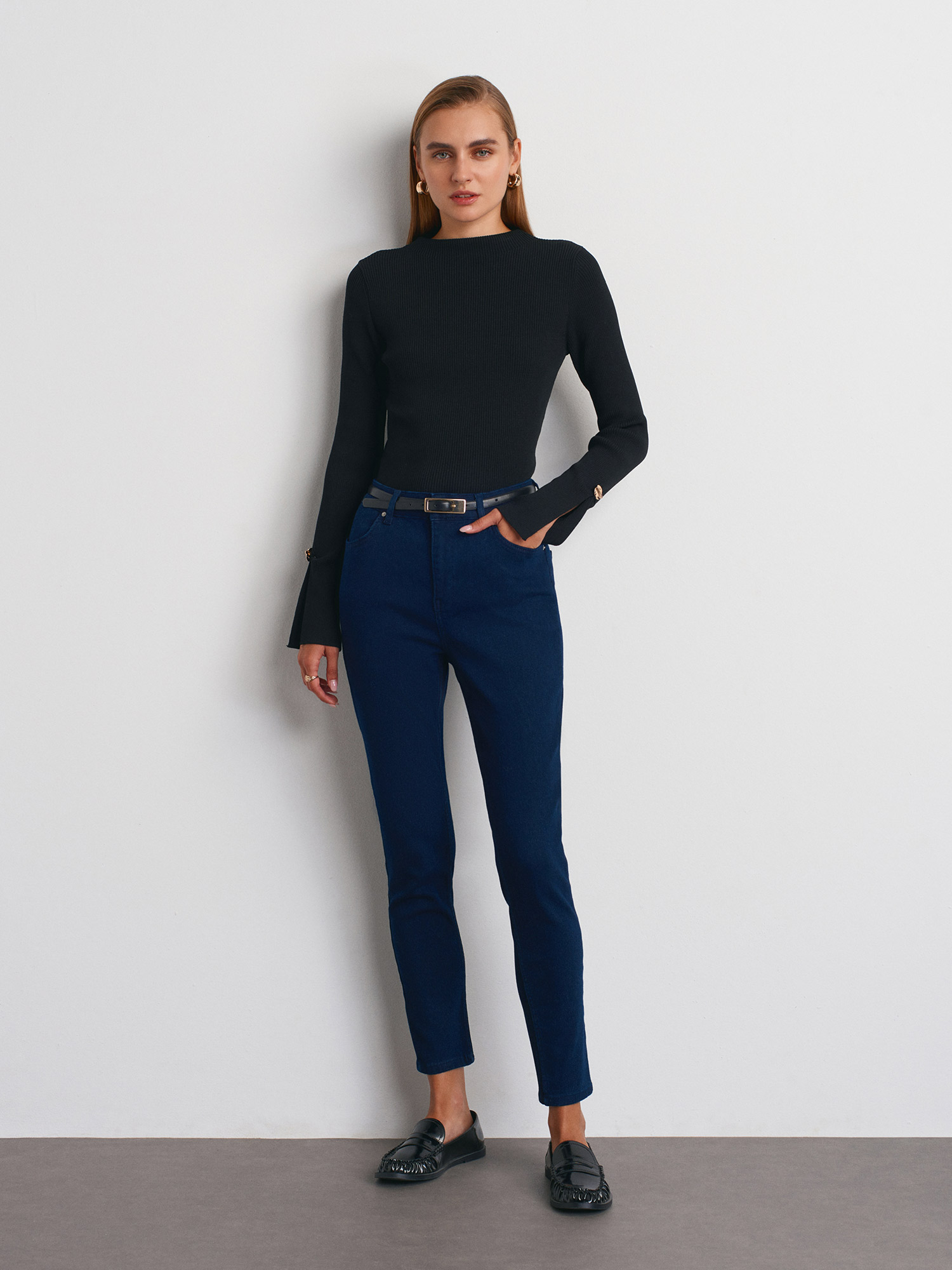 72042 Likralı Darpaça Denim Pantolon-Koyu Laci.