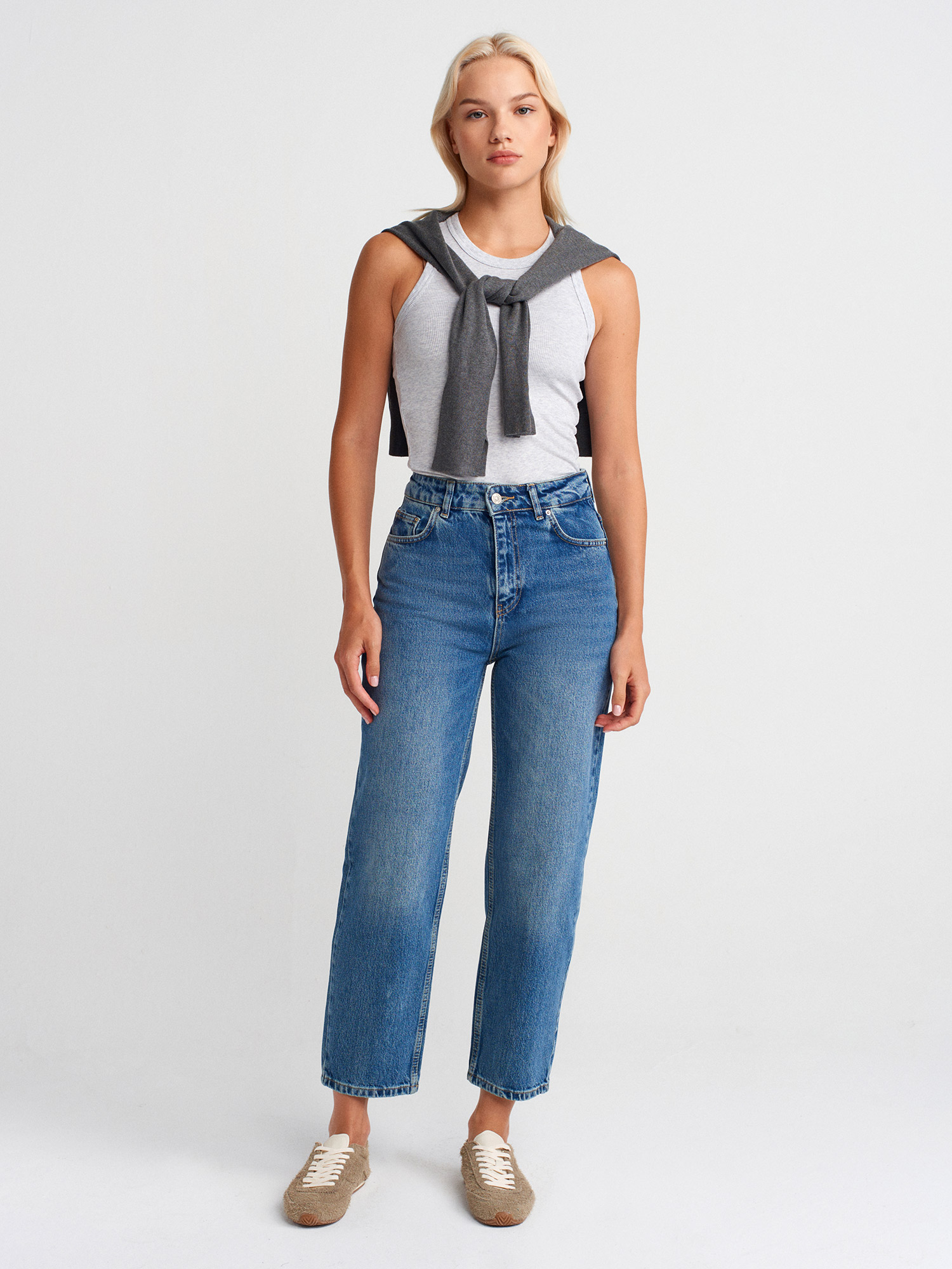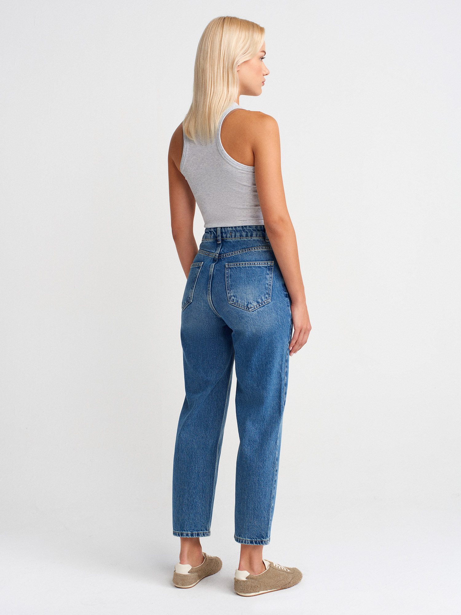 72043 Kalın Kumaş Relax Fit Denim Pantolon-Mavi