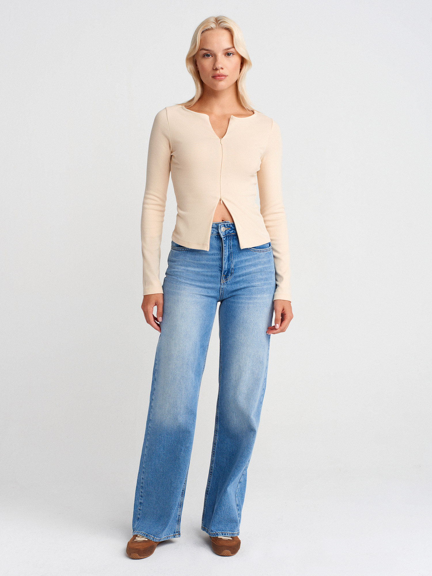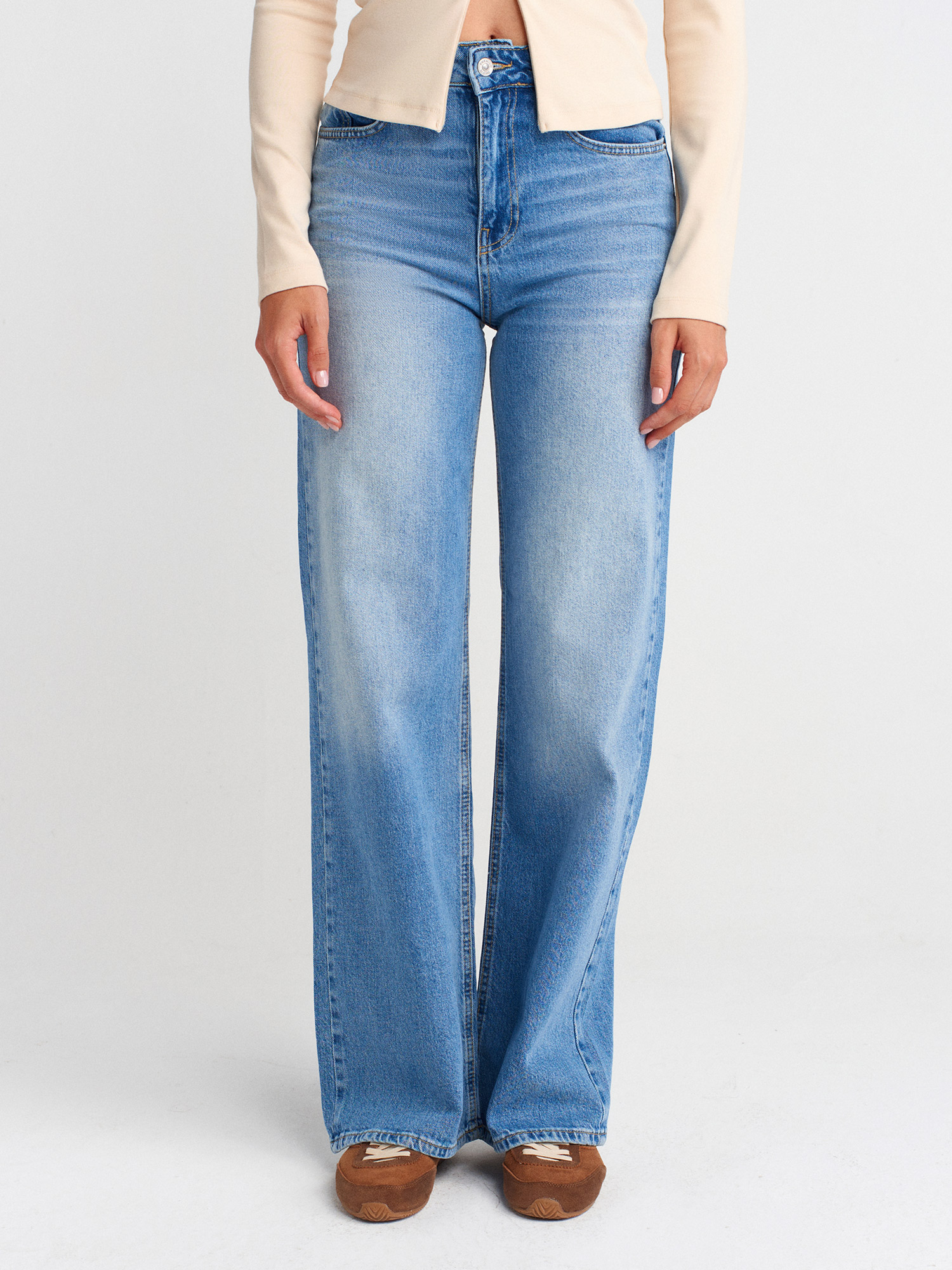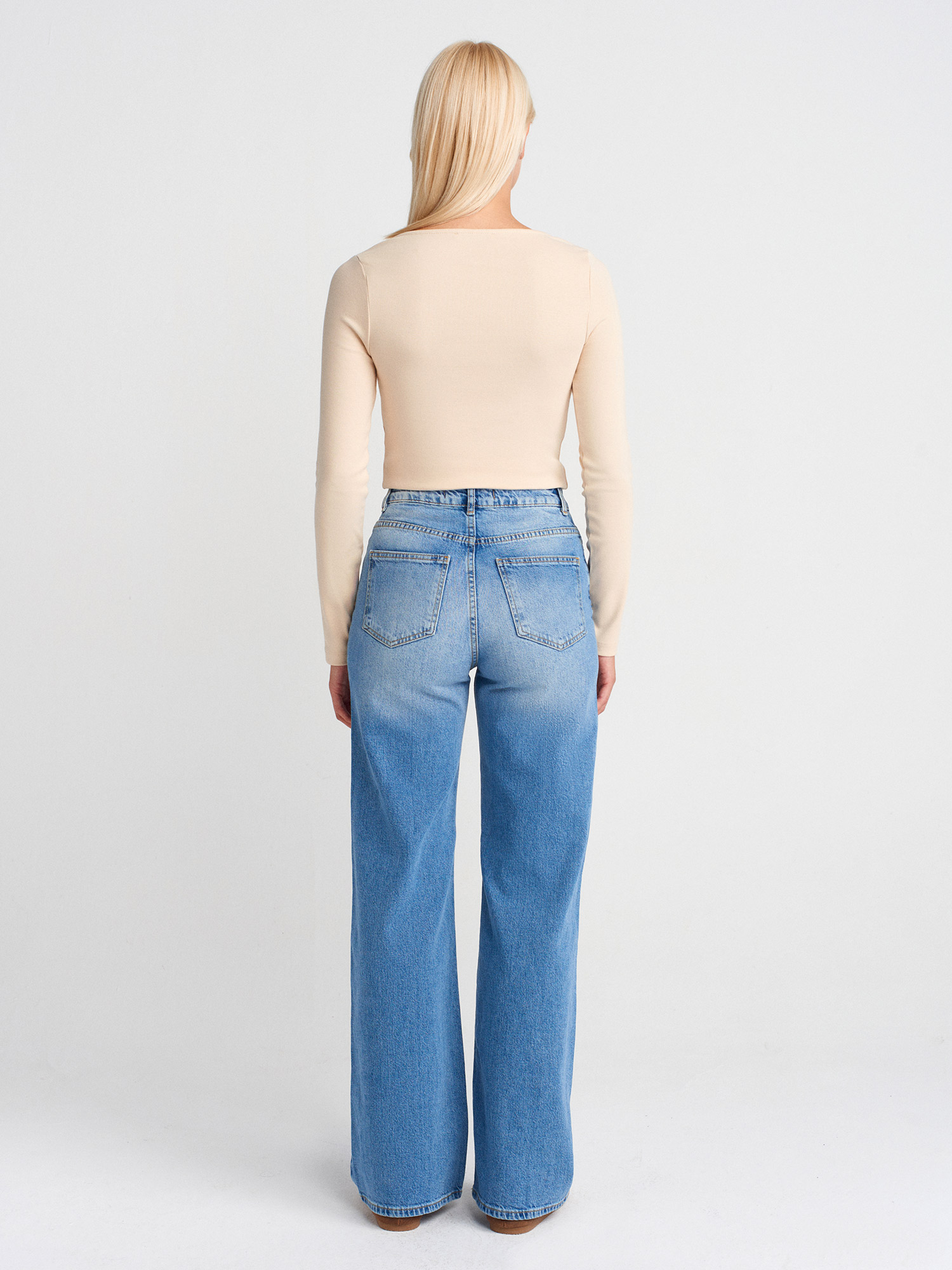 72047 Likralı Wideleg Denim Pantolon-Mavi