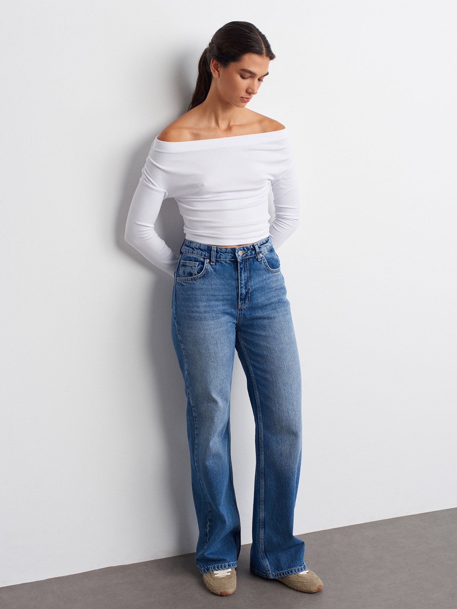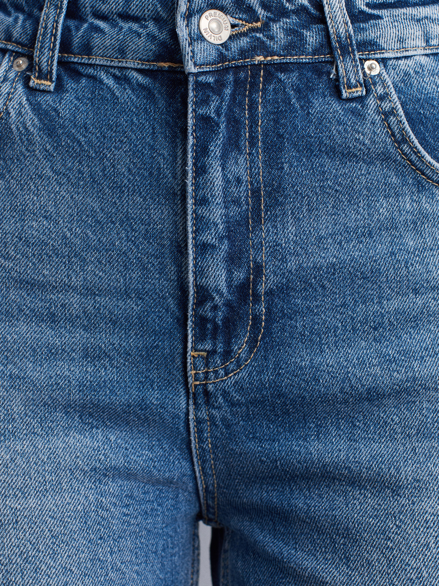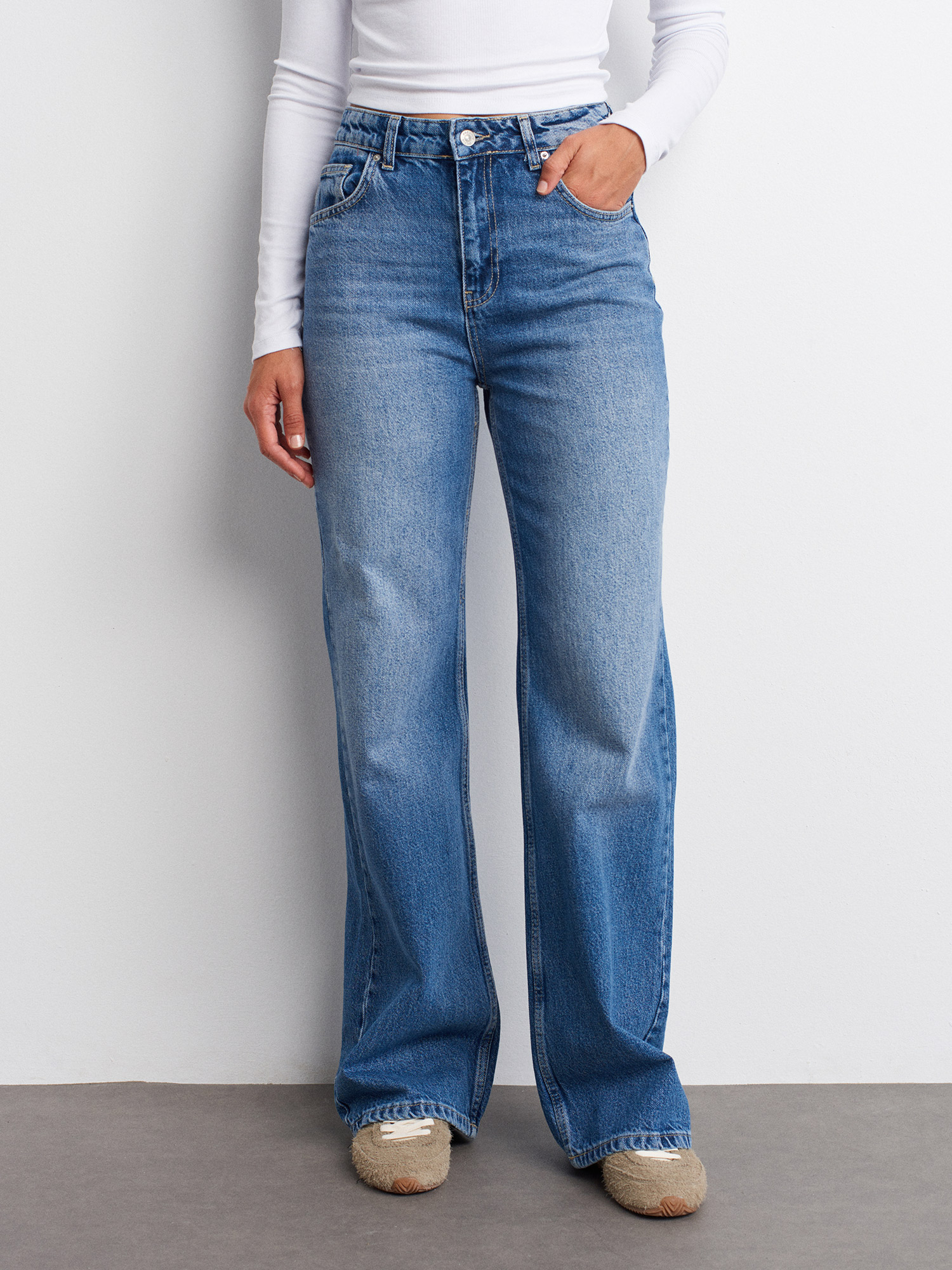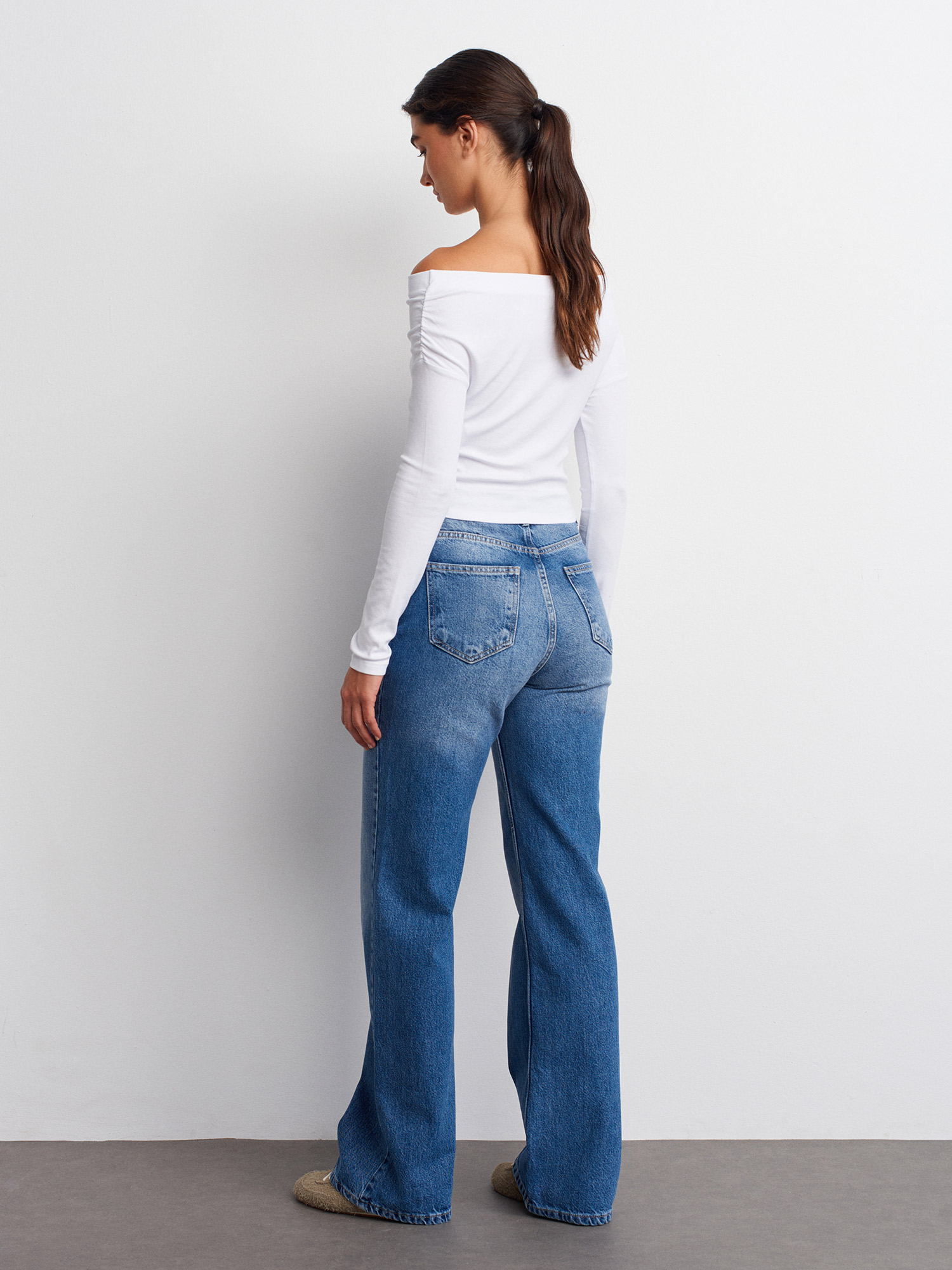 72048 Kırıklı Kumaş Wideleg Denim Pantolon-Mavi