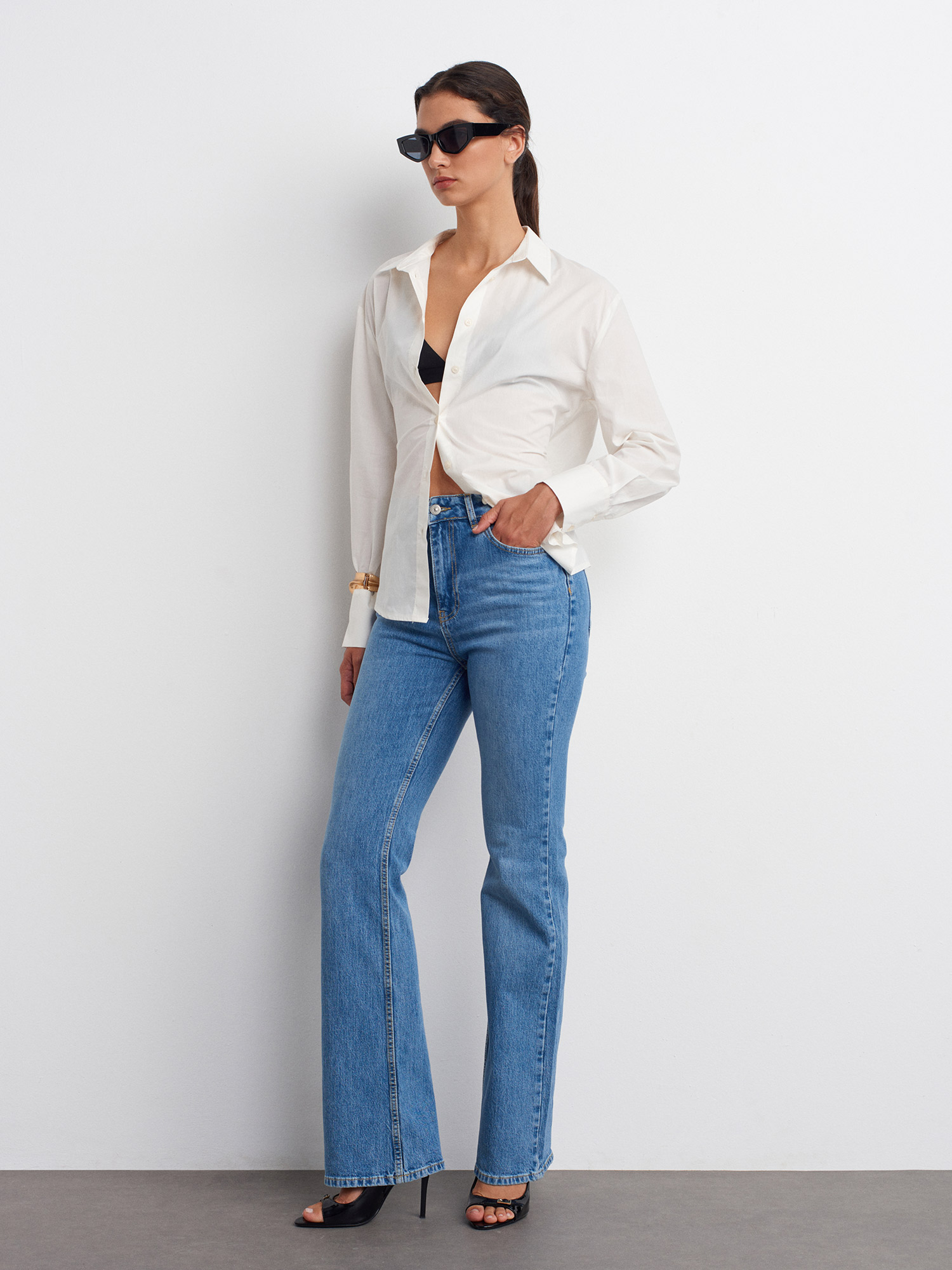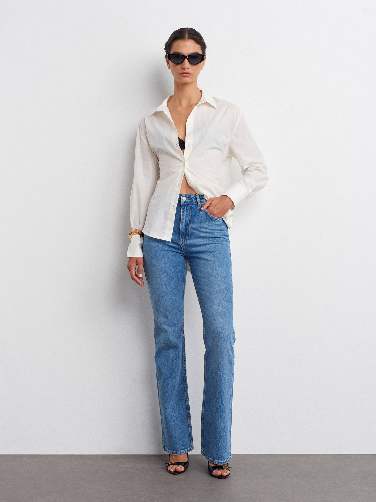 72051 Kar Yıkama Flare Denim Pantolon-Mavi