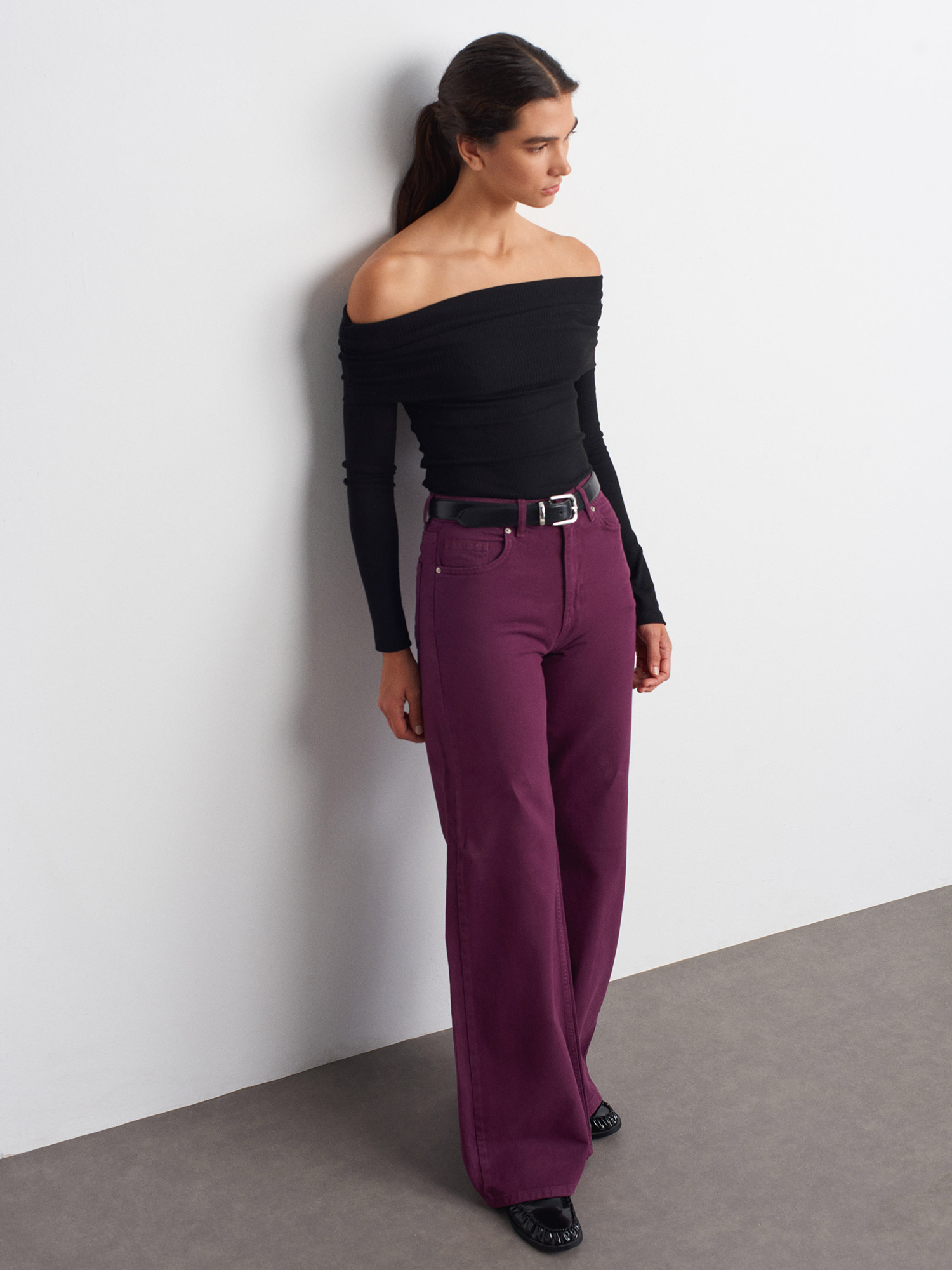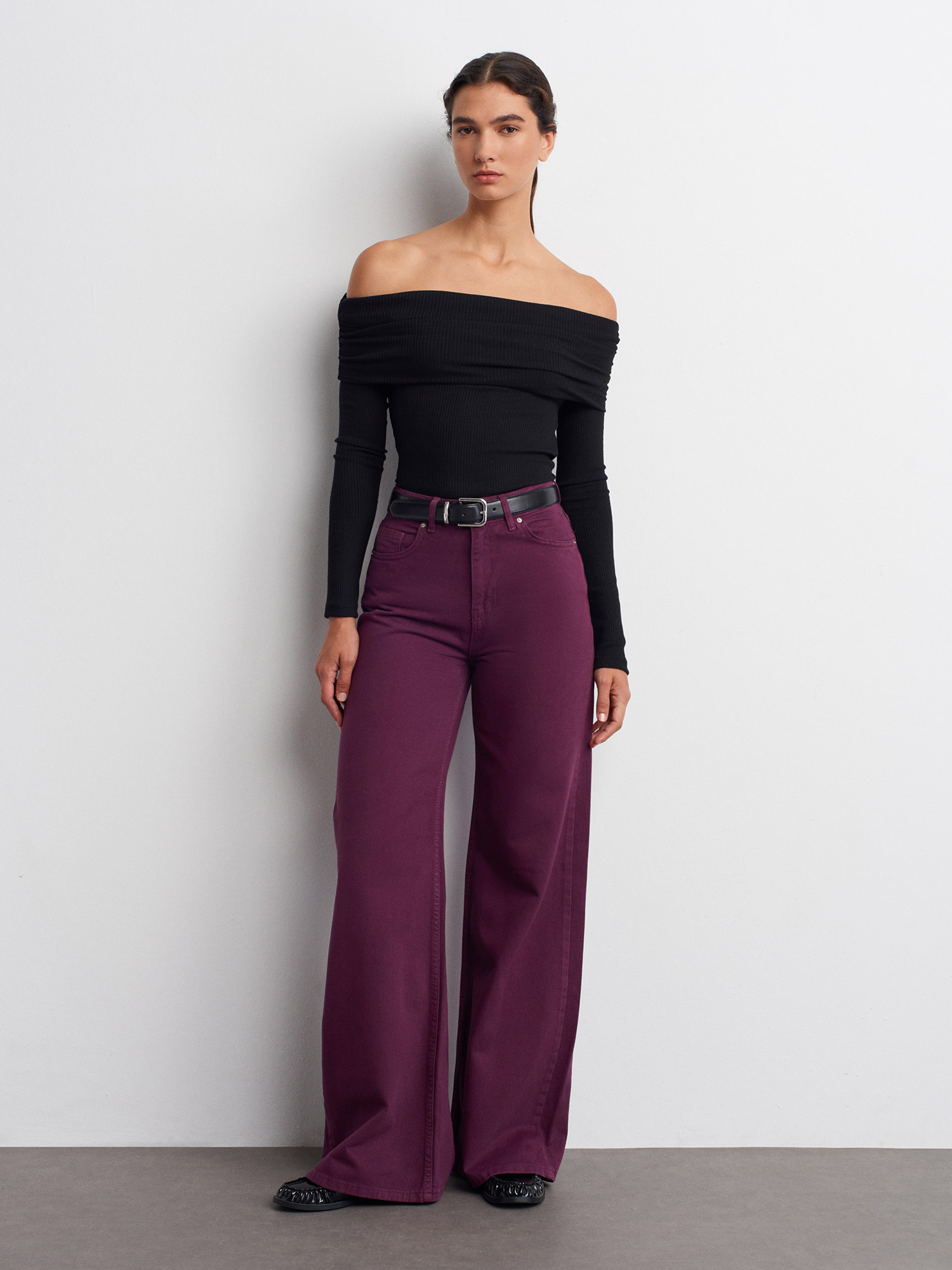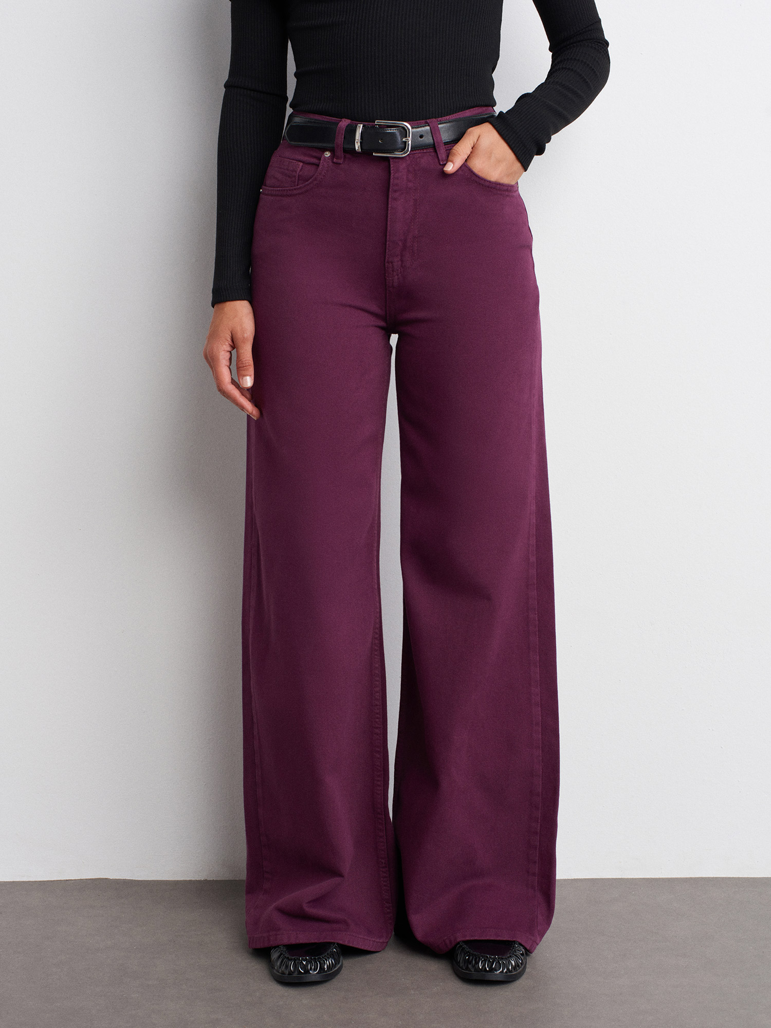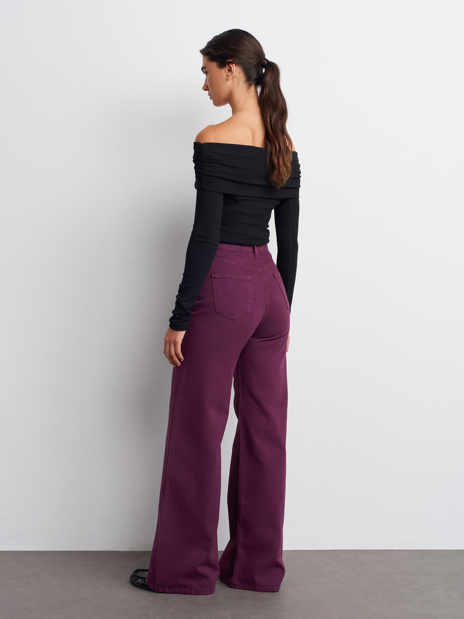 72054 Parçaboya Geniş Kesim Denim Pantolon-Mor
