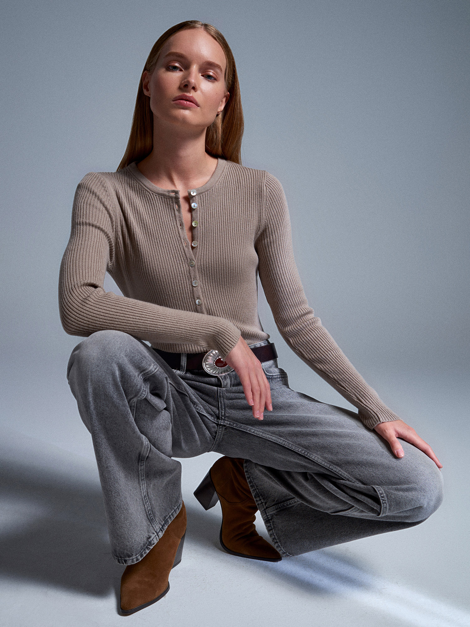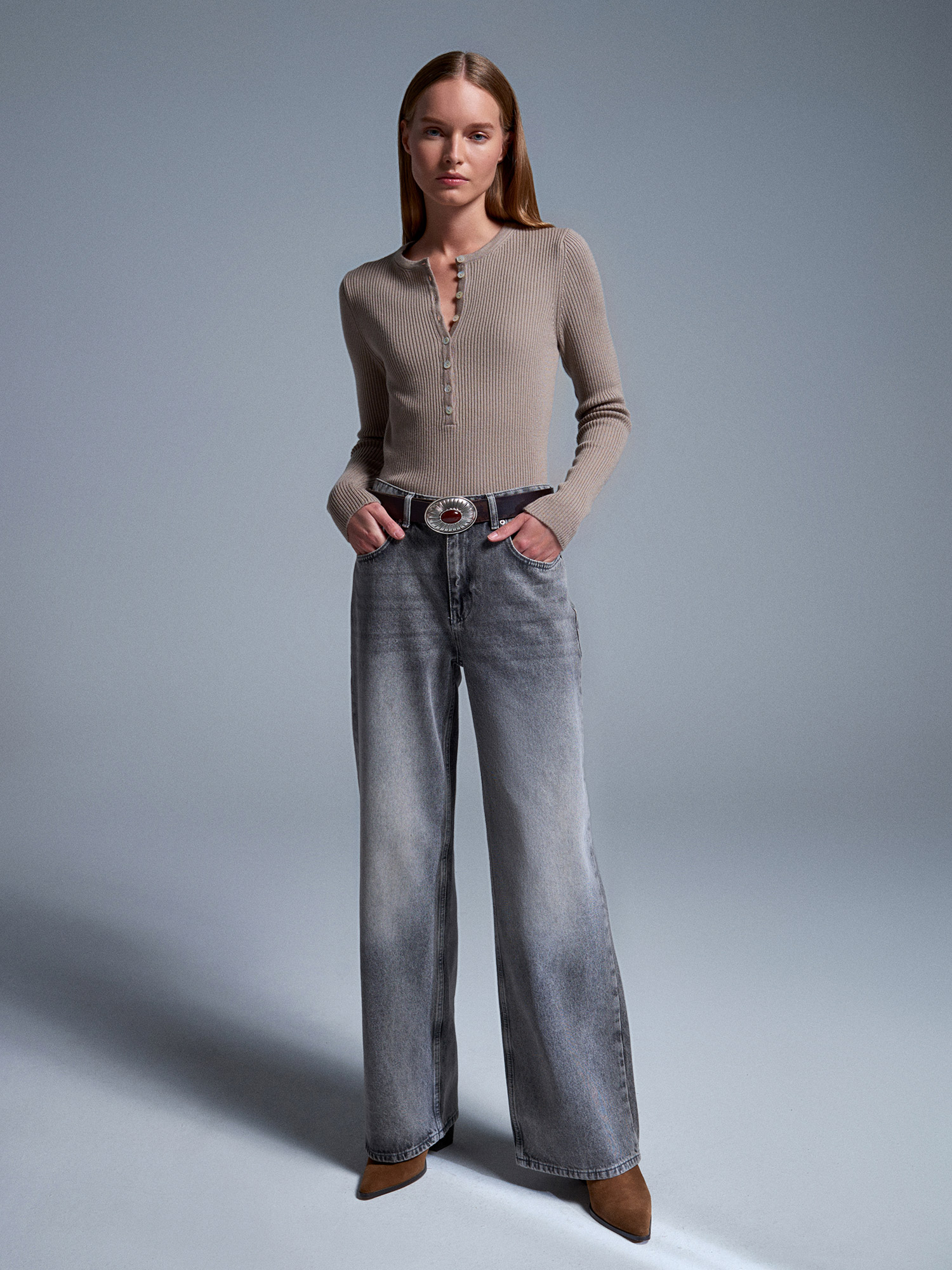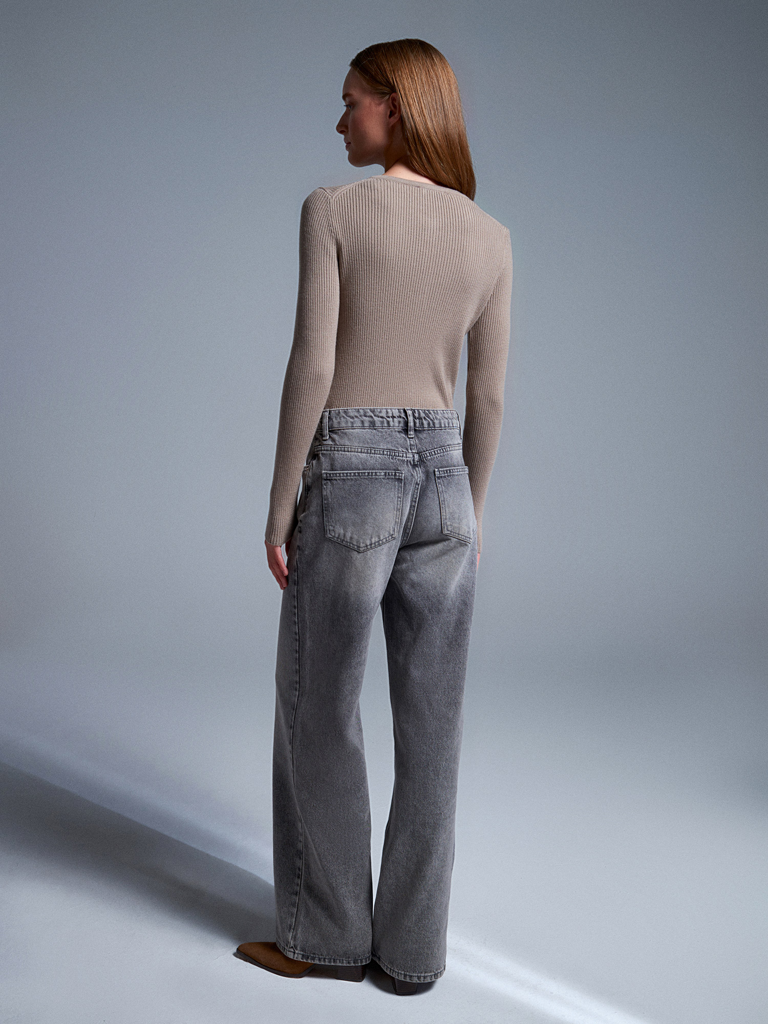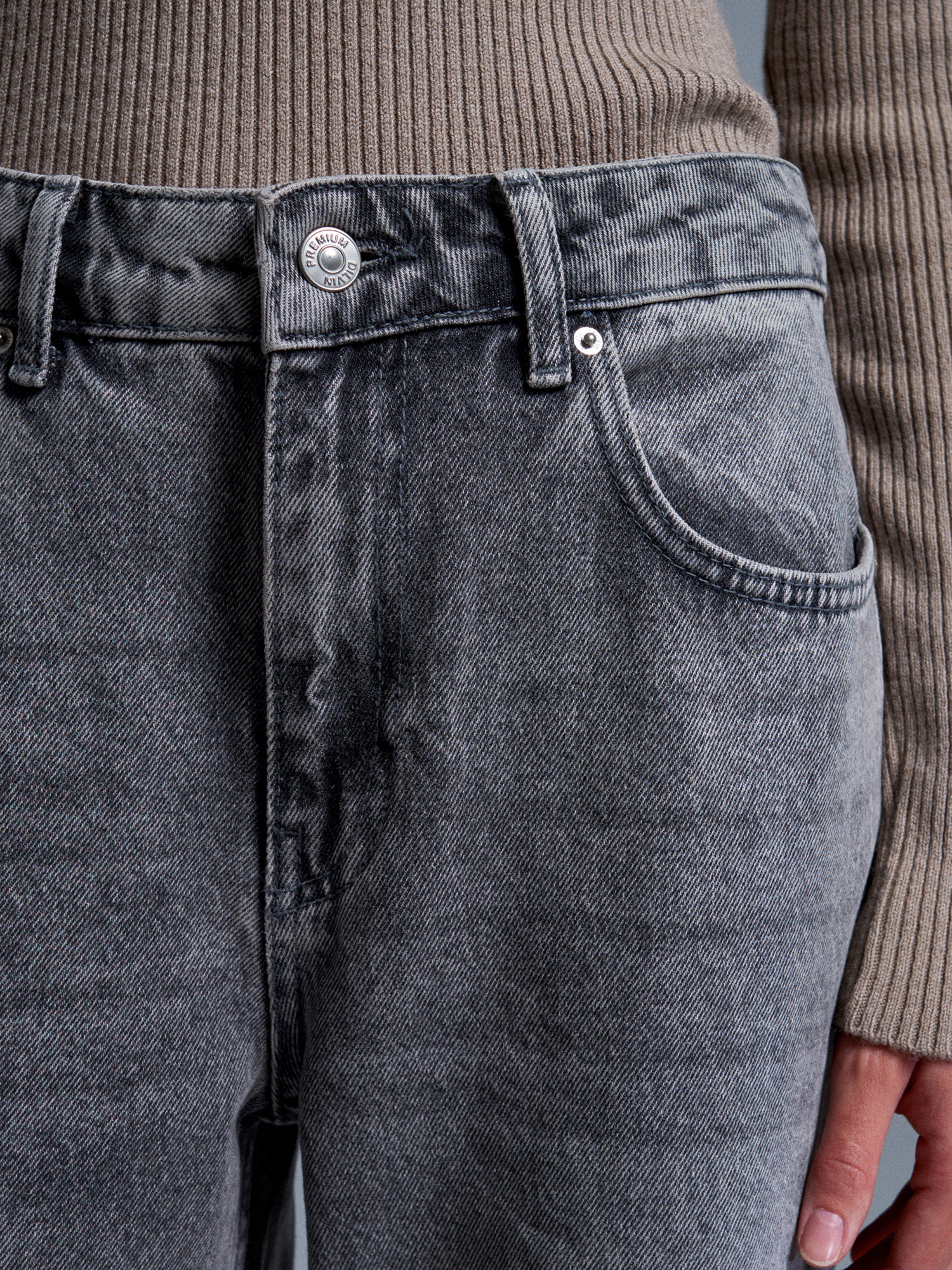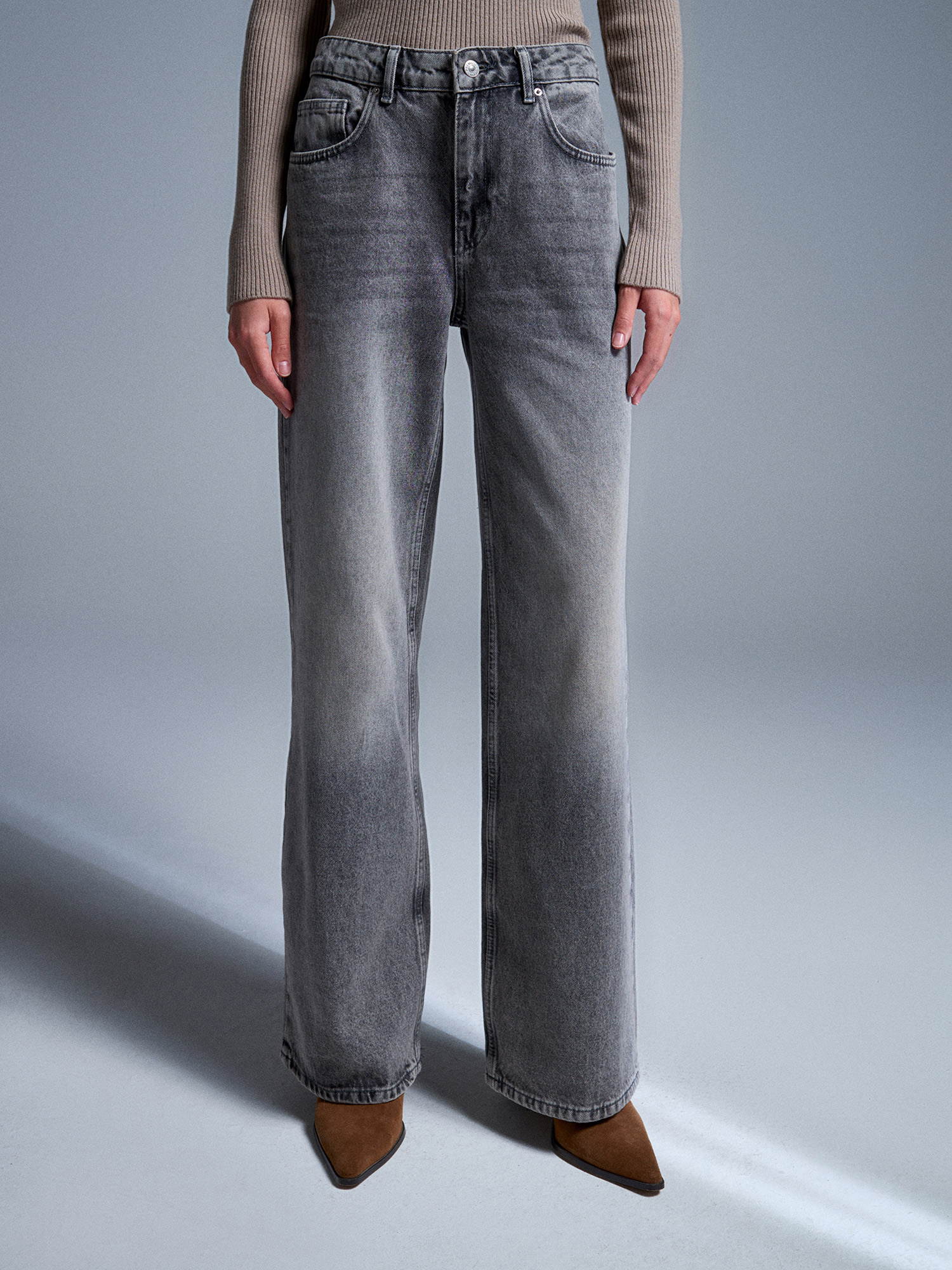 72056 %100 Pamuk Yüksek Bel Wide Leg Jean-Antrasit