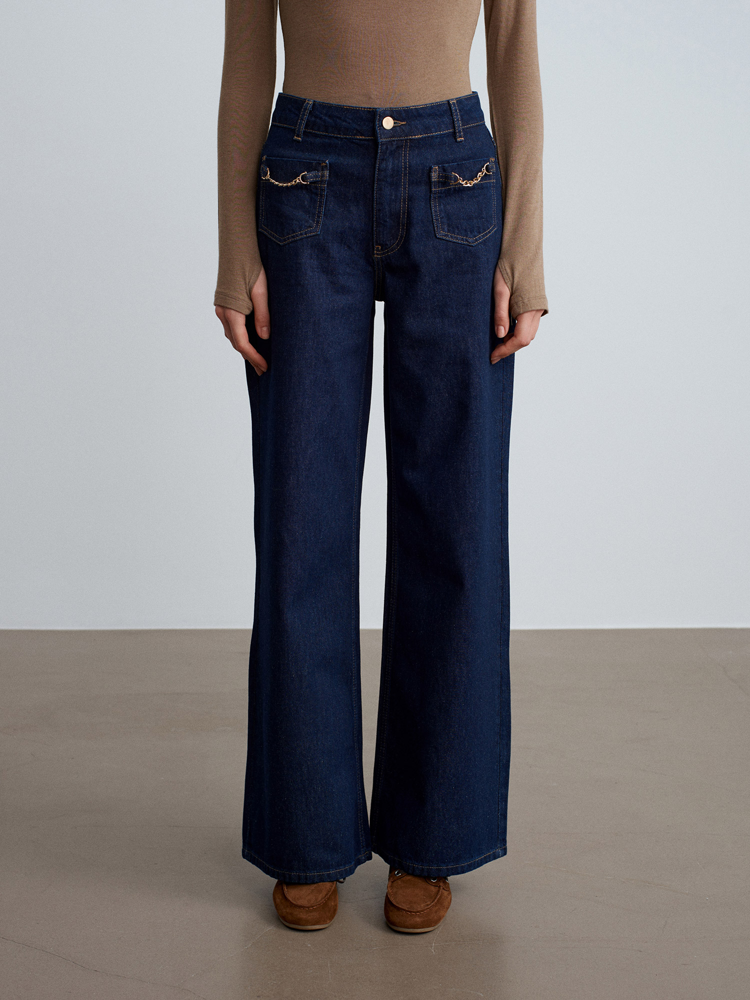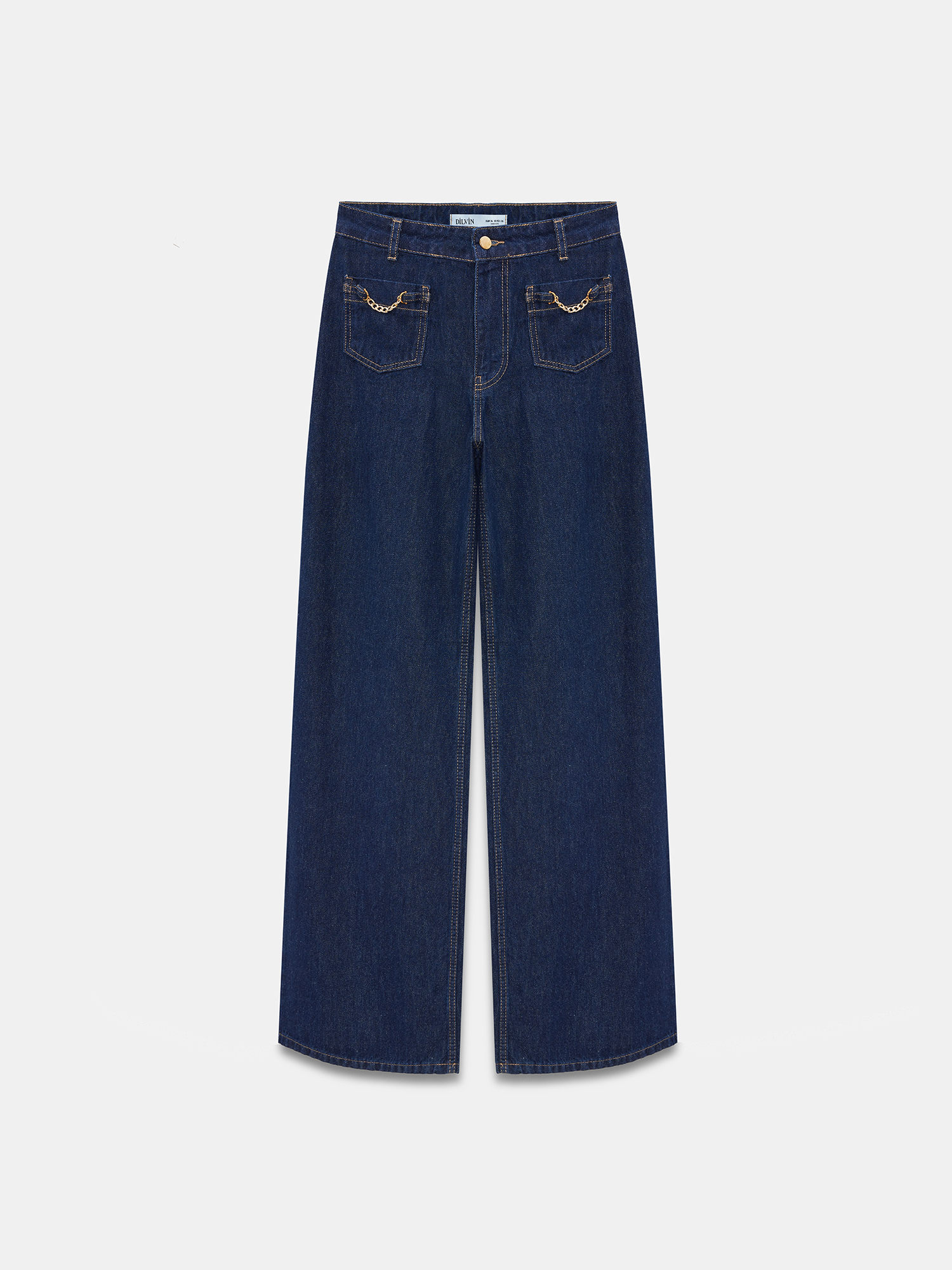 72096 %100 Pamuk Zincir Detaylı Jean-Lacivert