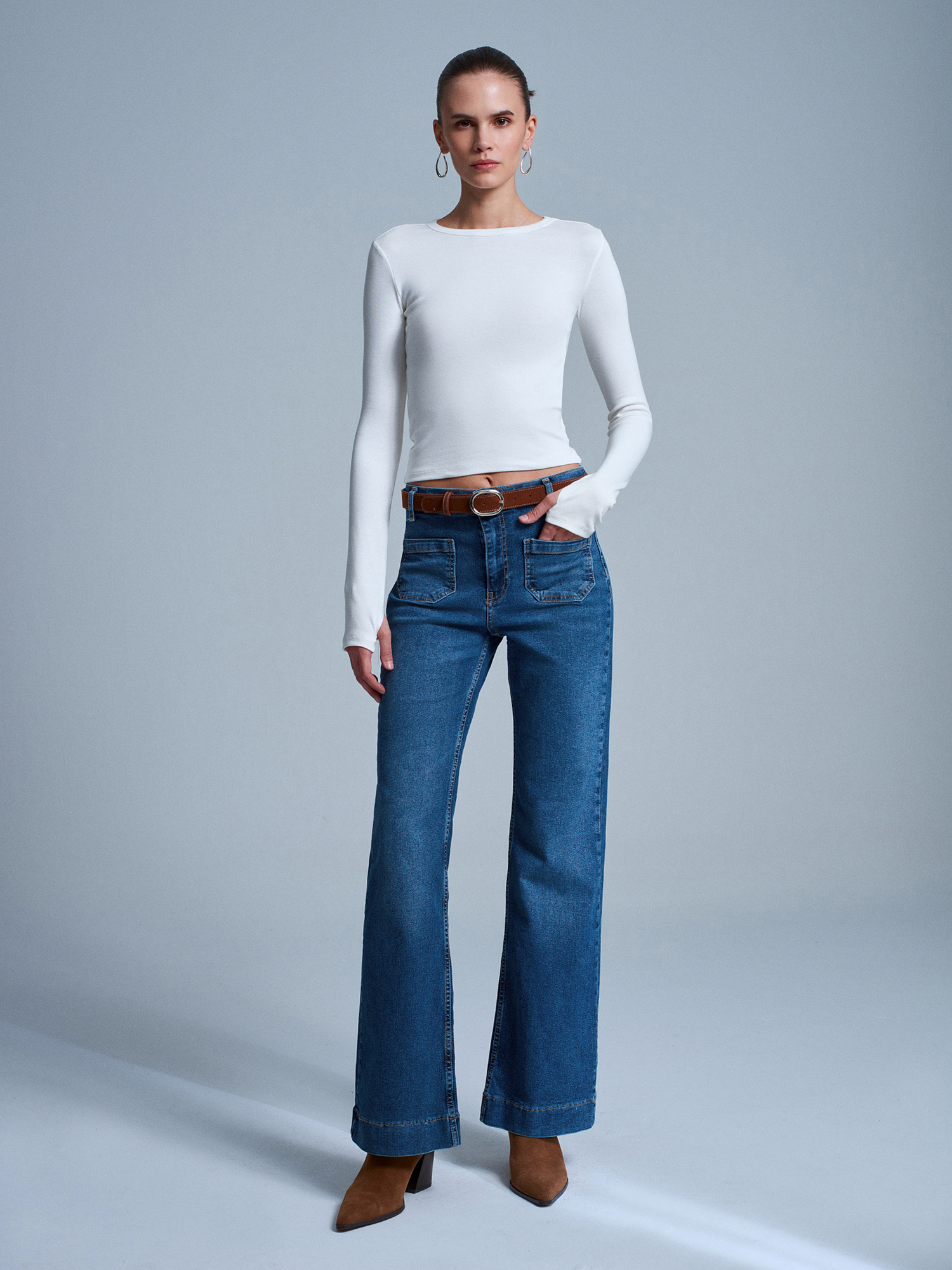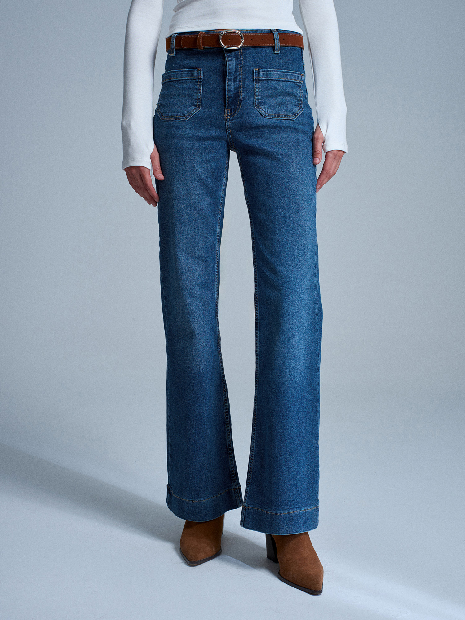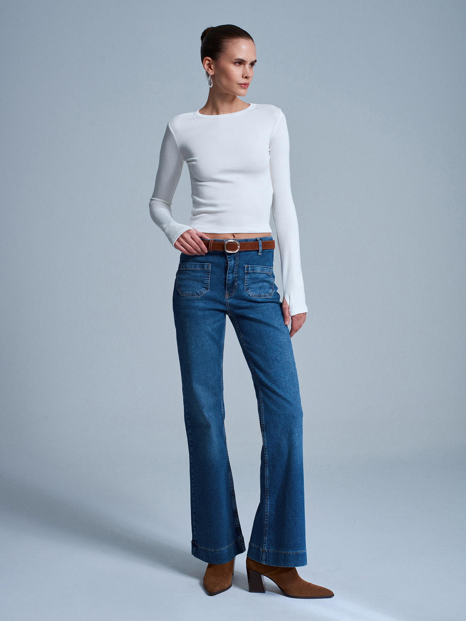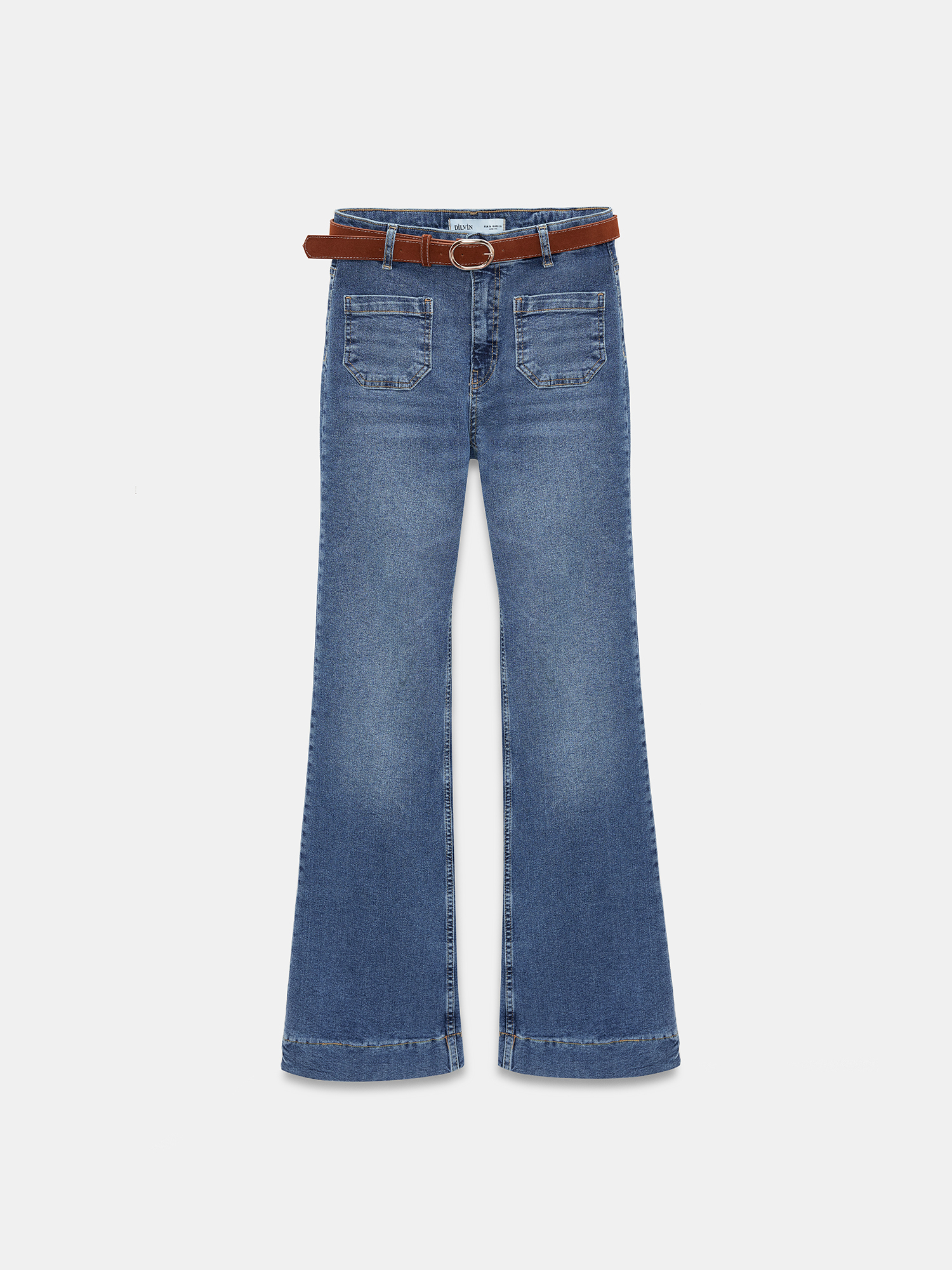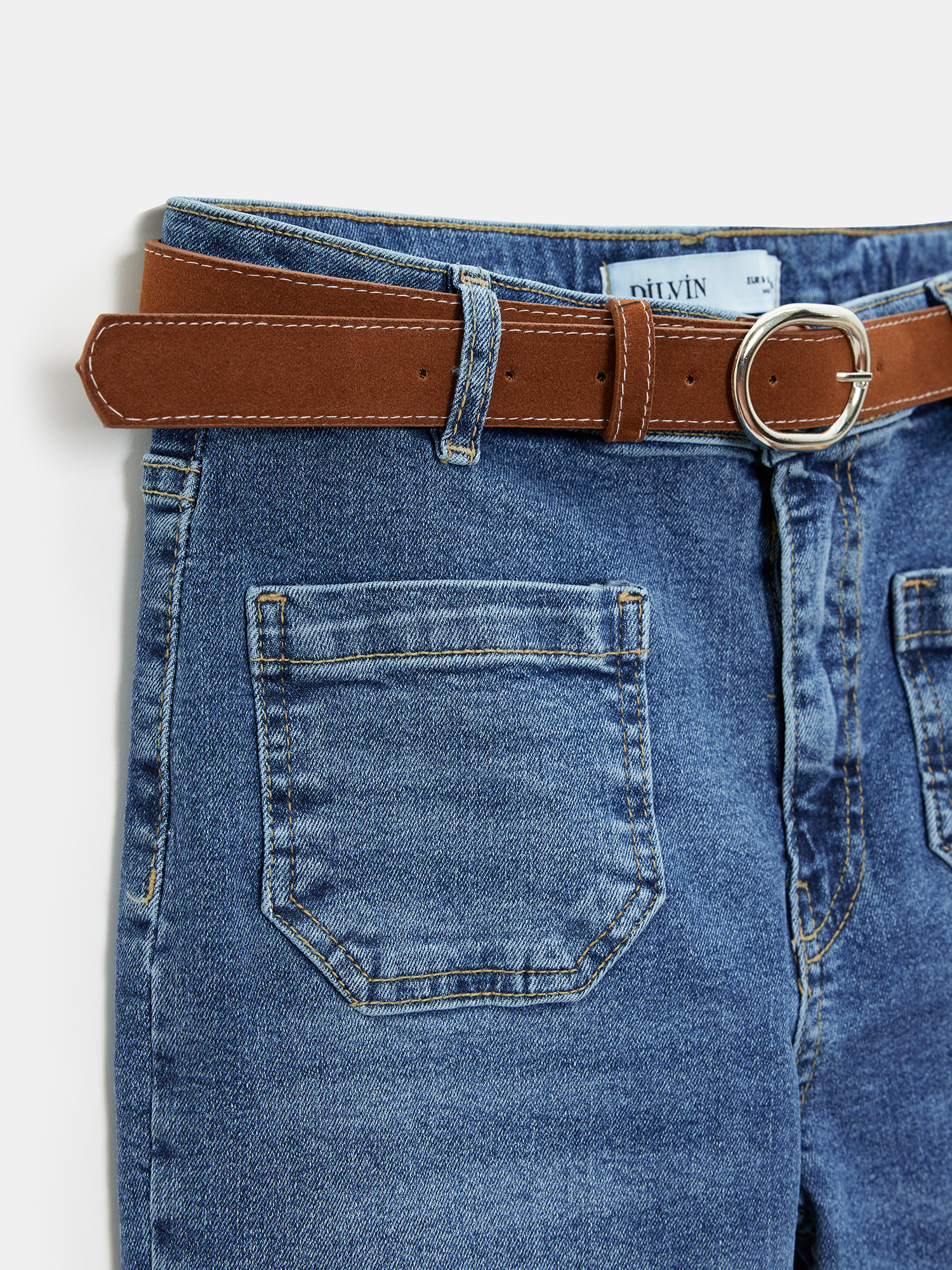 72097 Kemerli Cep Detaylı Jean-Mavi