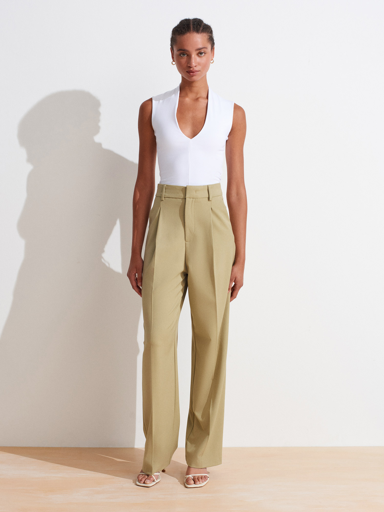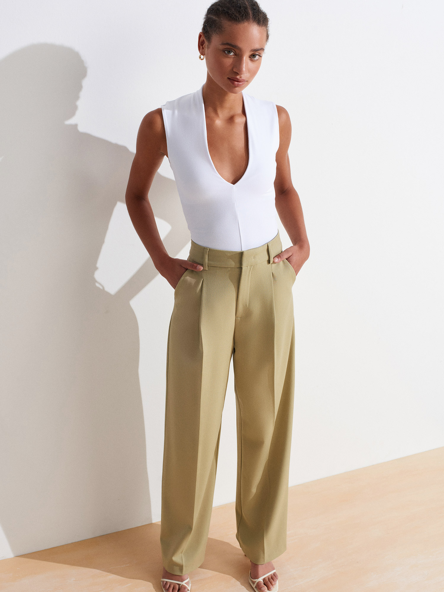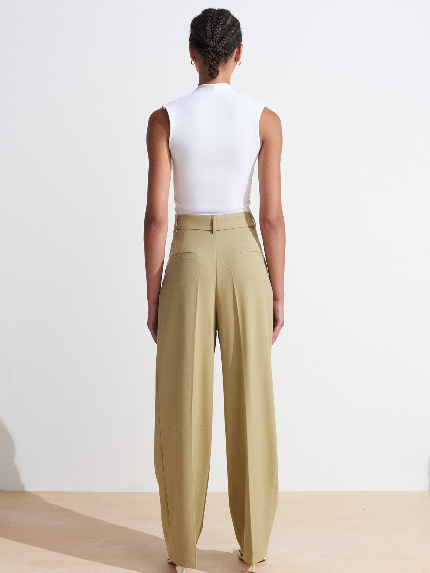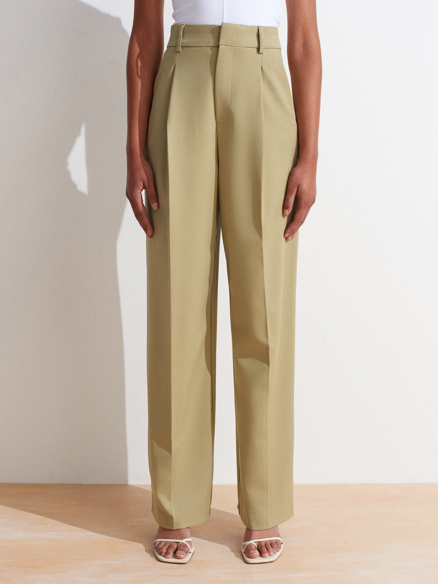 72128 Yüksek Bel Dökümlü Pantolon-Çağla