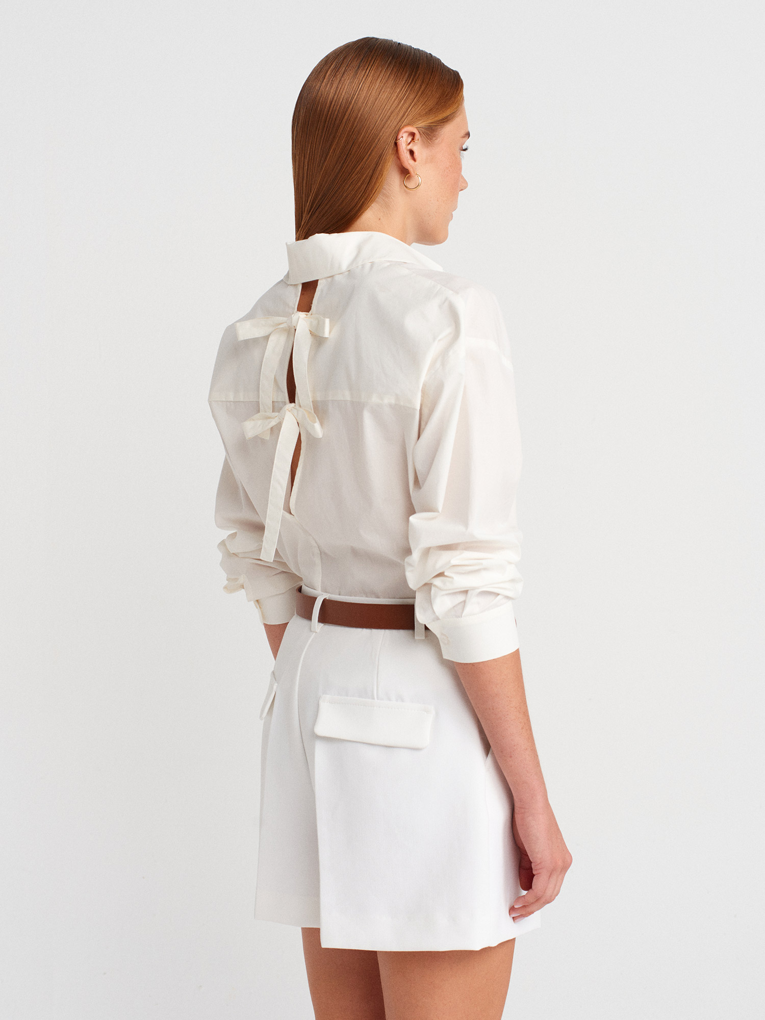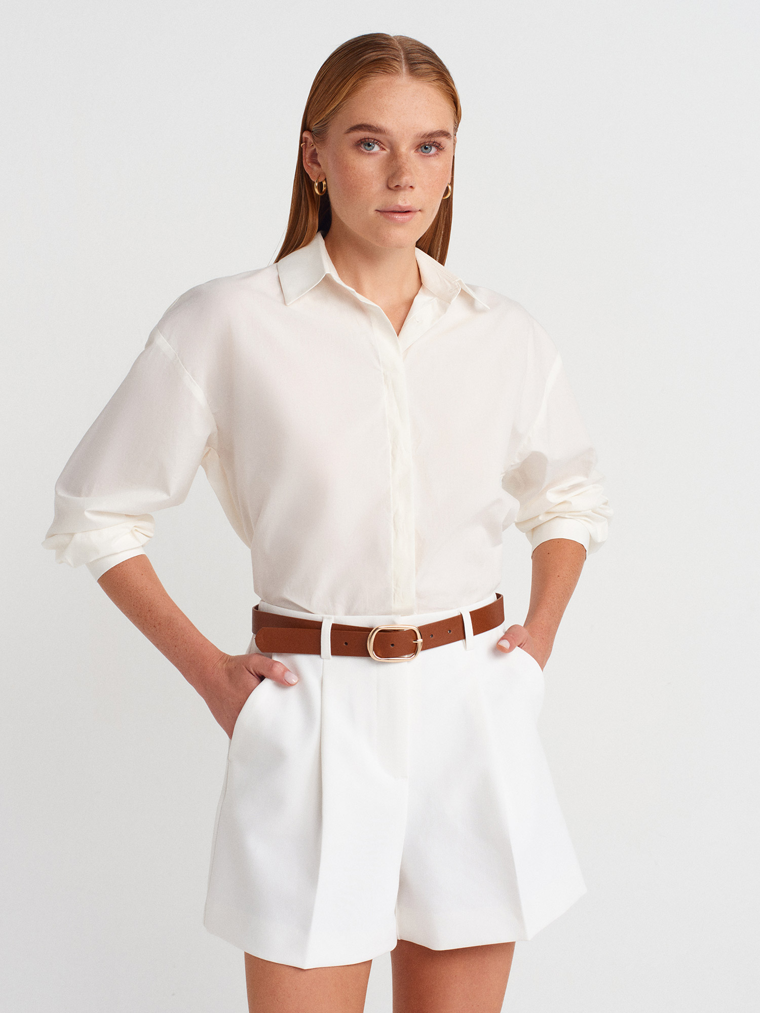 72140 Kemerli Yüksek Bel Şort-Beyaz