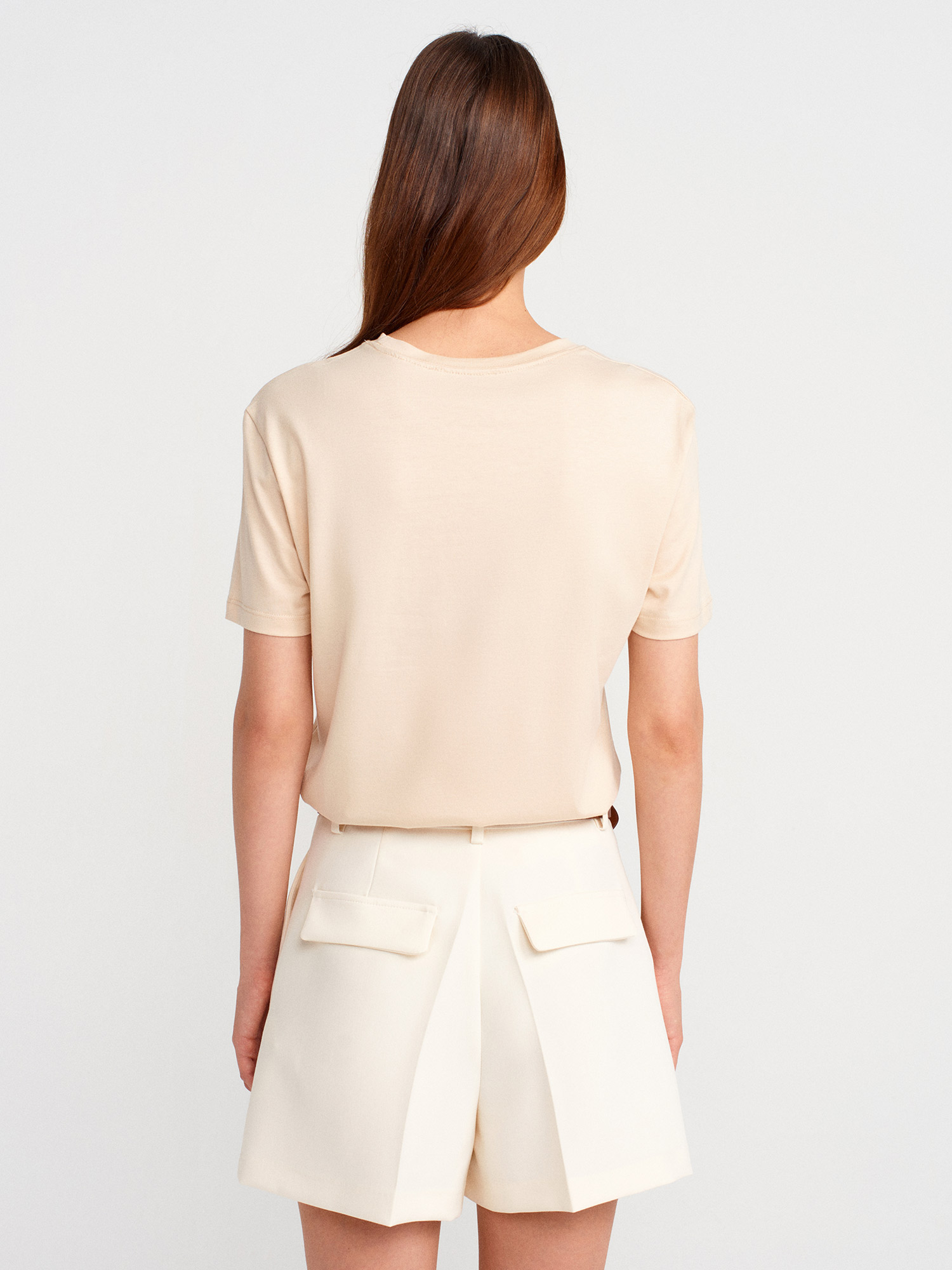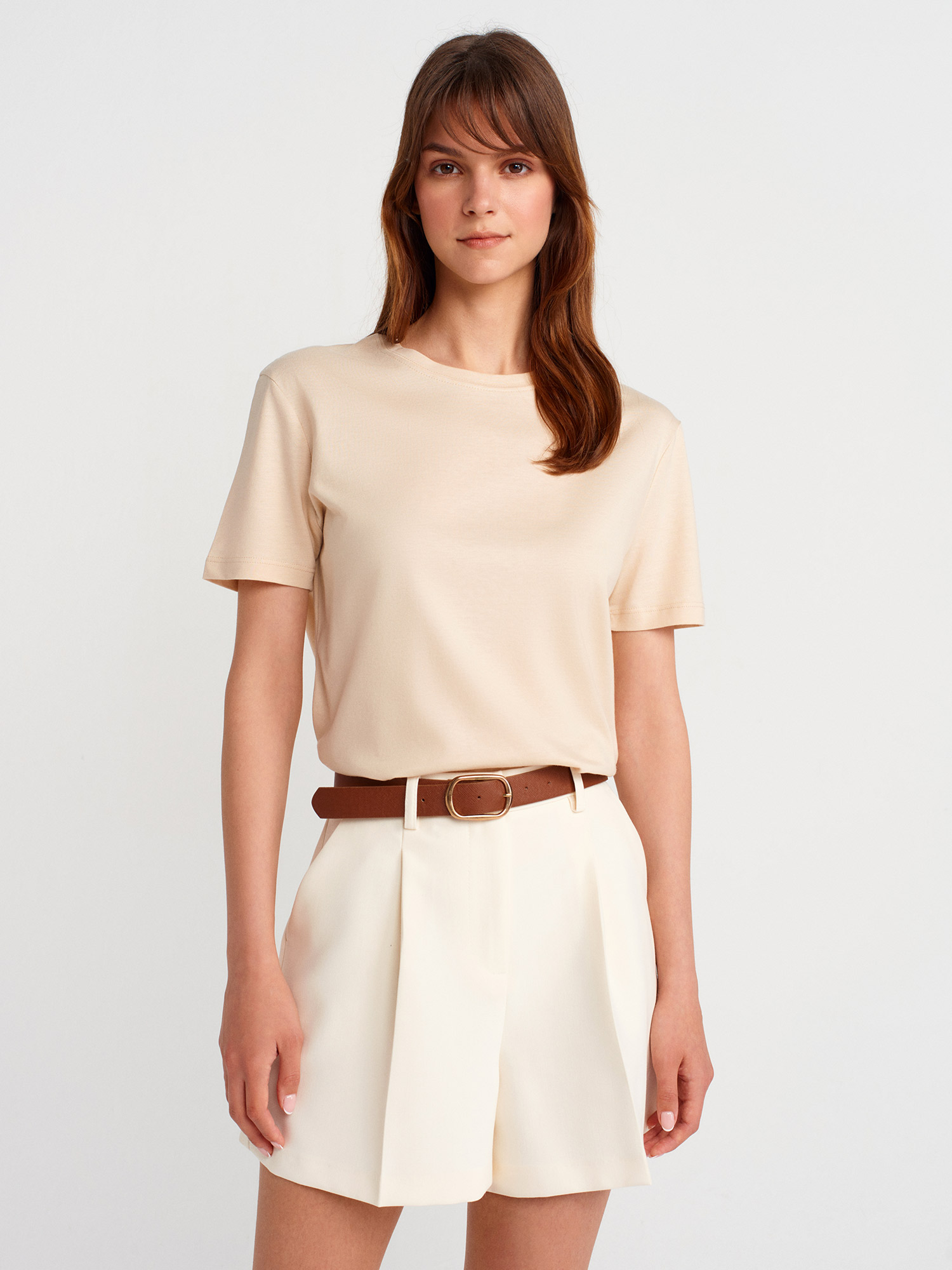 72140 Kemerli Yüksek Bel Şort-Ekru