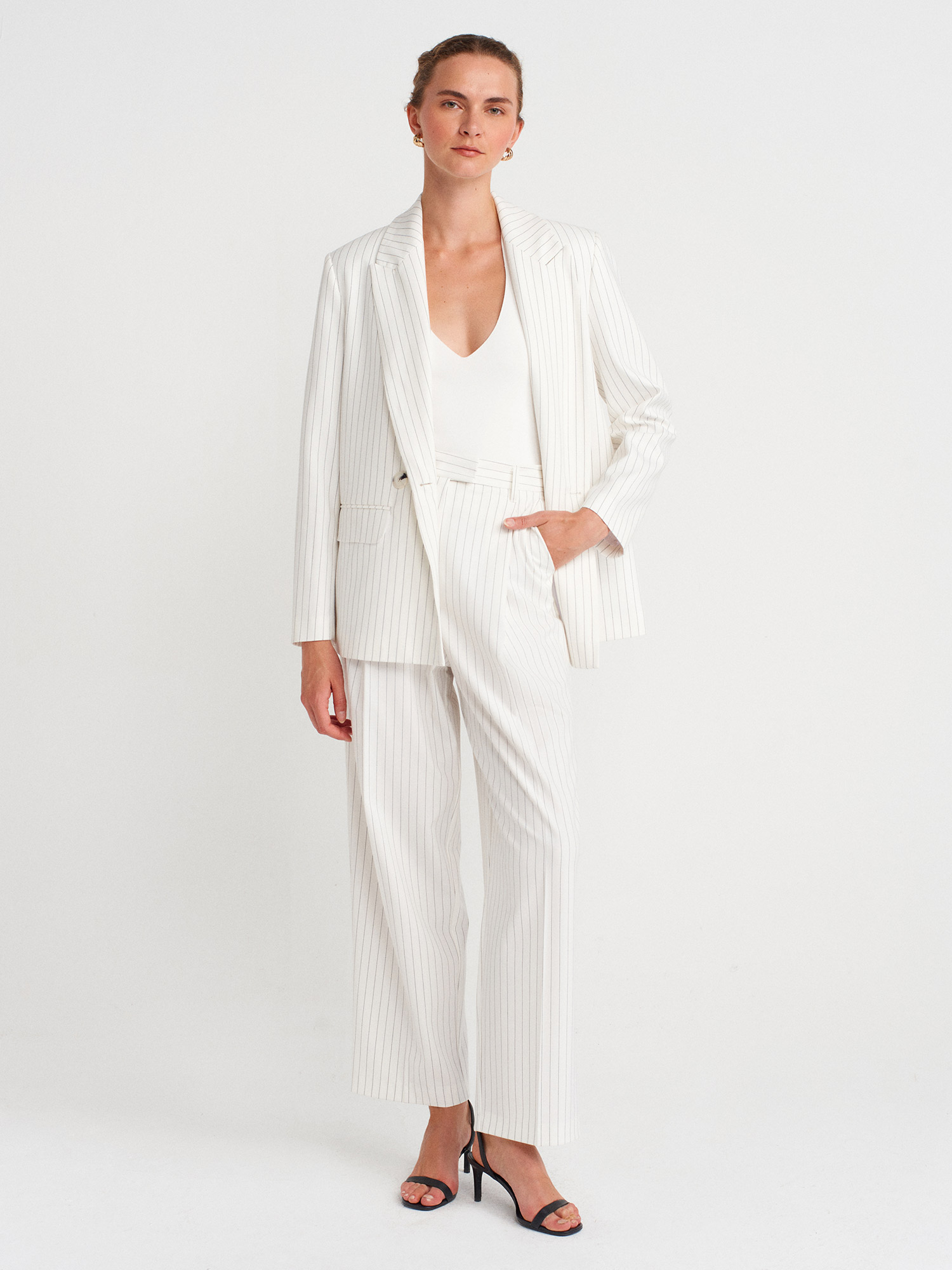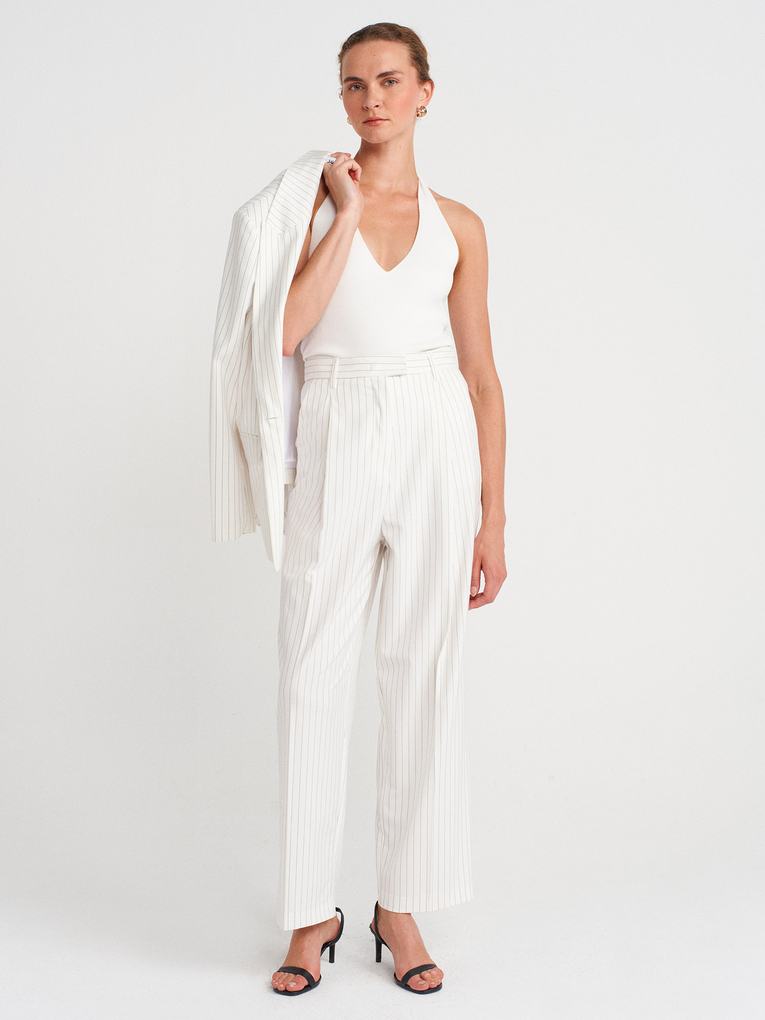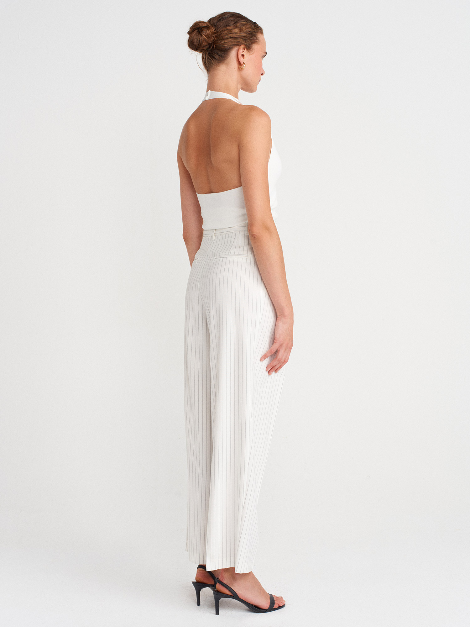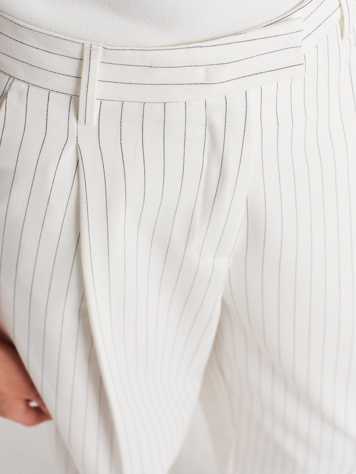 72146 İnce Çizgili Pilili Pantolon-Beyaz