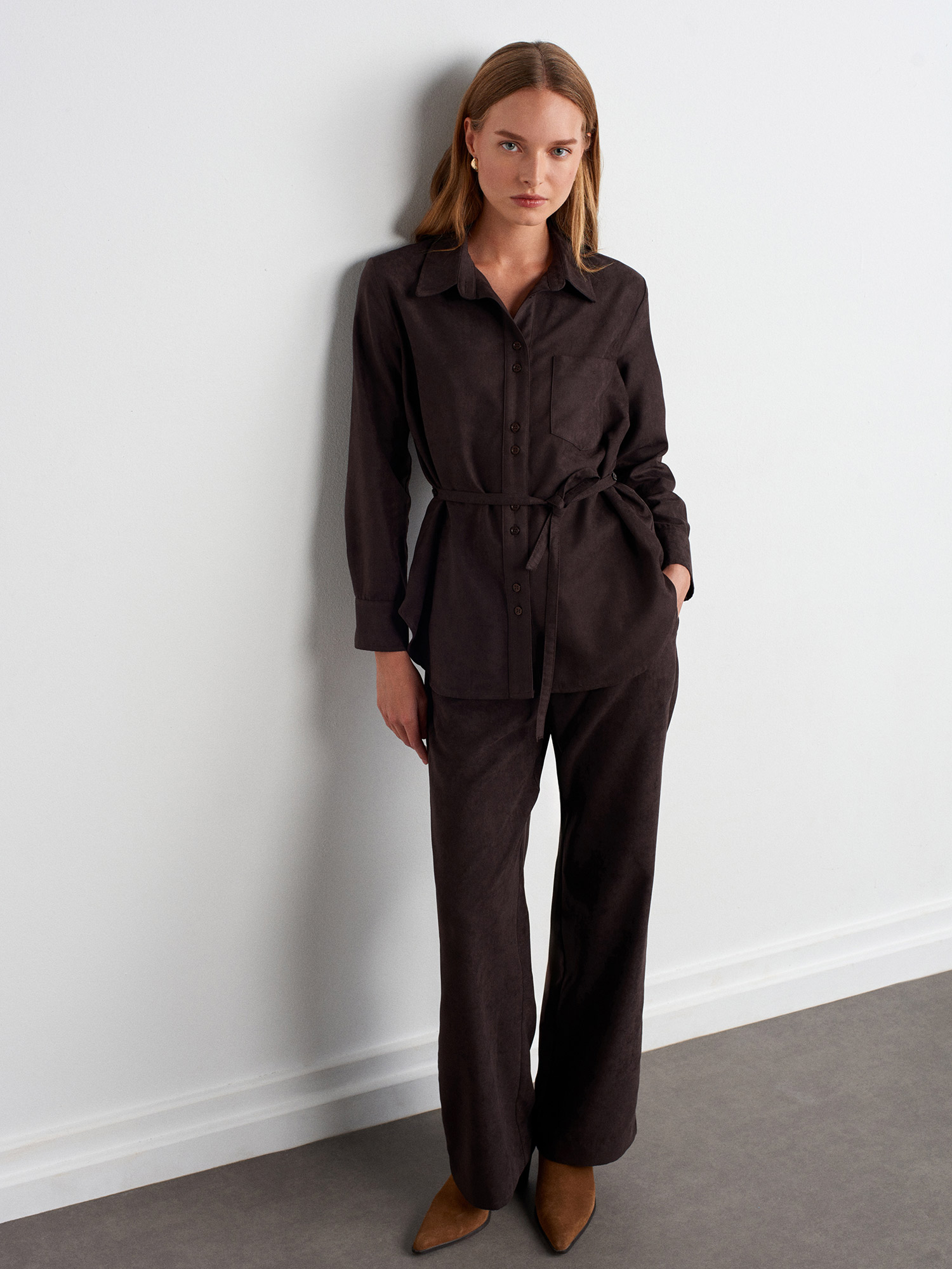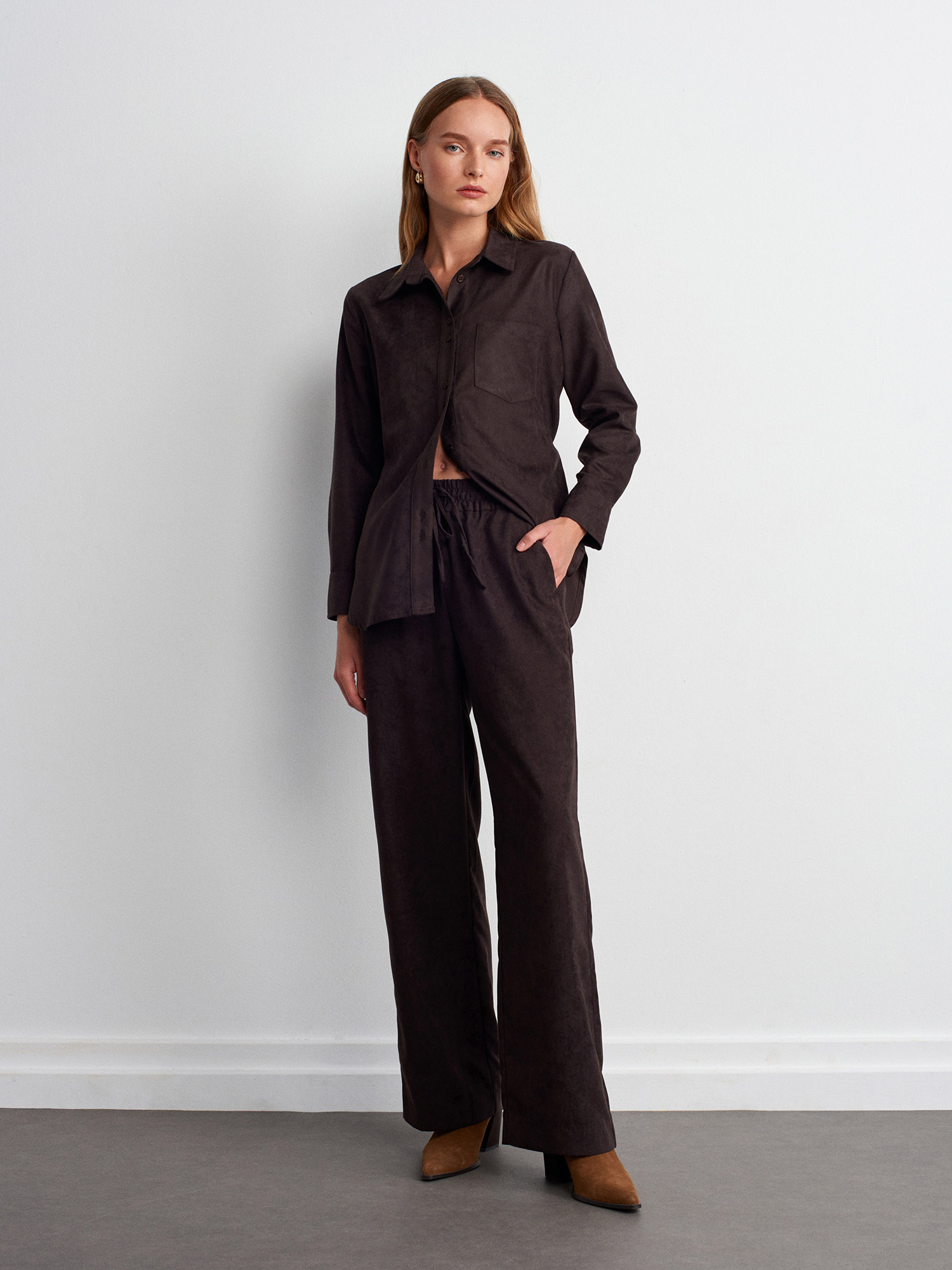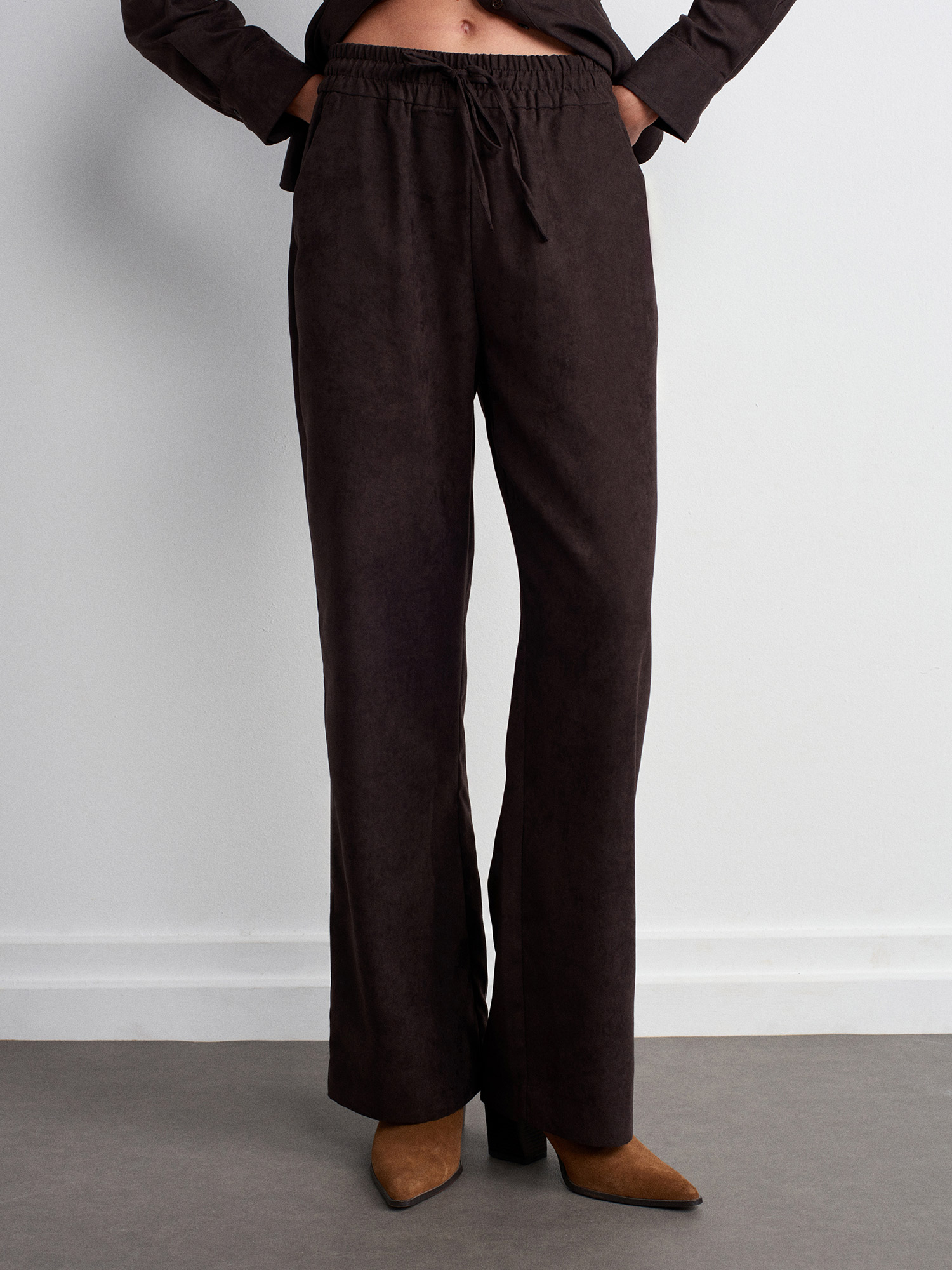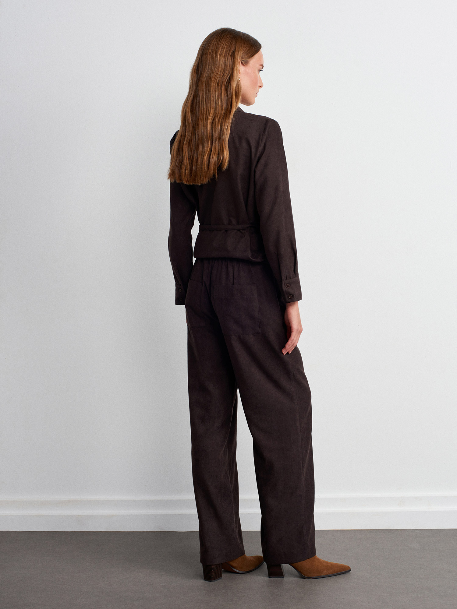 72164 Beli Lastikli Süet Pantolon-Koyu Kahve