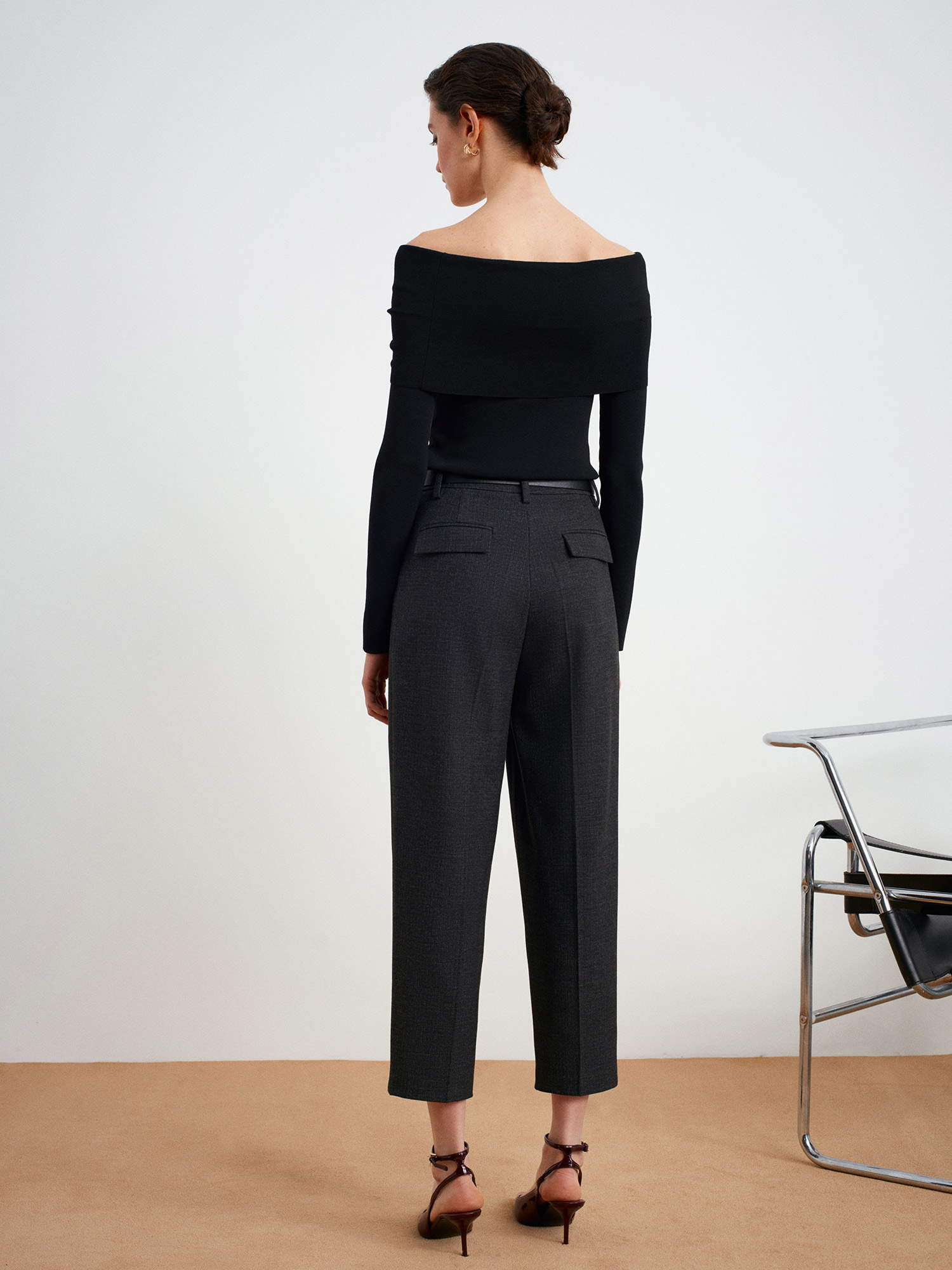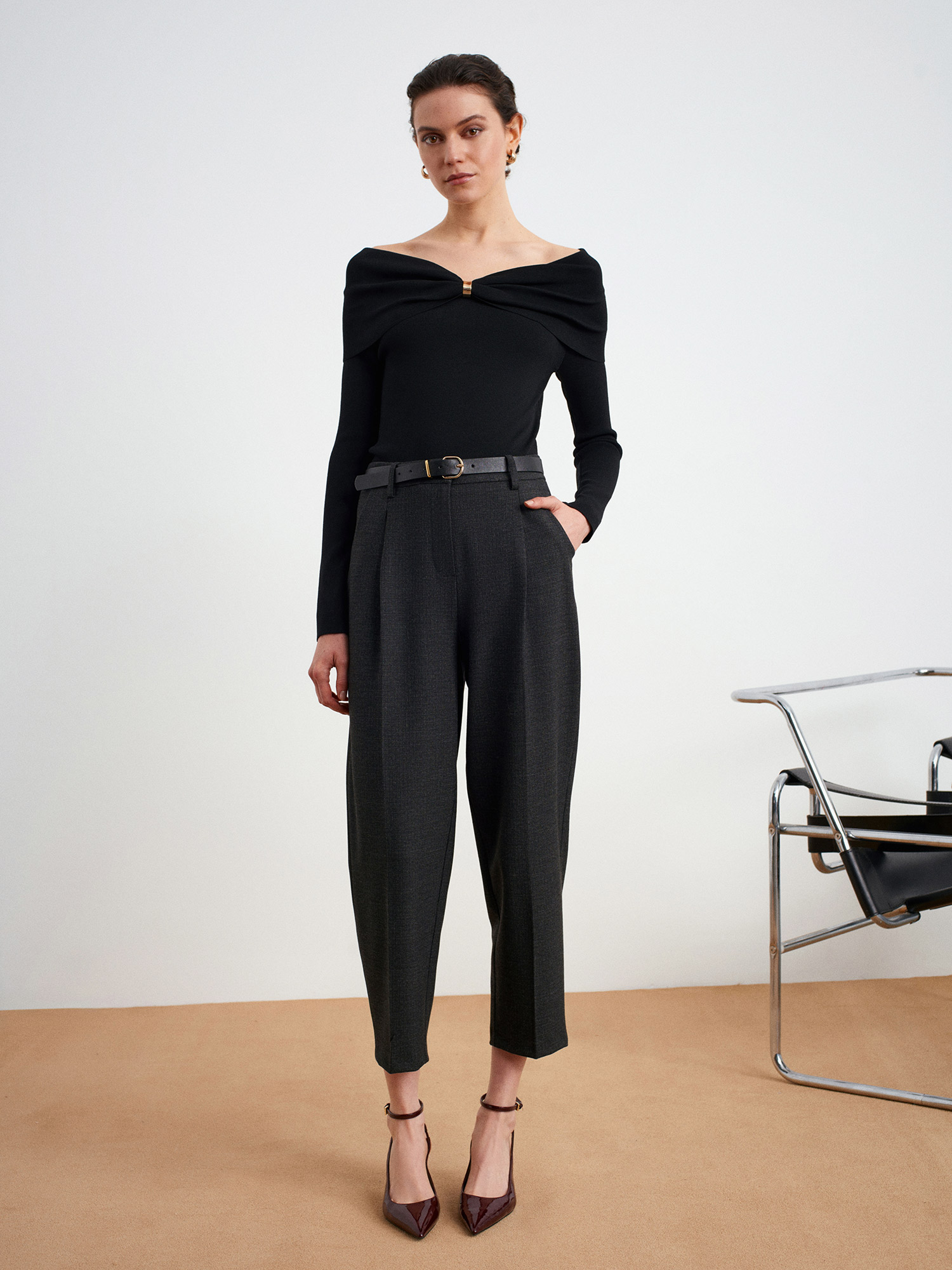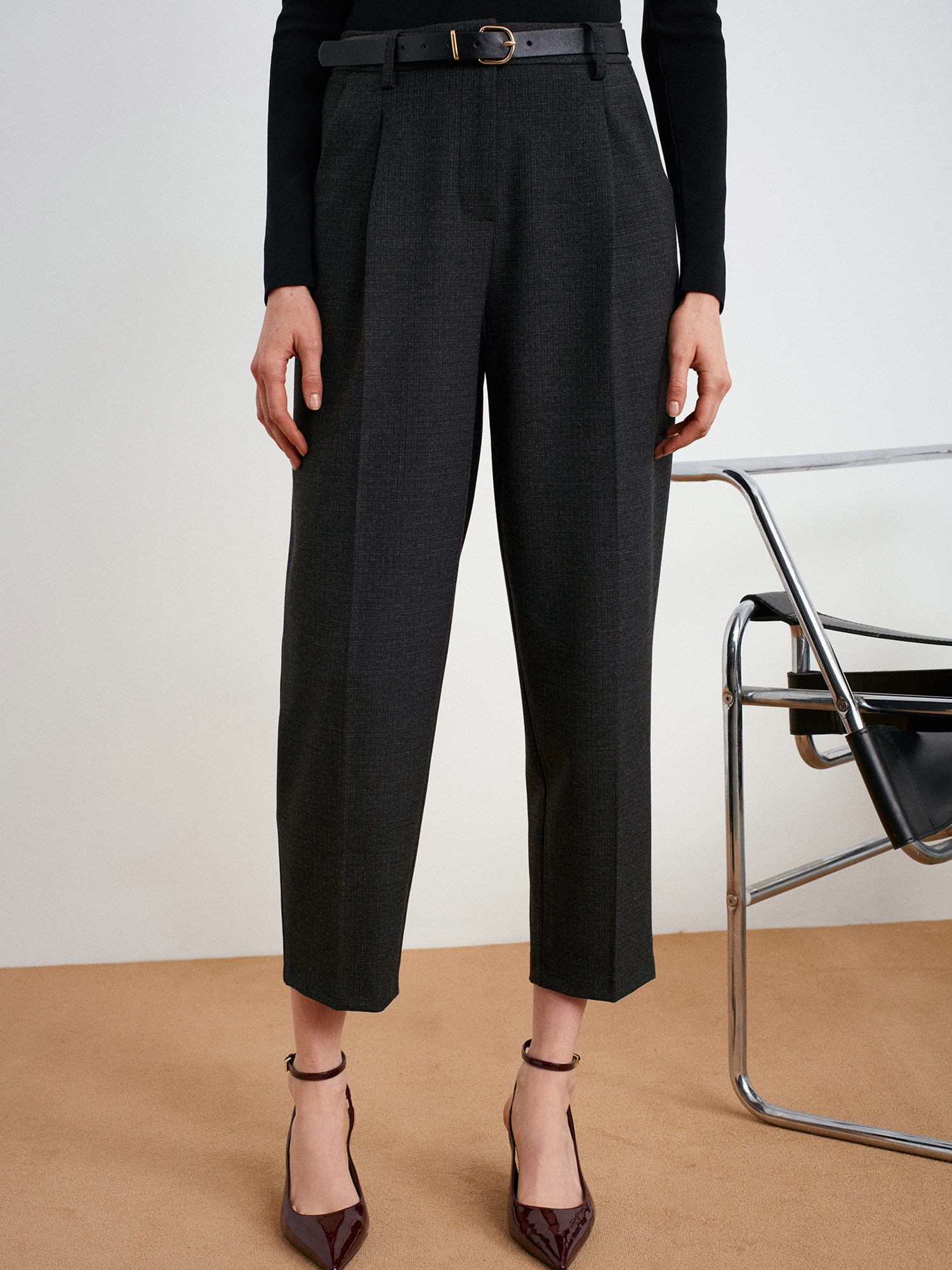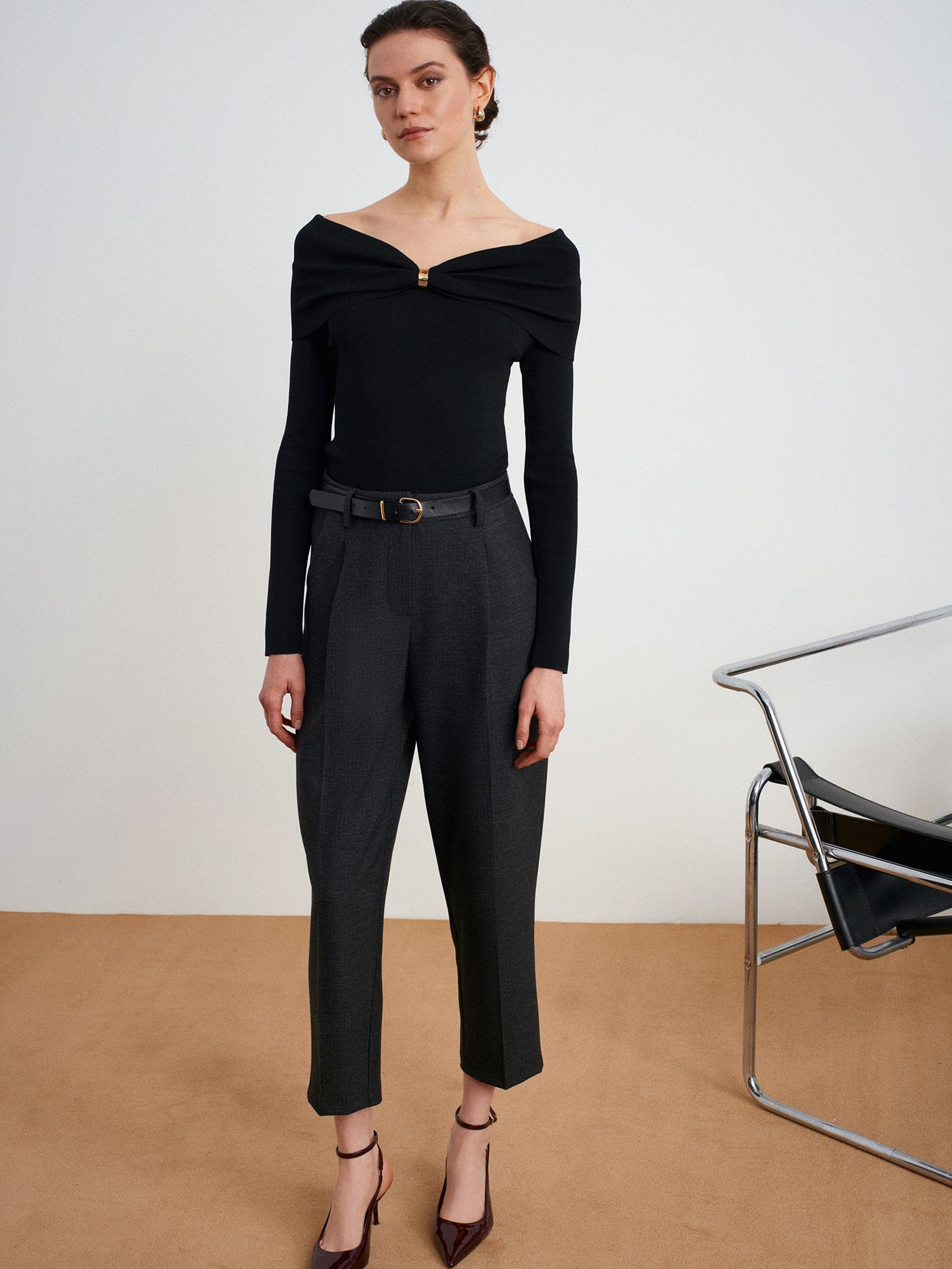 72166 Kemerli Kısa Paça Kumaş Pantolon-Antrasit