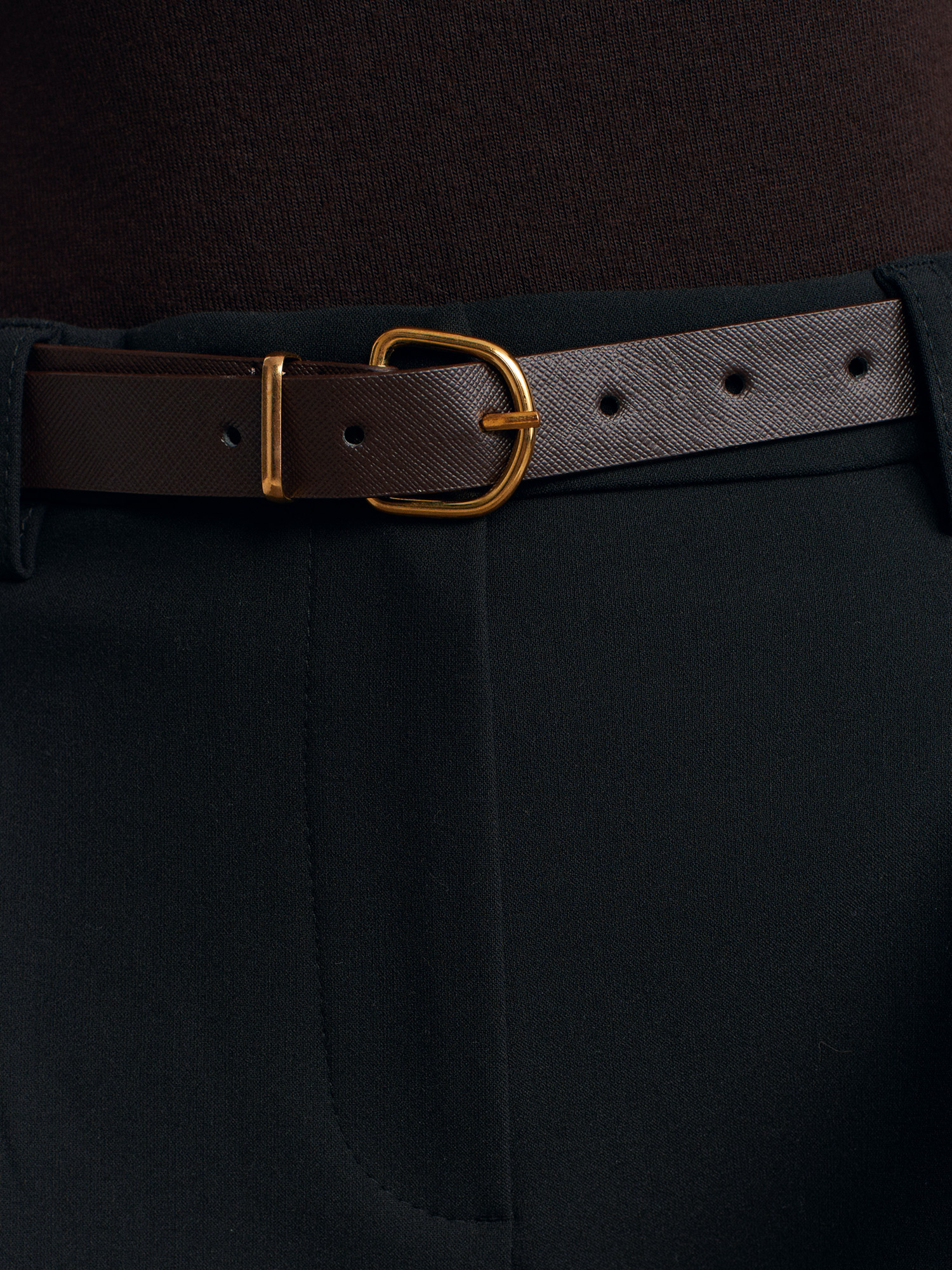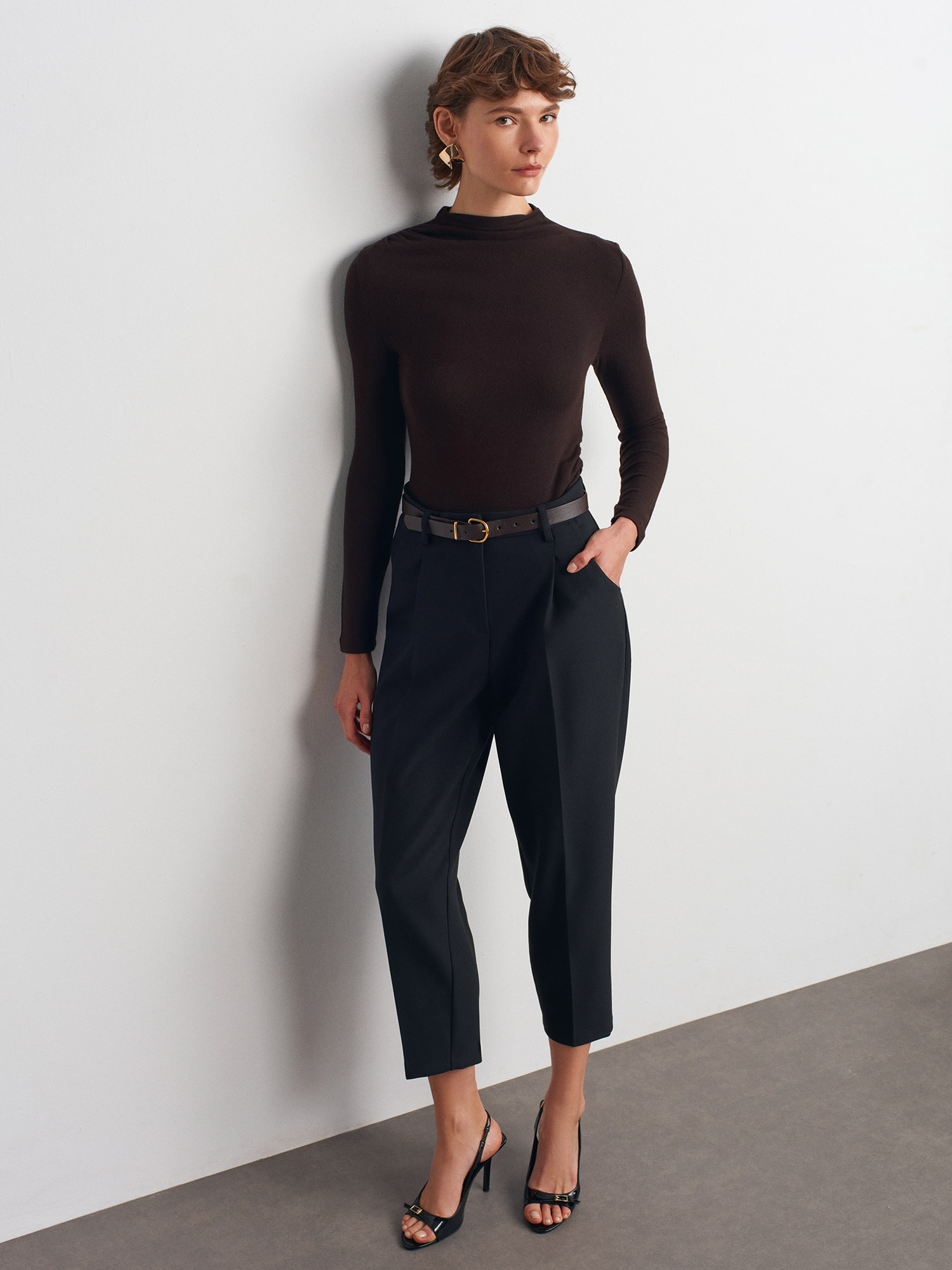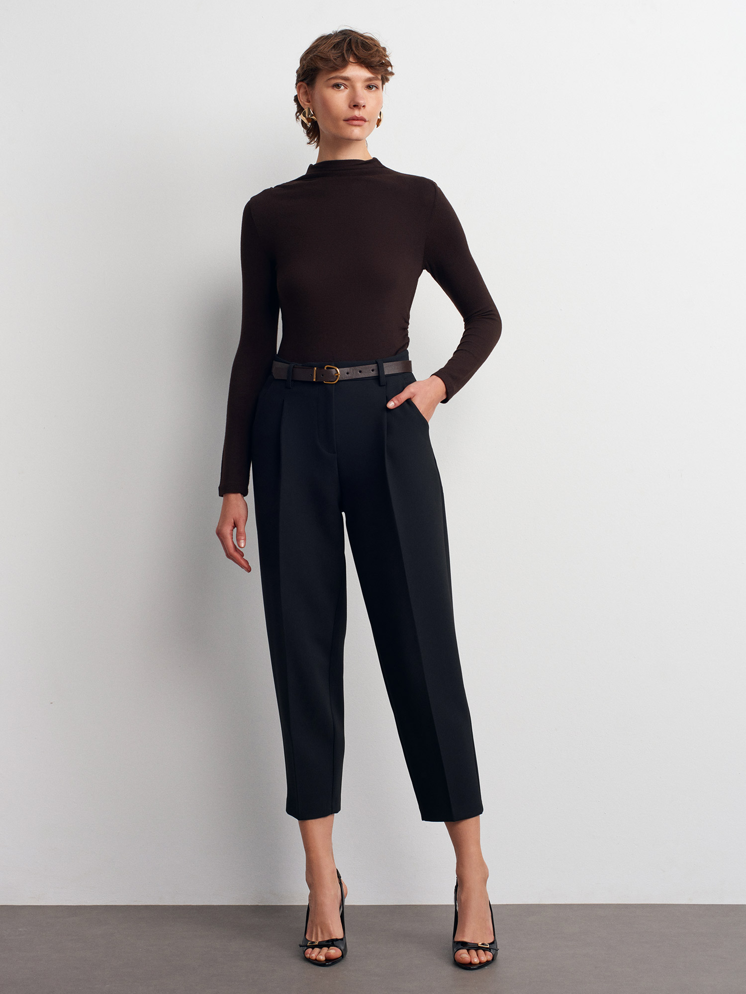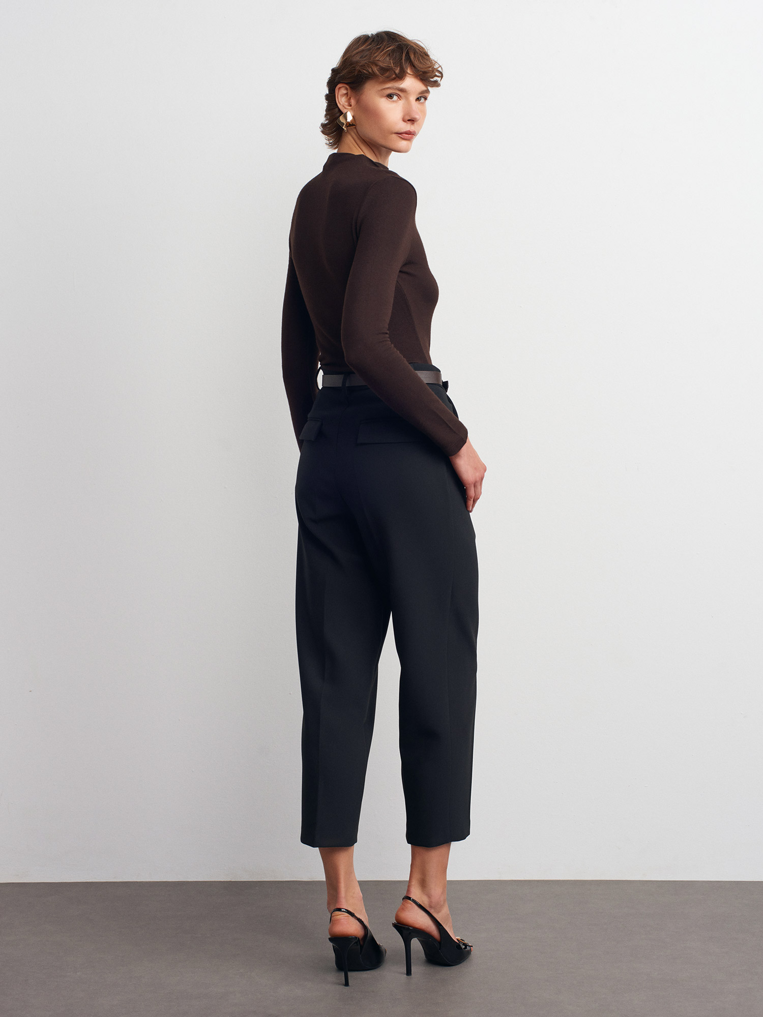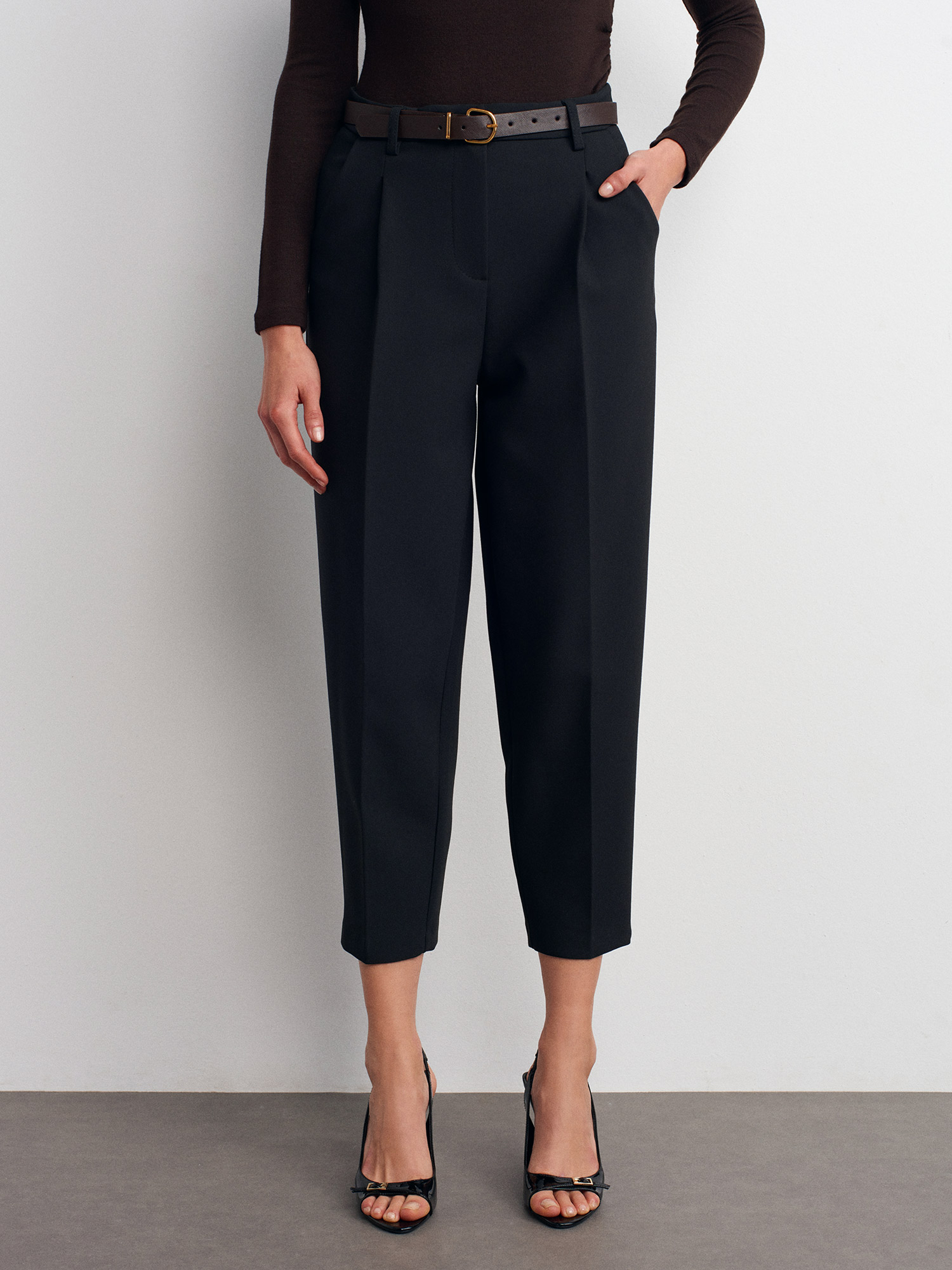 72166 Kemerli Kısa Paça Kumaş Pantolon-Siyah