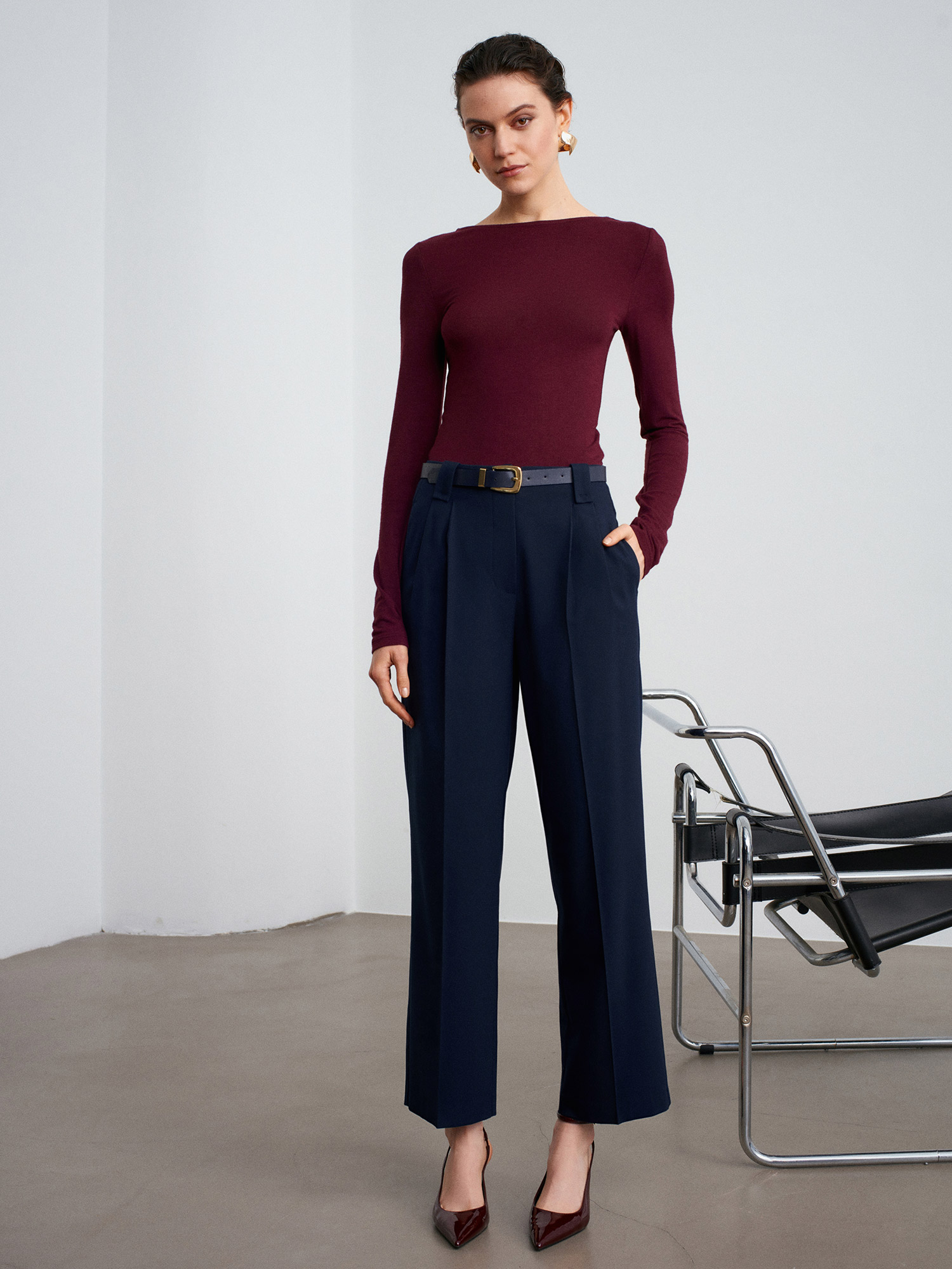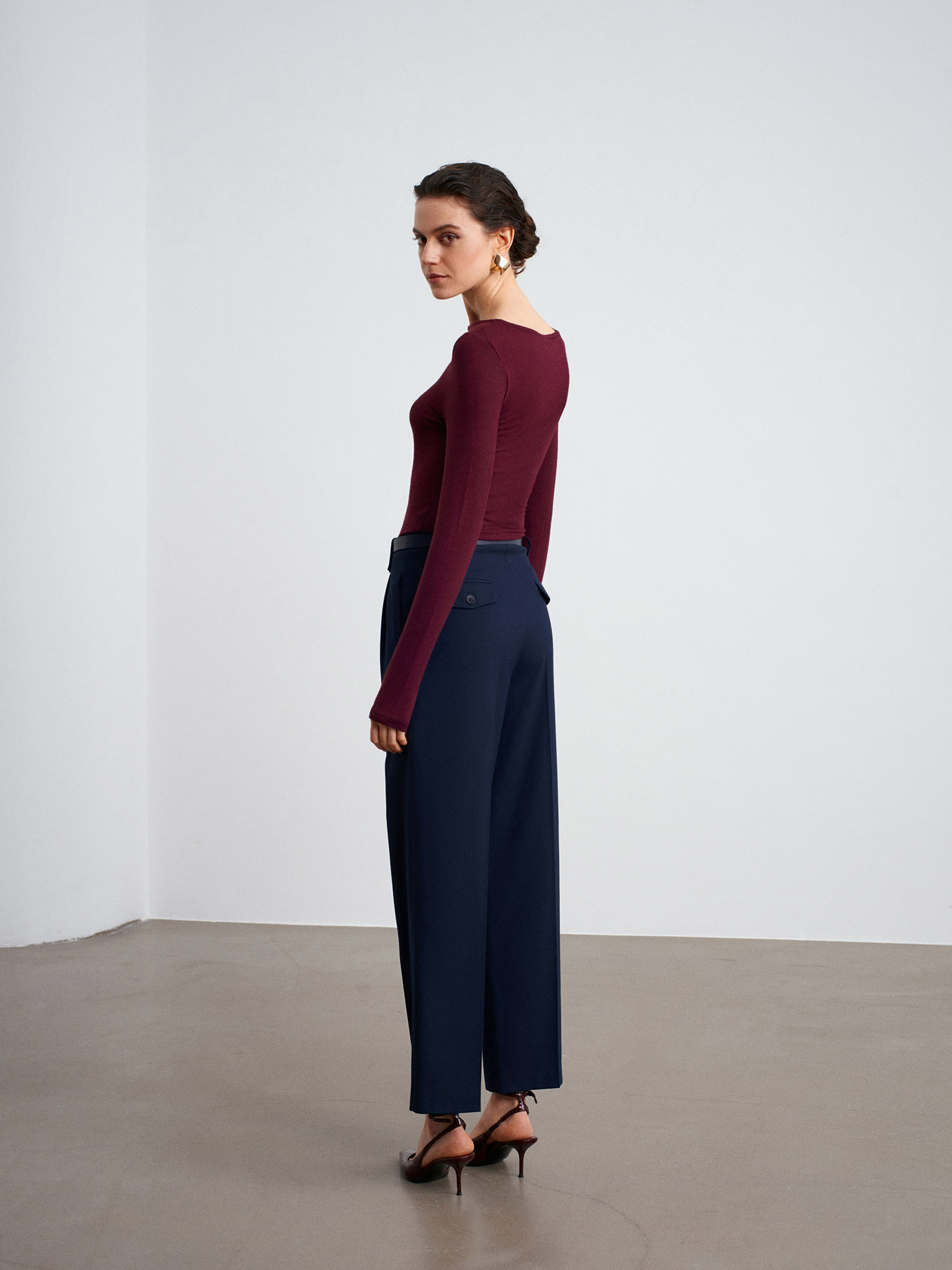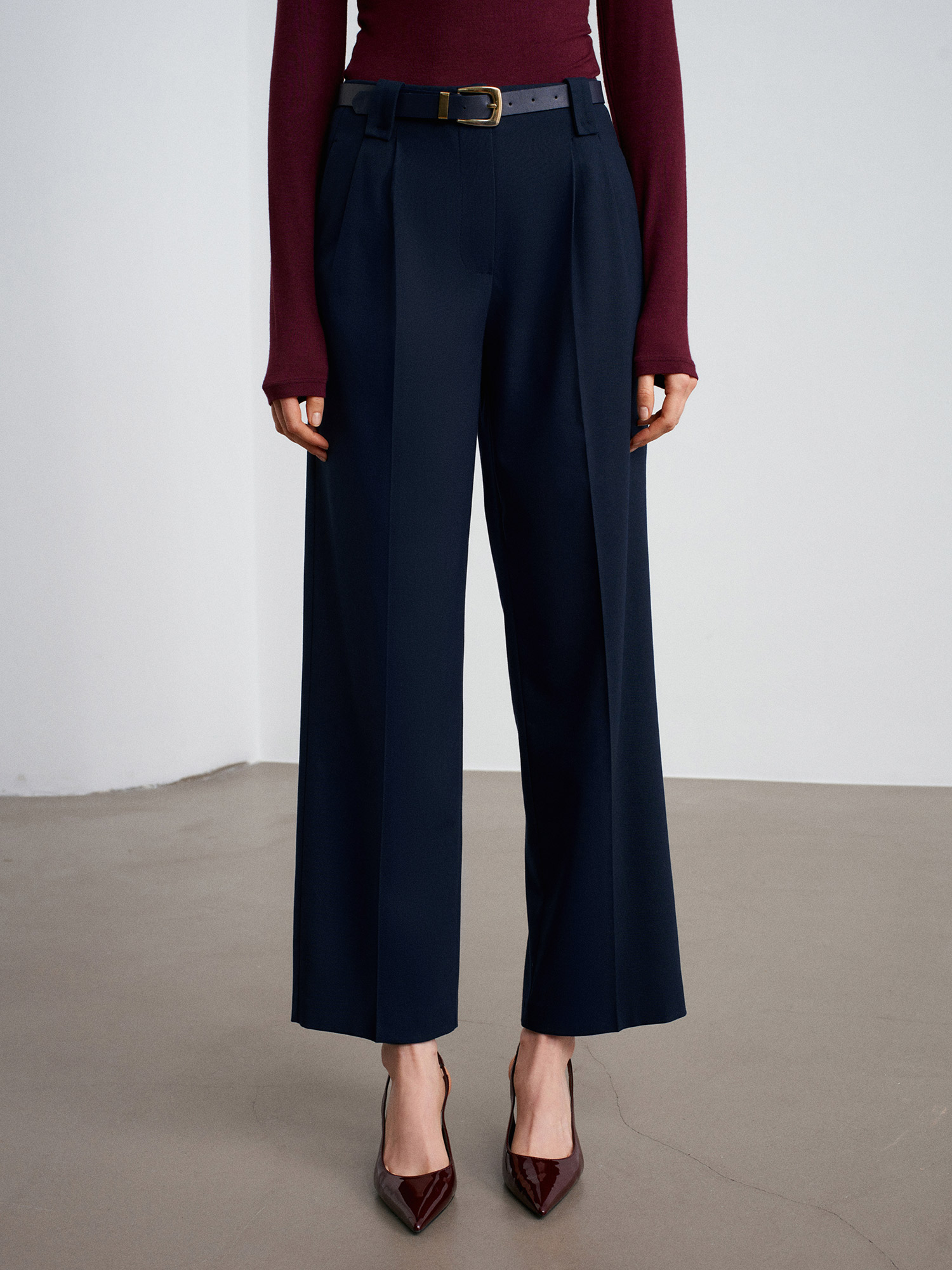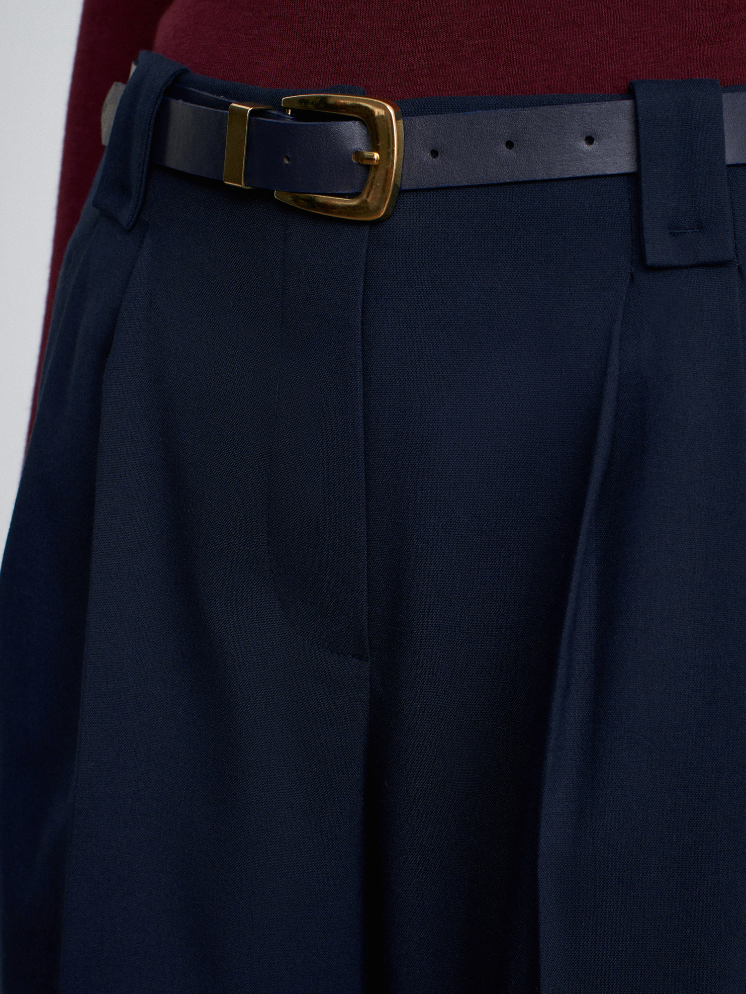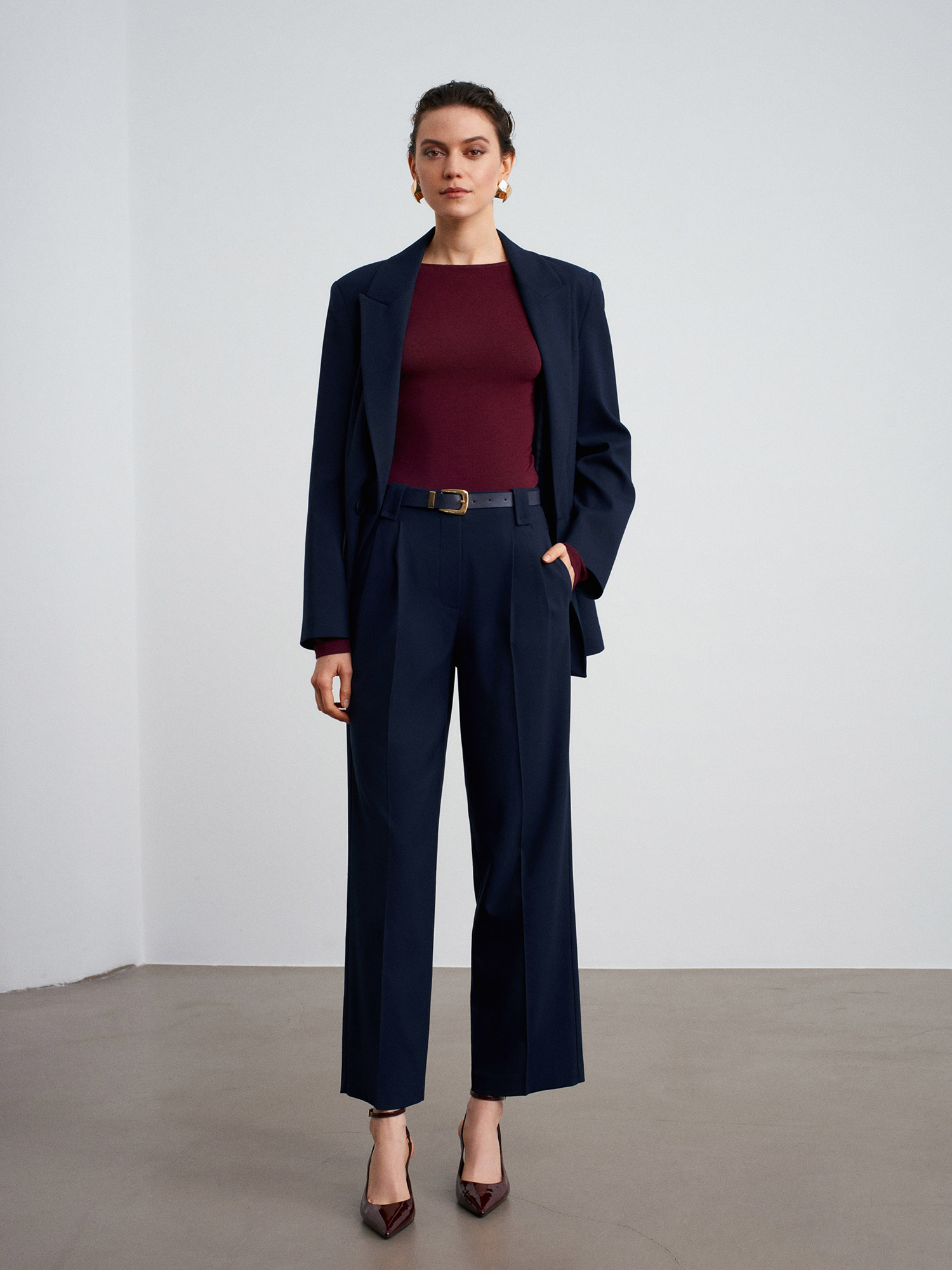 72178 Çift Pileli Kumaş Pantolon-Lacivert