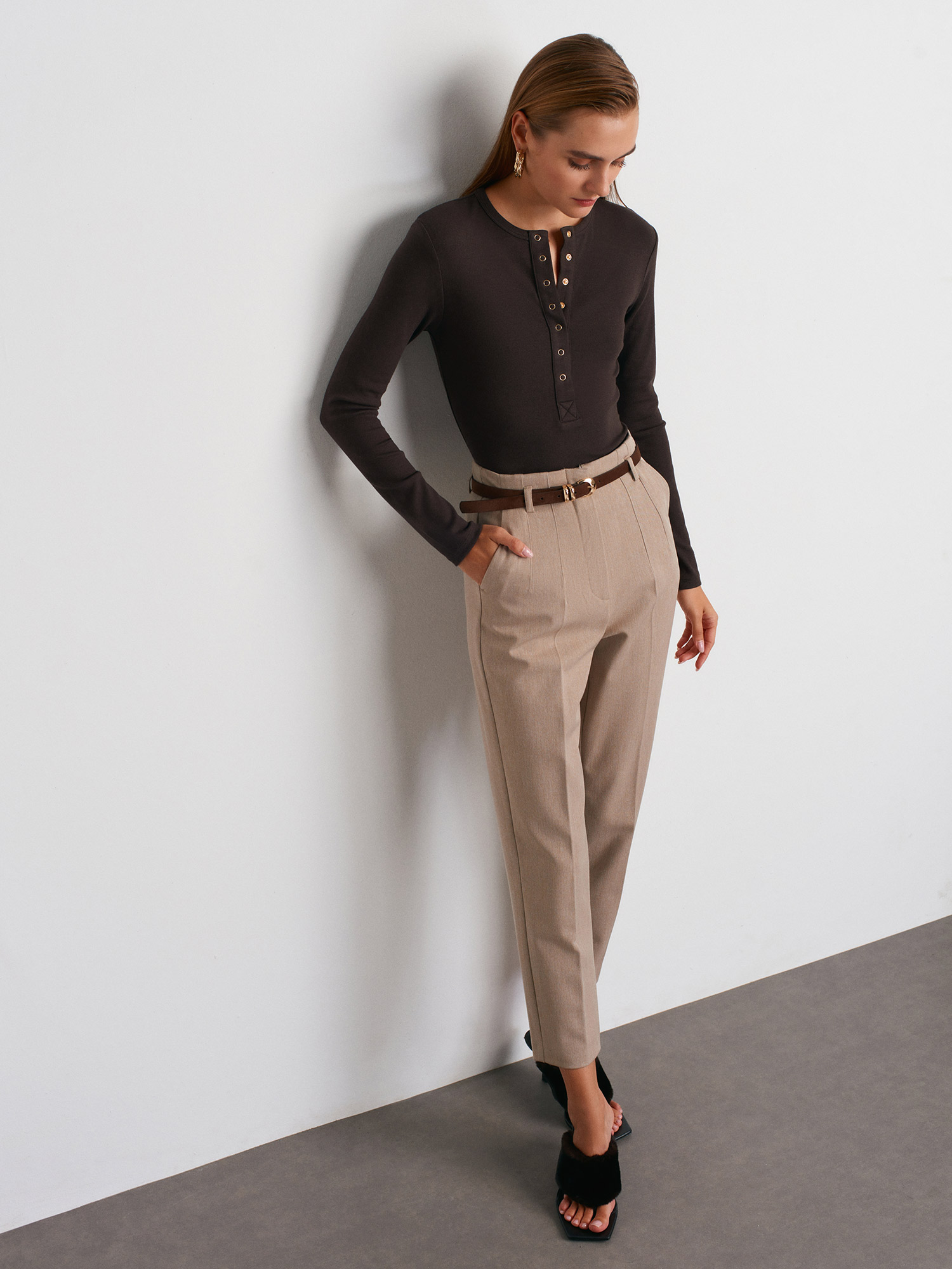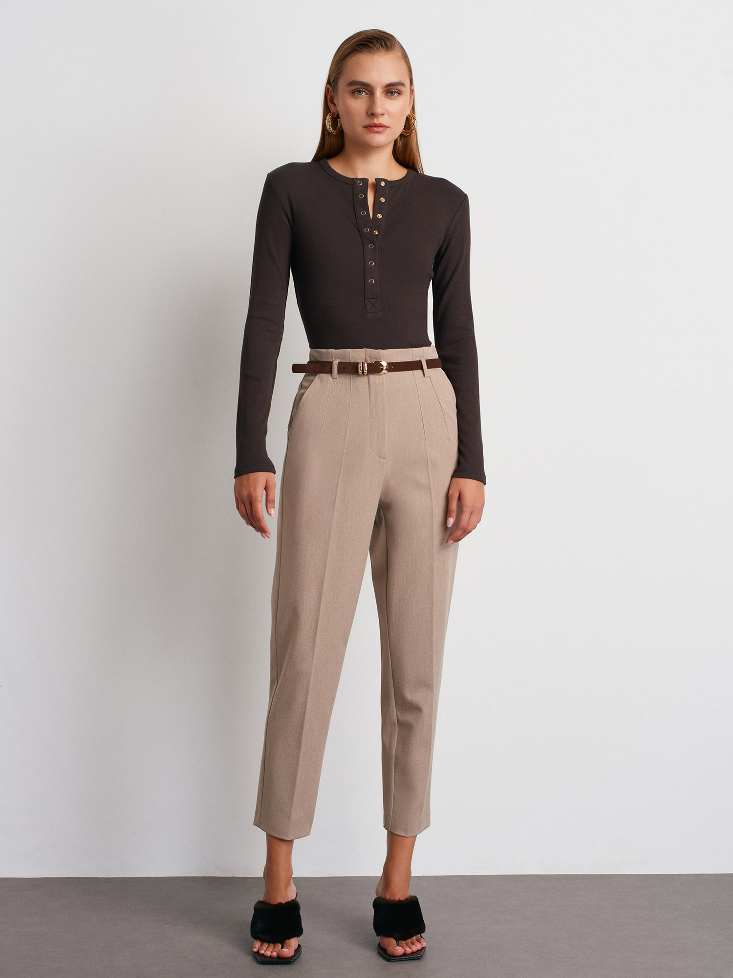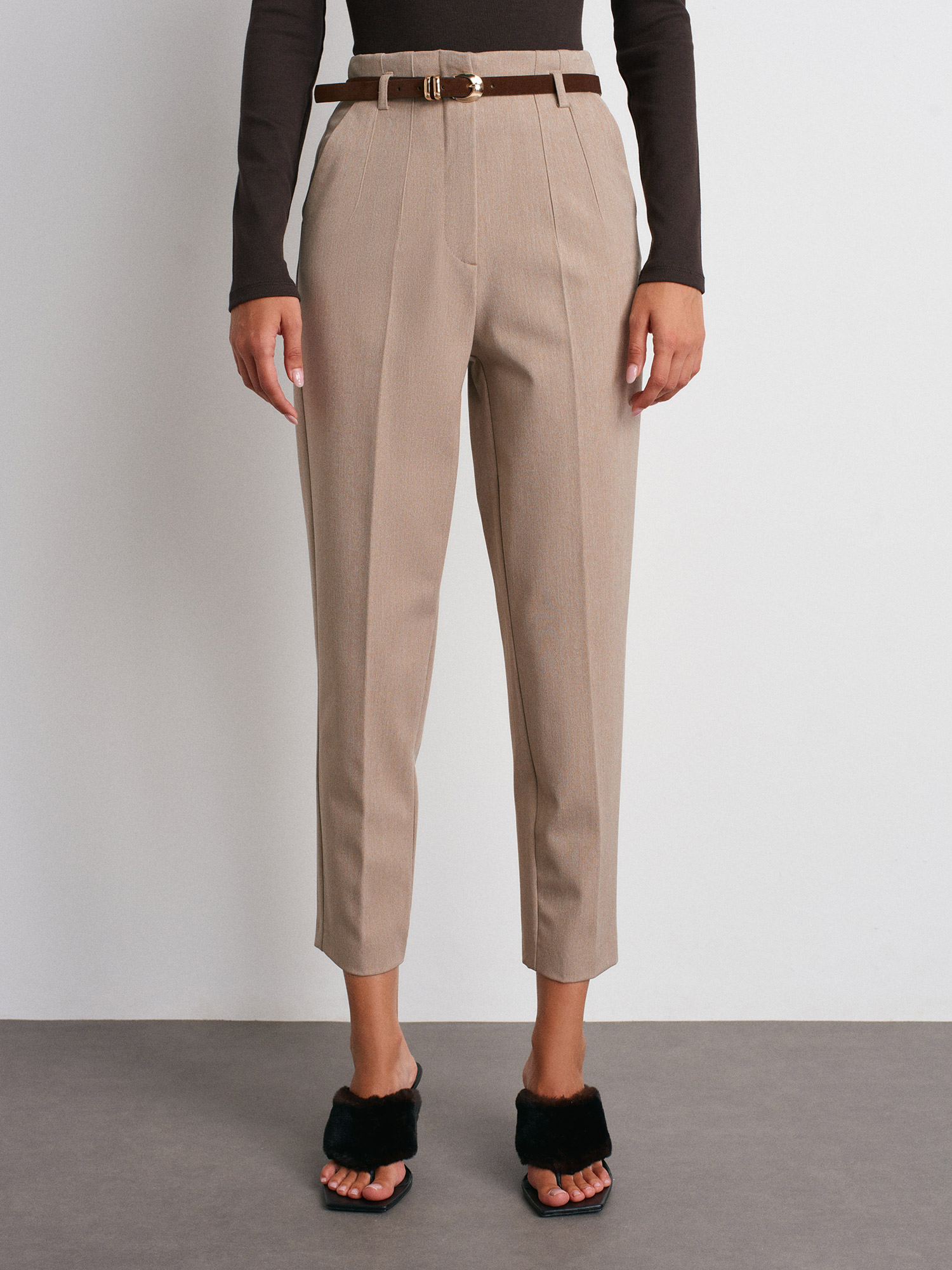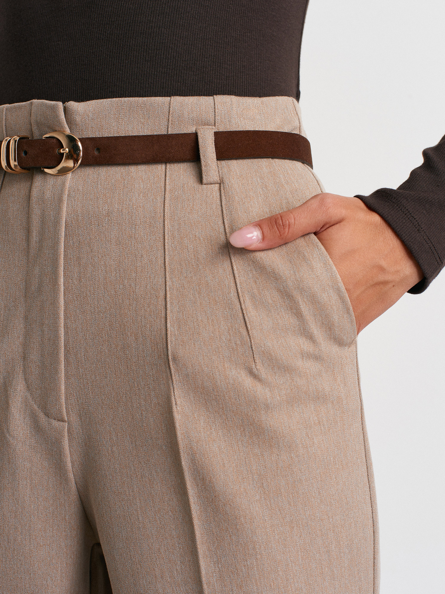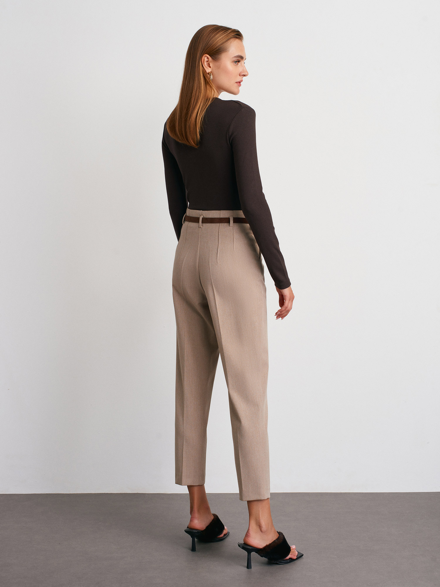 72181 Kemerli Yüksek Bel Pantolon-Vizon
