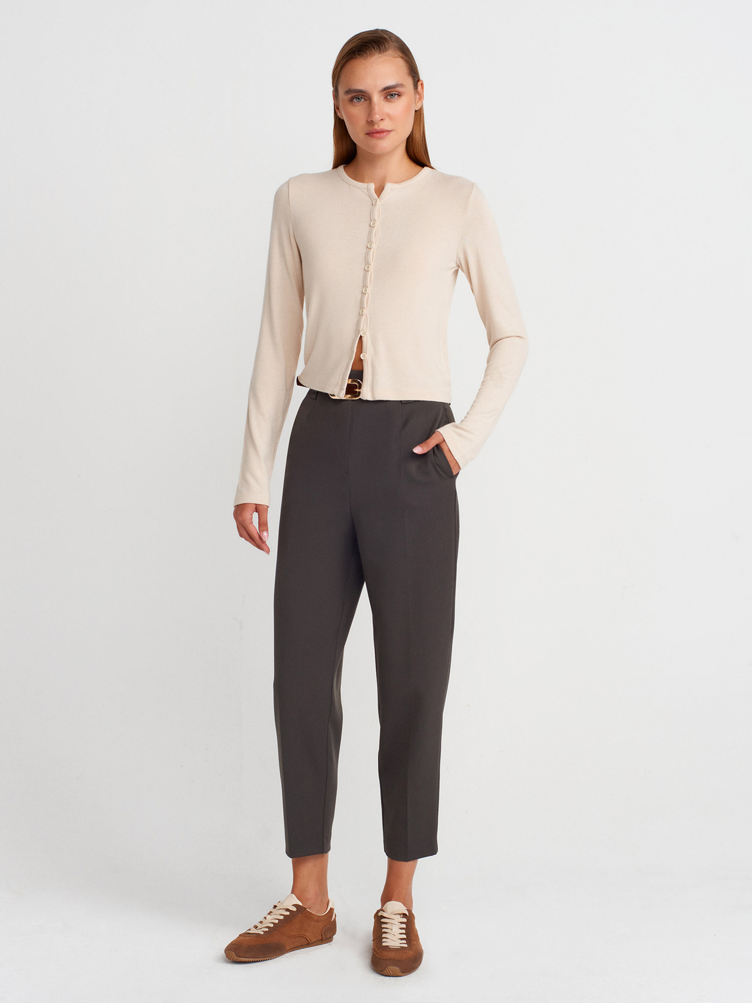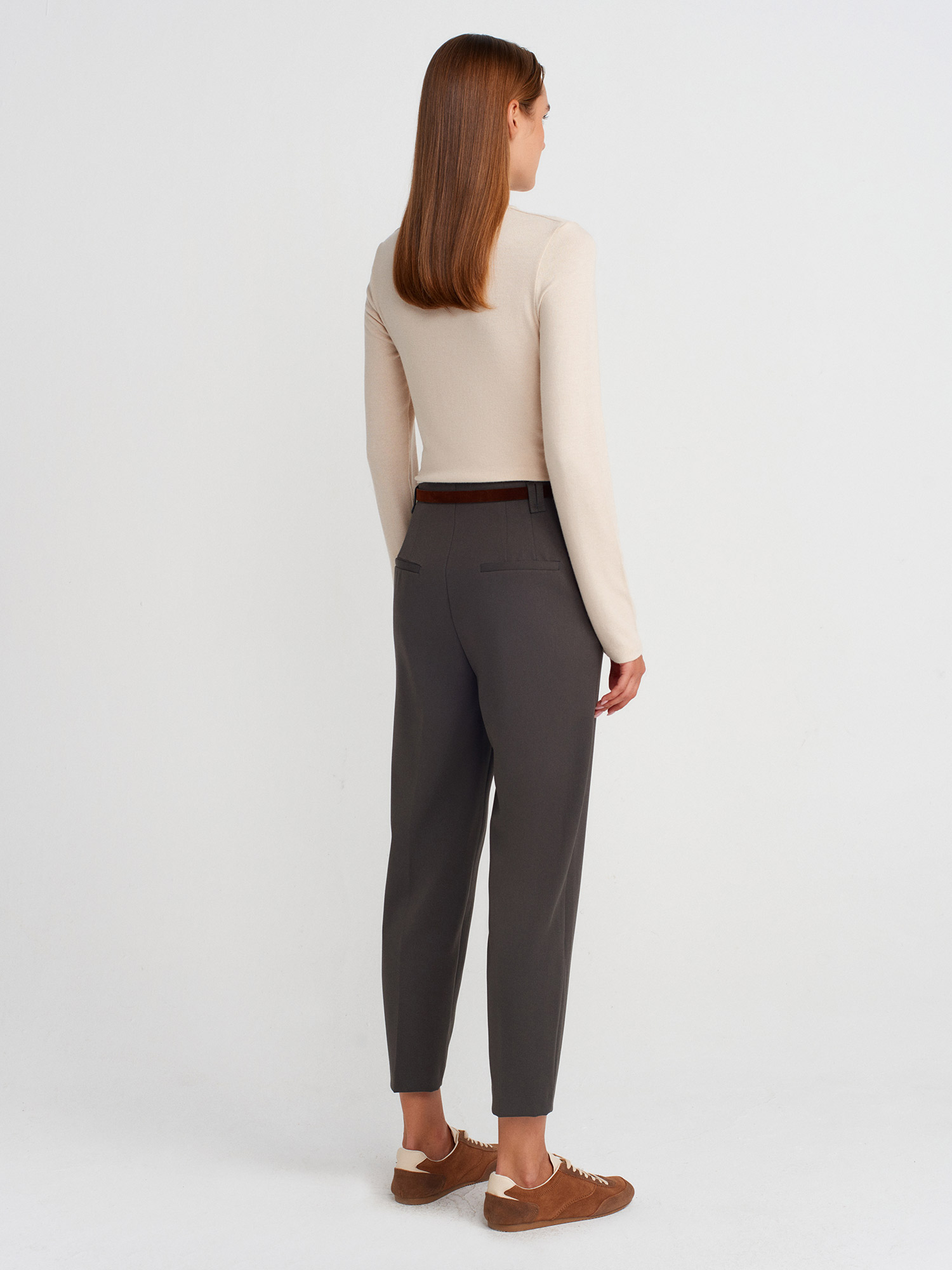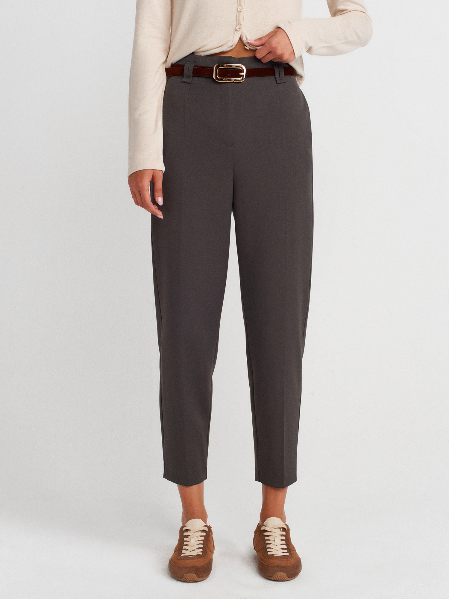 72183 Kemerli Yüksek Bel Pantolon-Gri