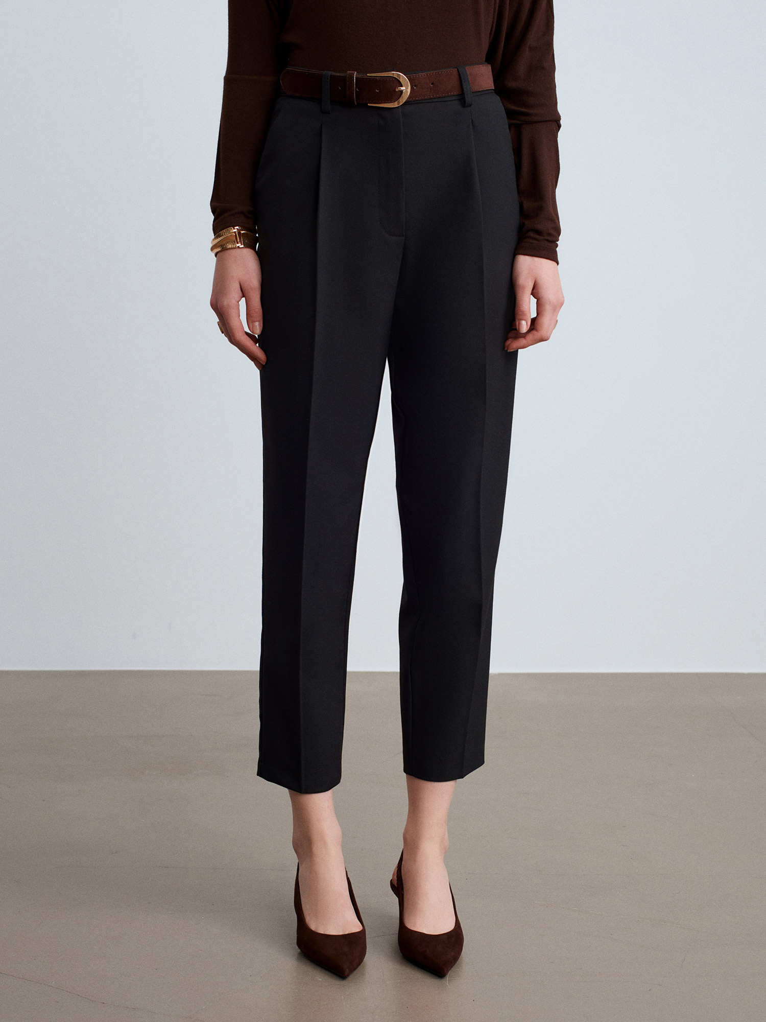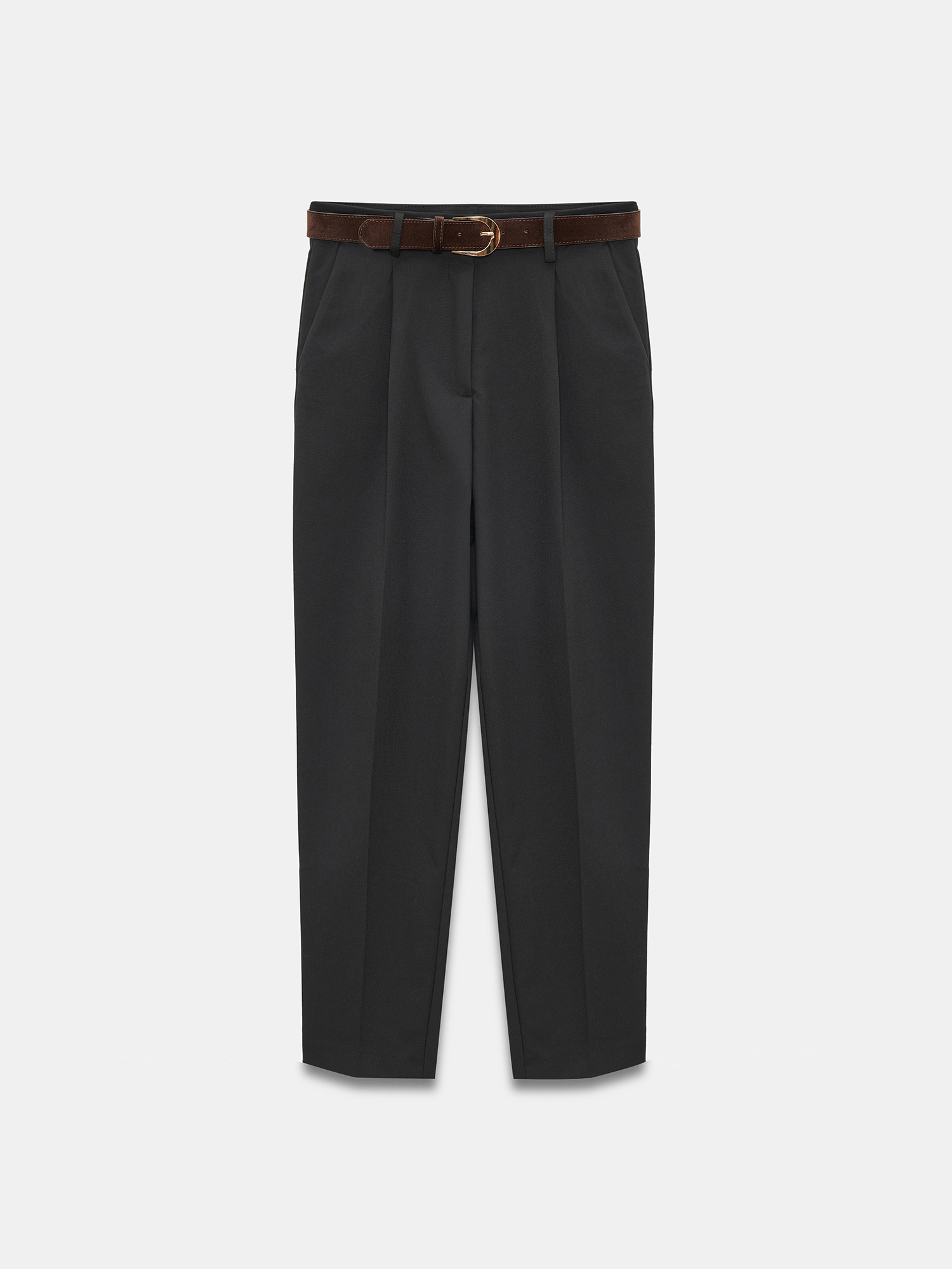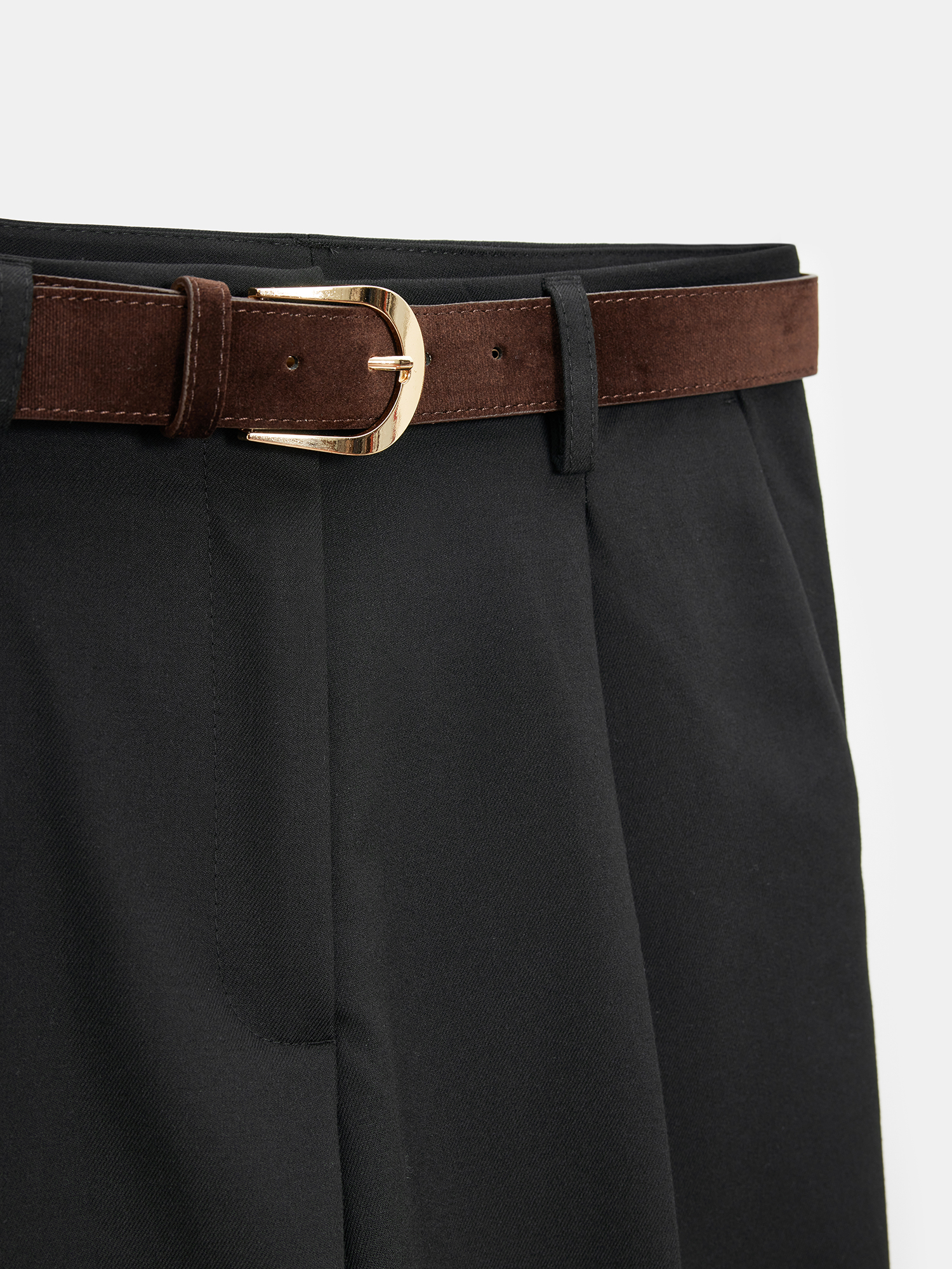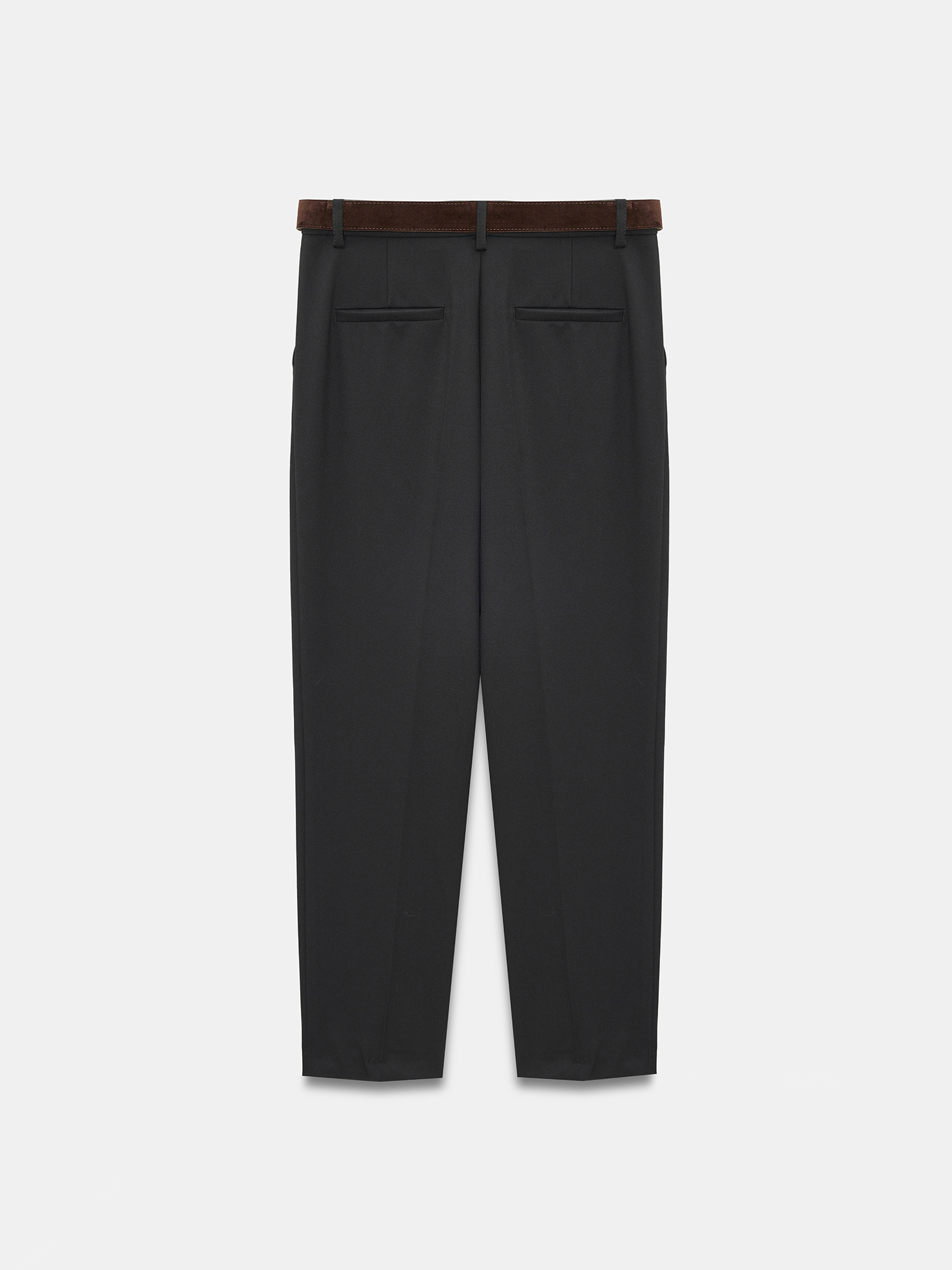 72193 Süet Kemerli Pensli Kumaş Pantolon-Siyah