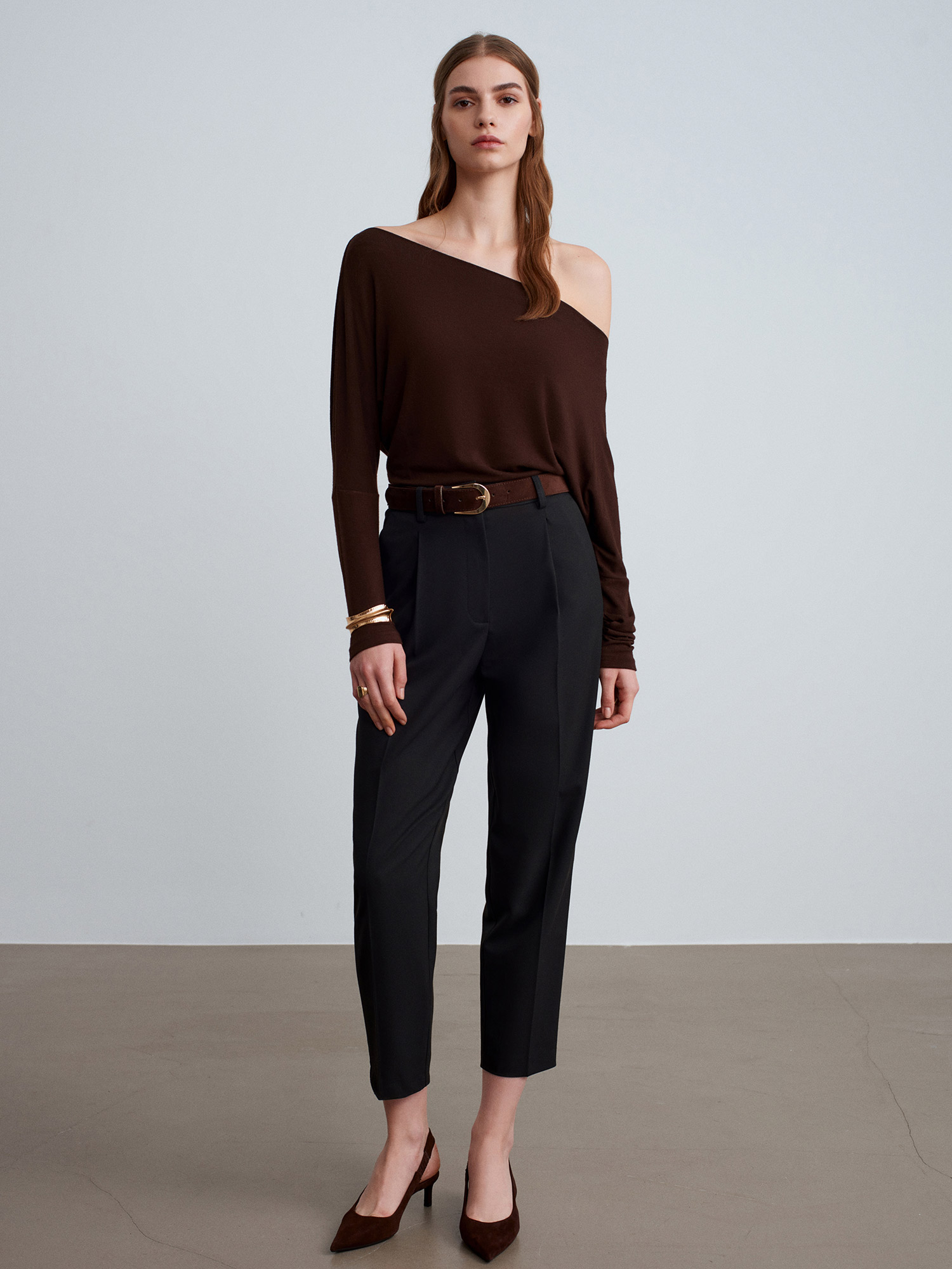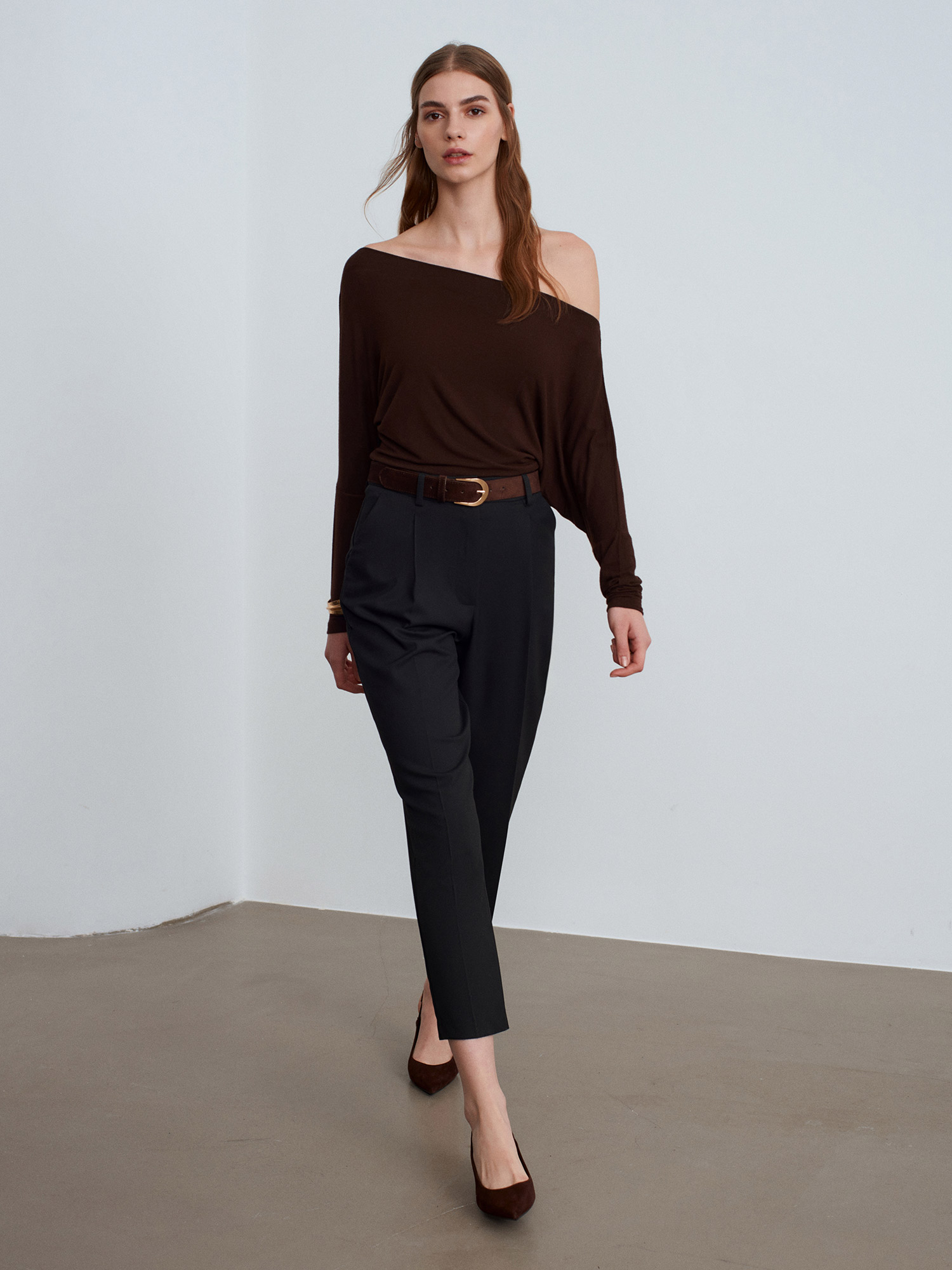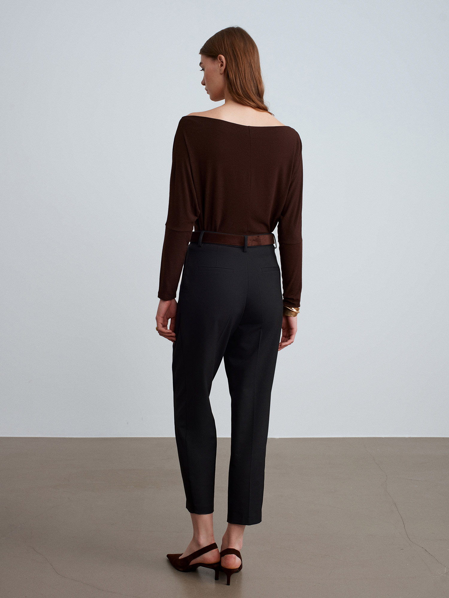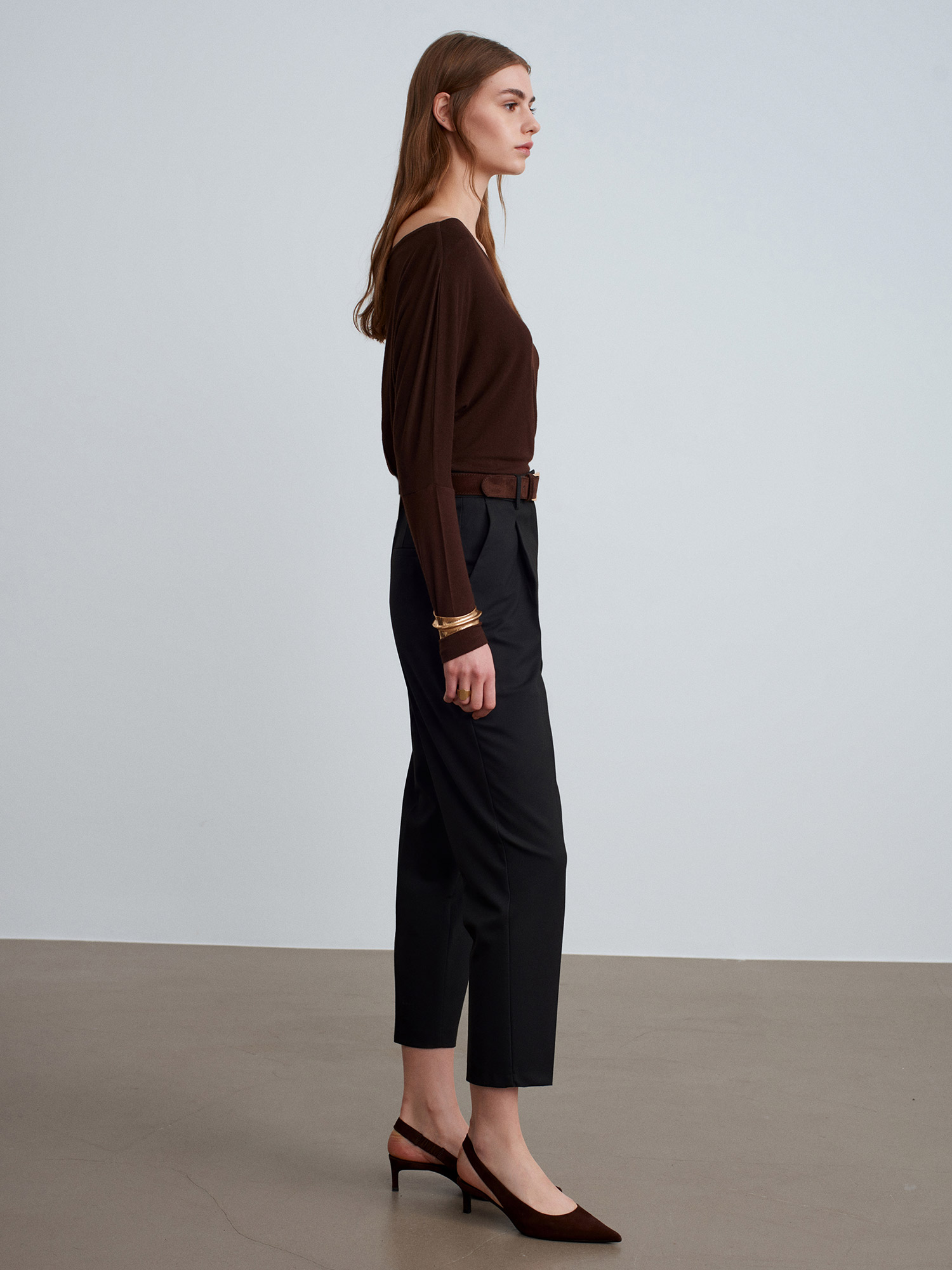 72193 Süet Kemerli Pensli Kumaş Pantolon-Siyah