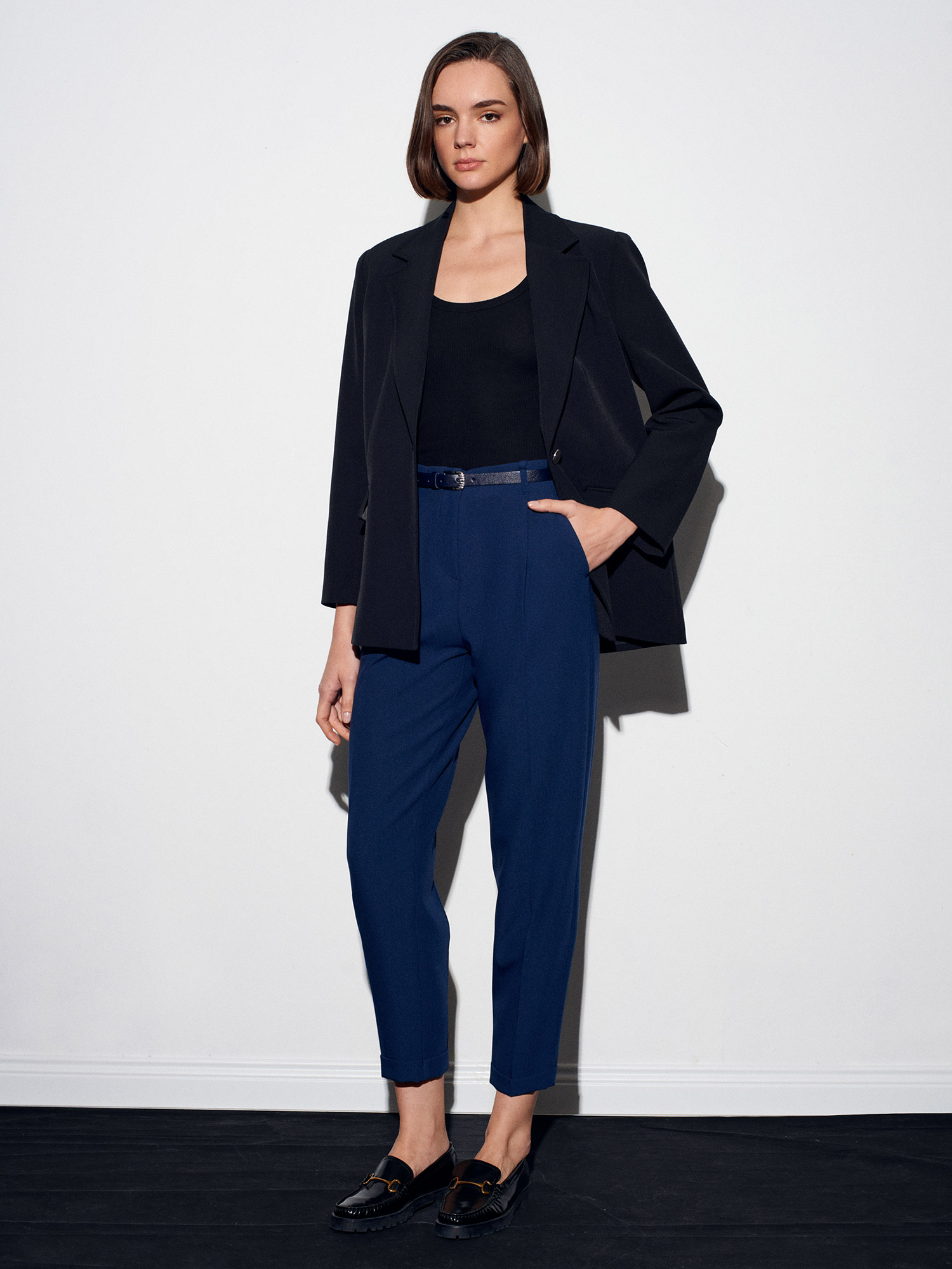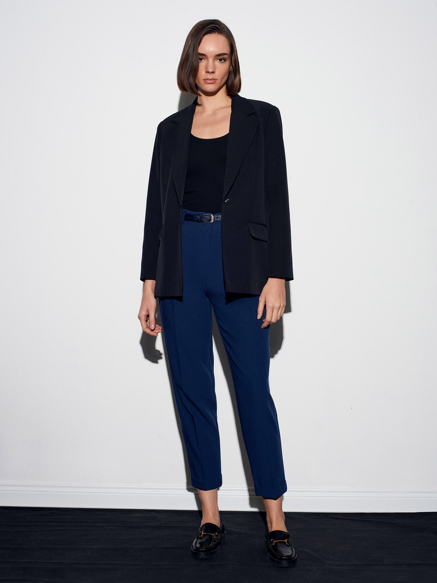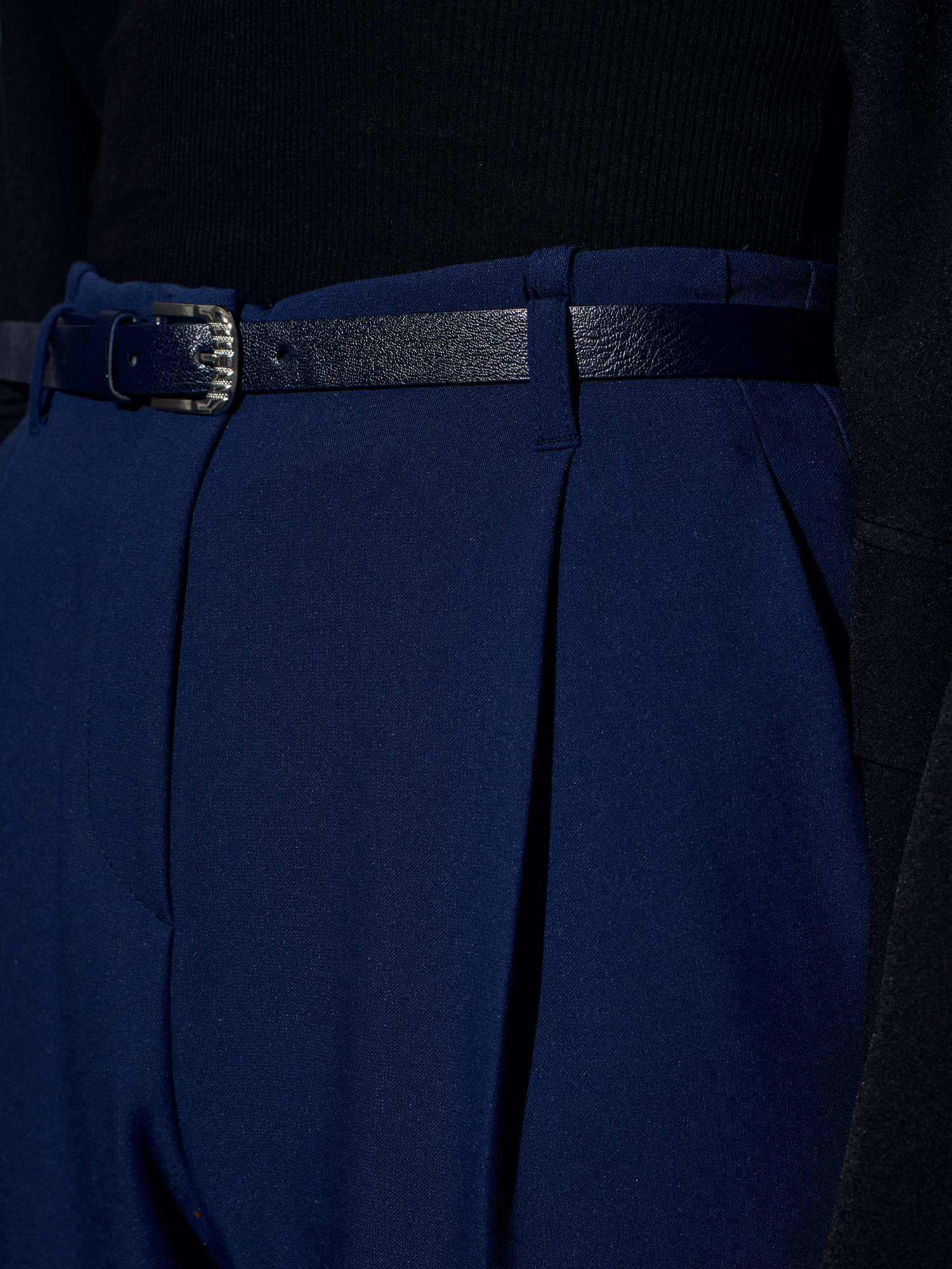 72205 Kemerli Kısa Paça Kumaş Pantolon-İndigo