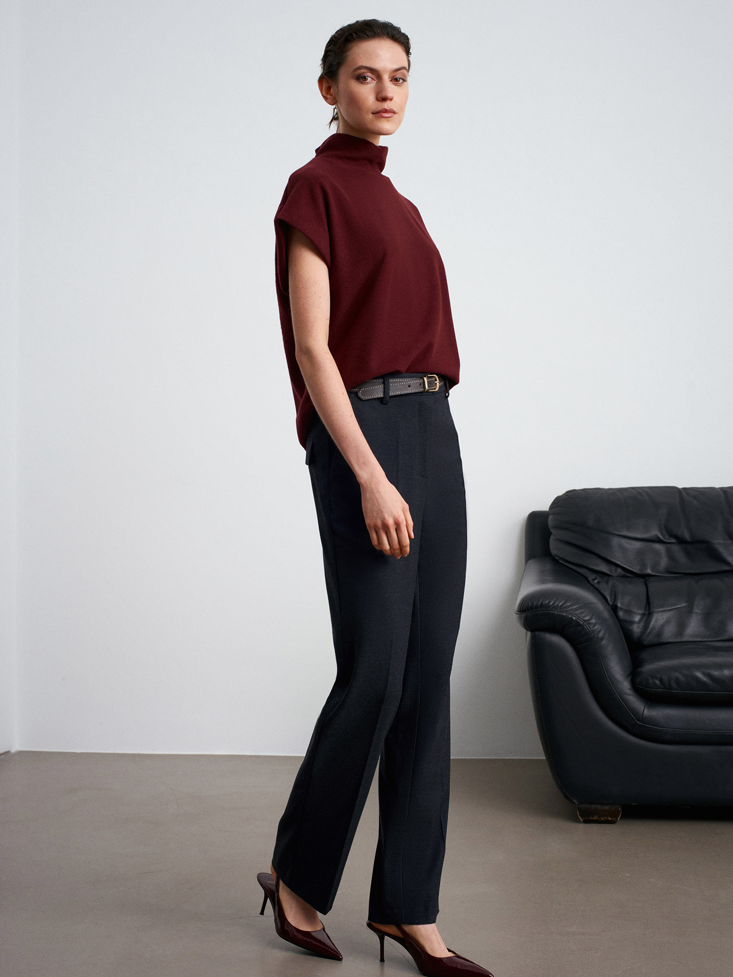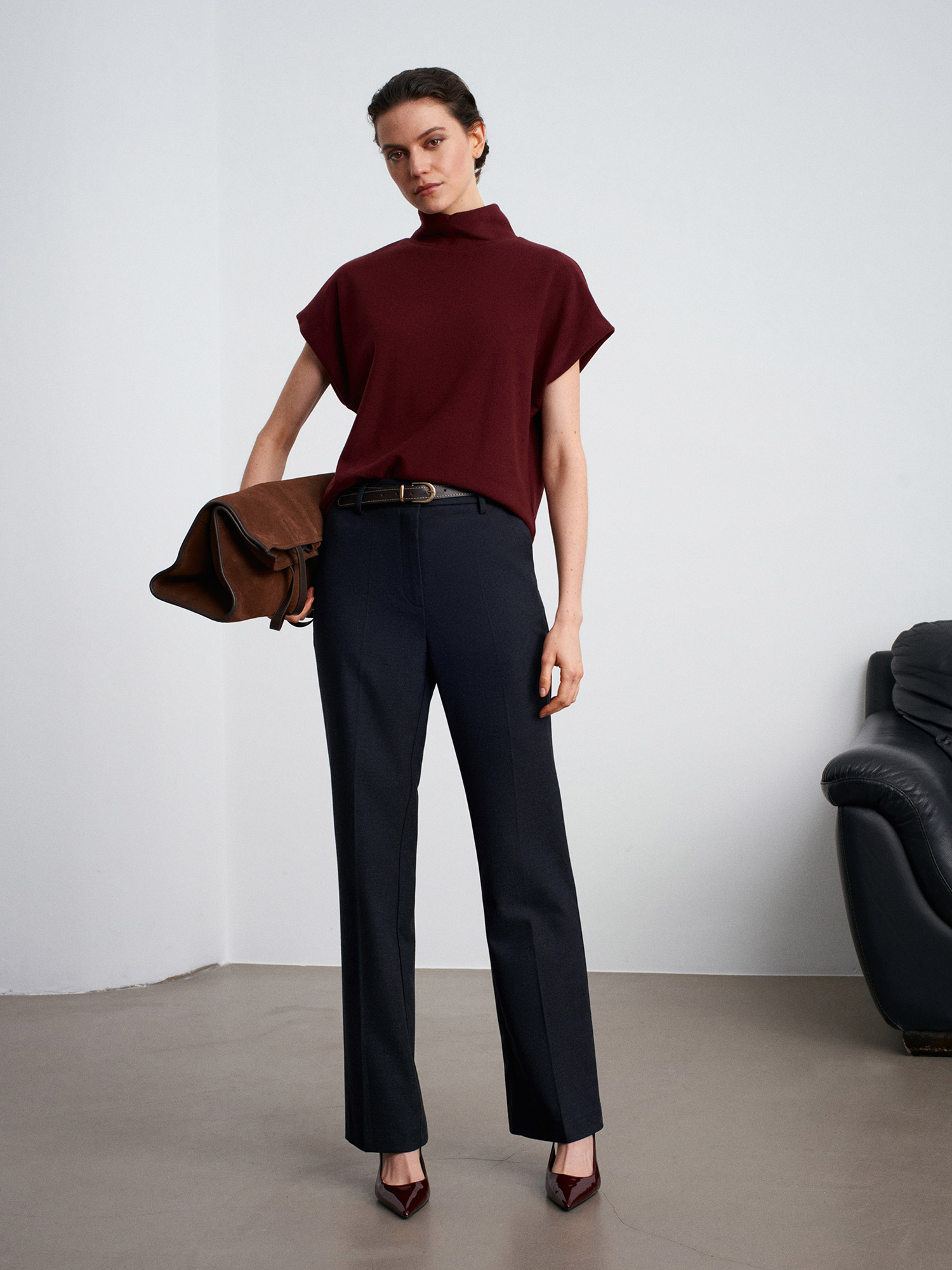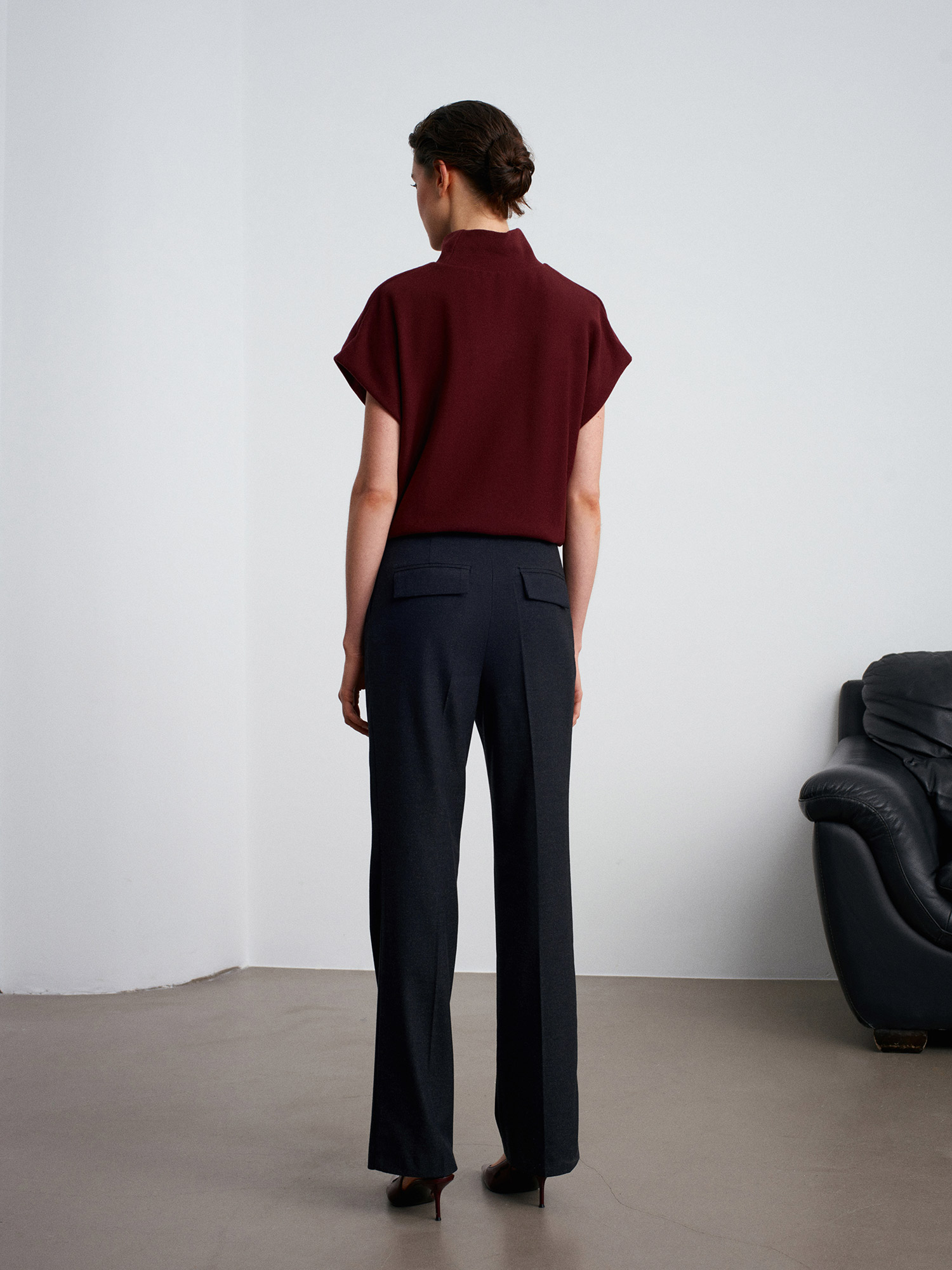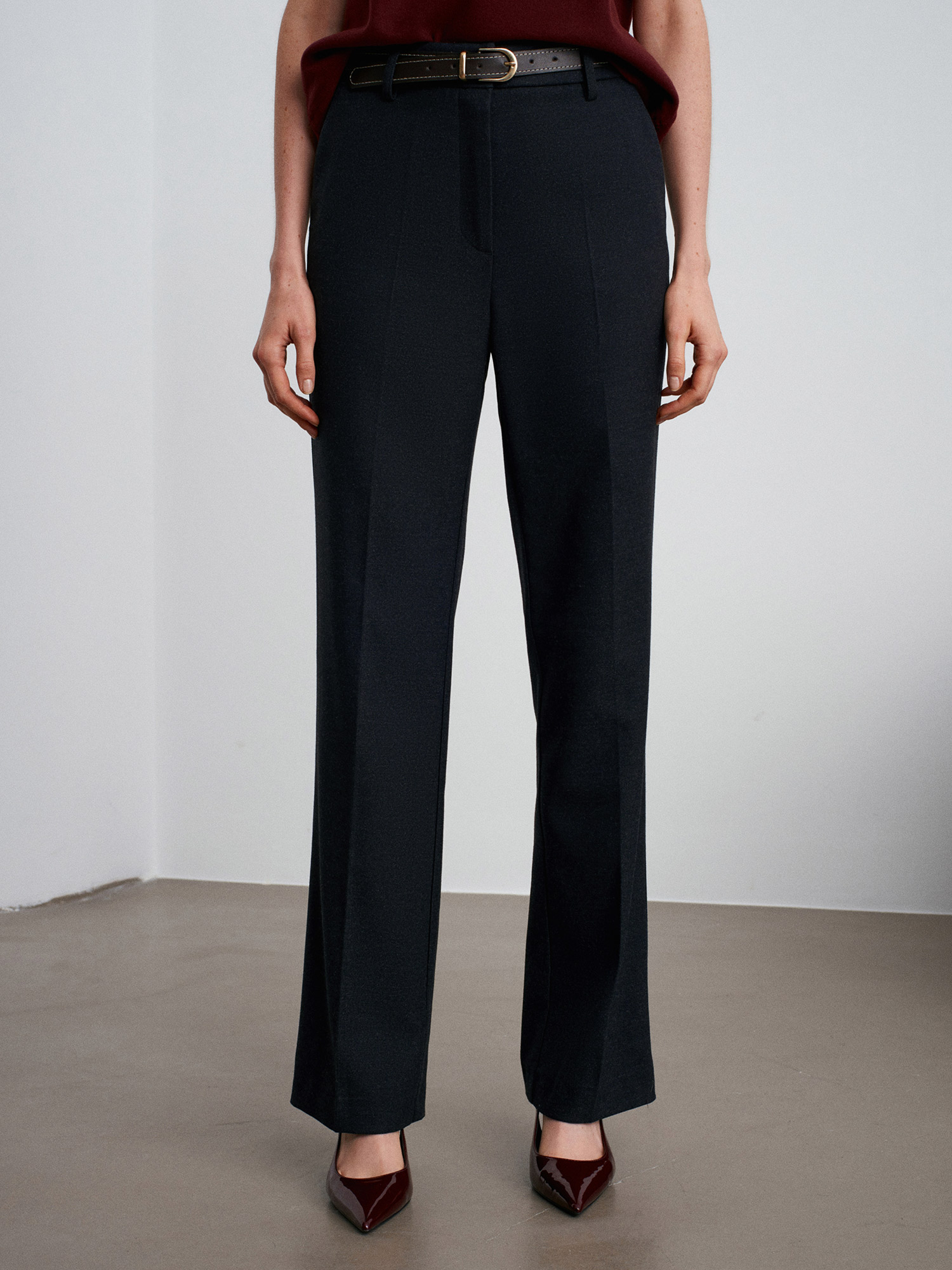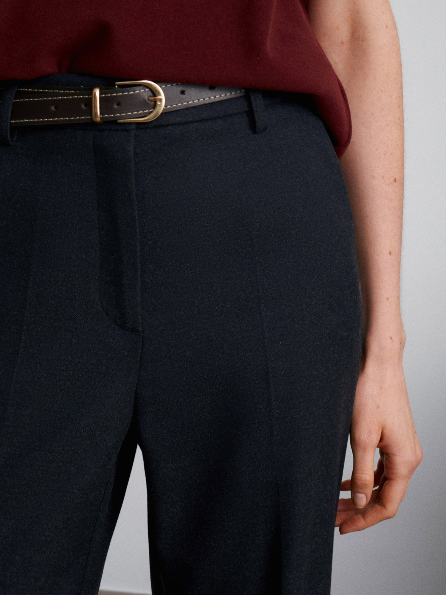 72208 Kemerli Melanjlı Kumaş Pantolon-Lacivert