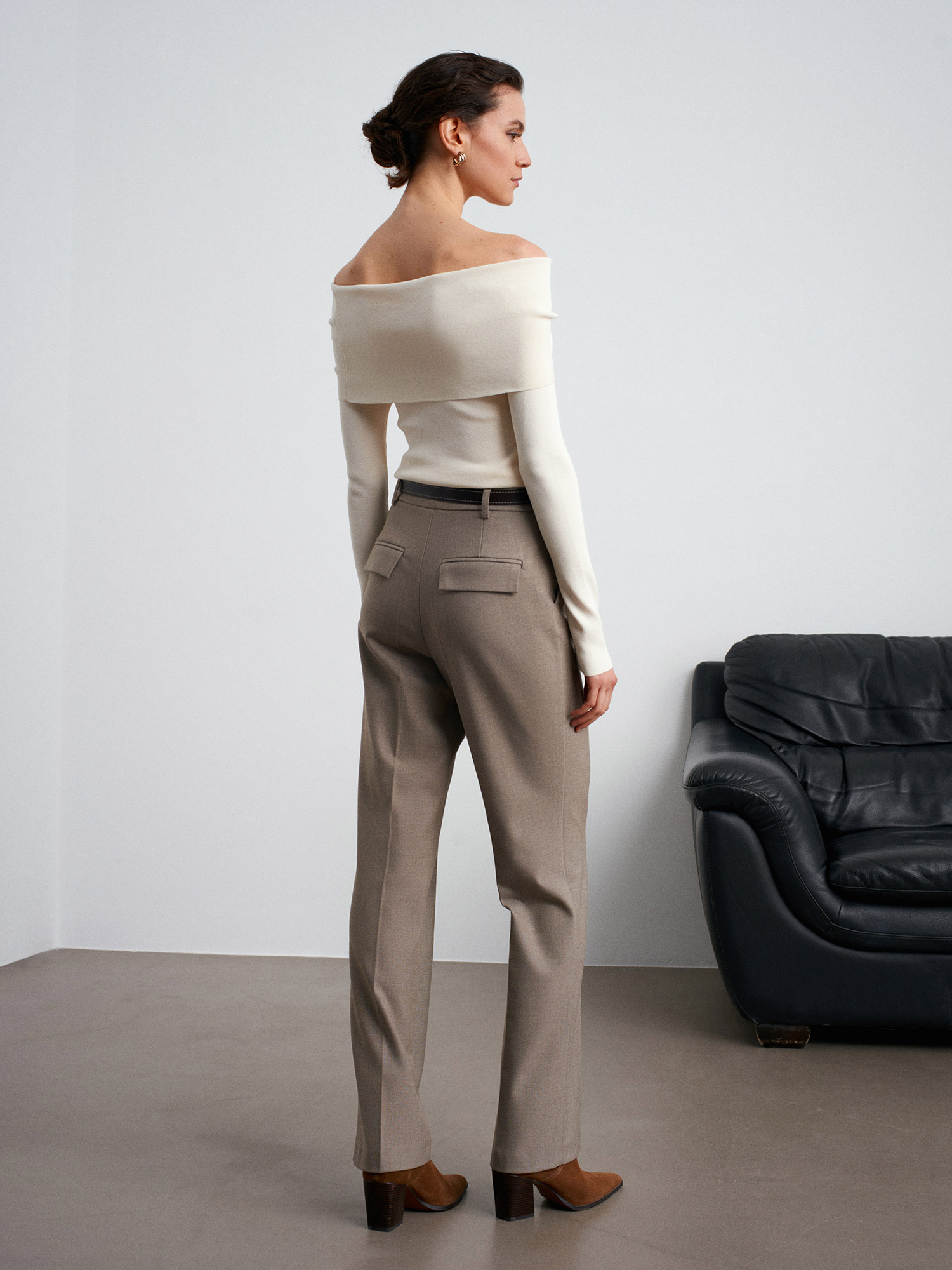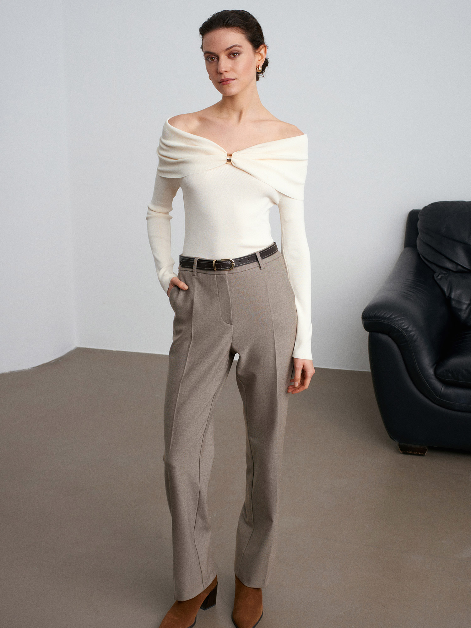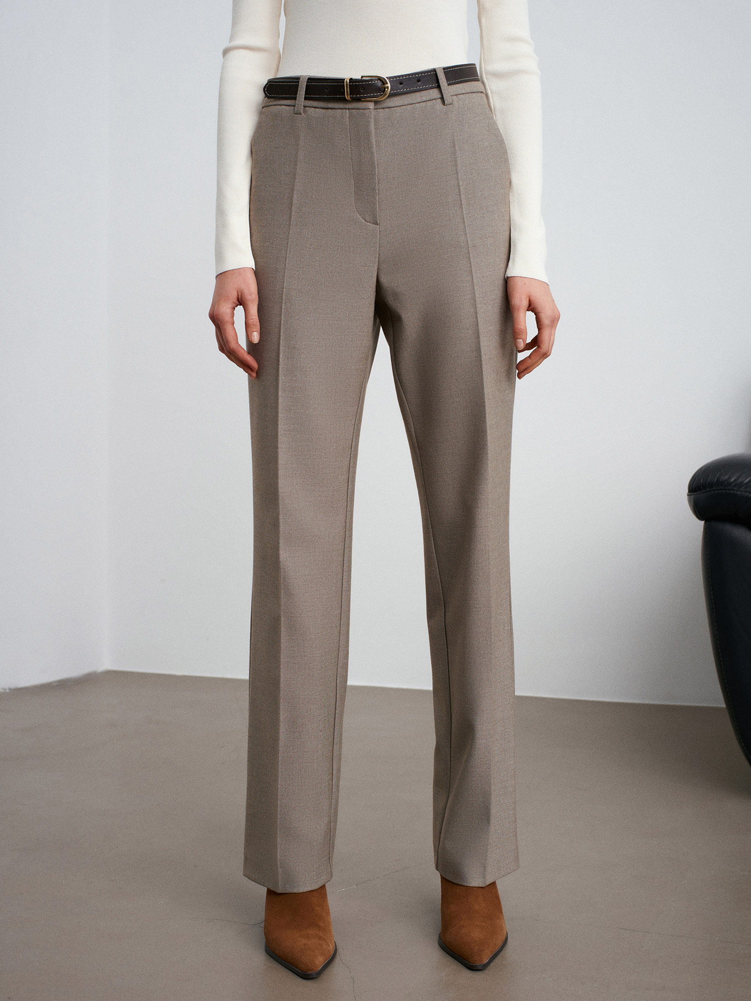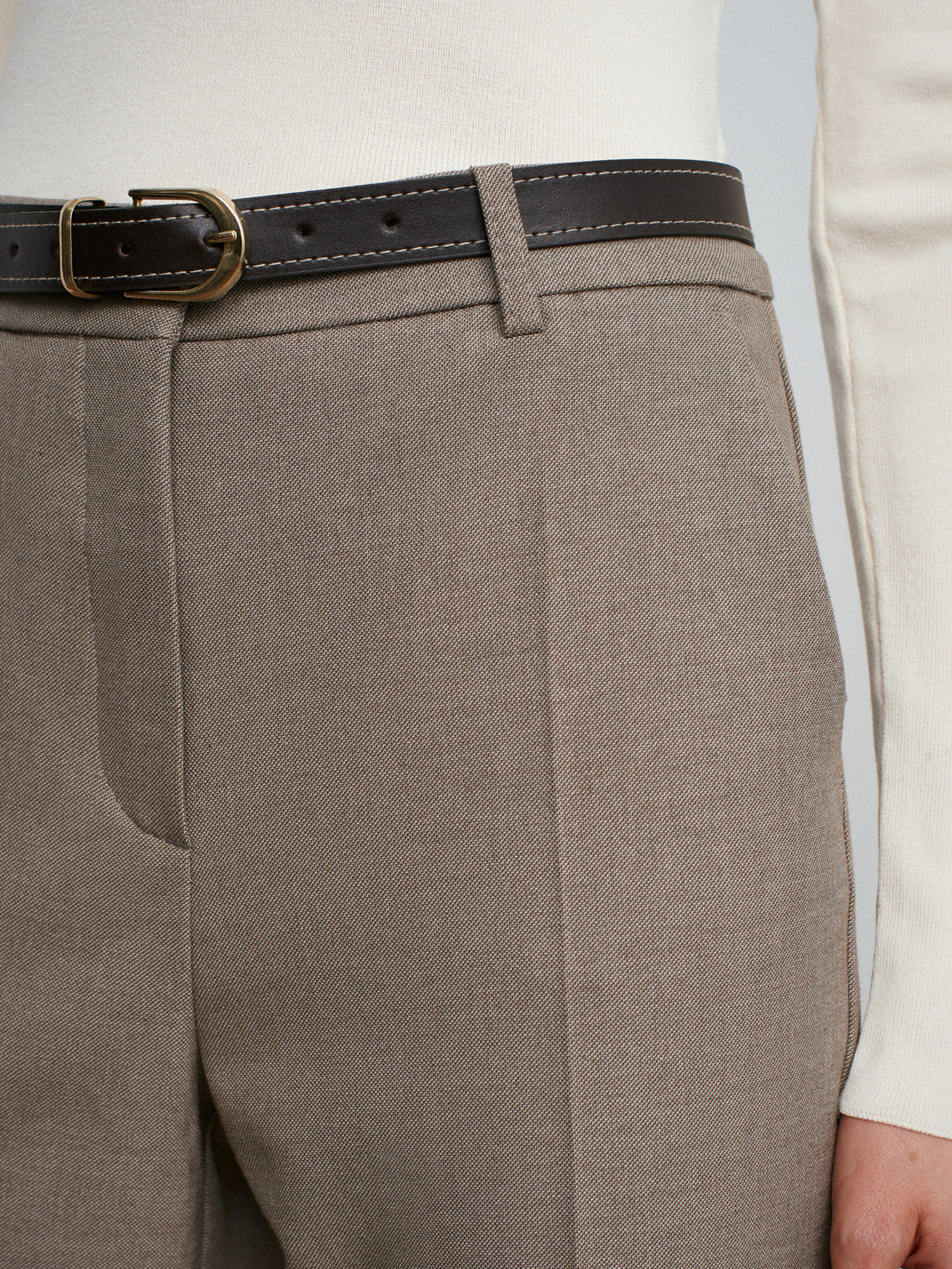 72208 Kemerli Melanjlı Kumaş Pantolon-Taş