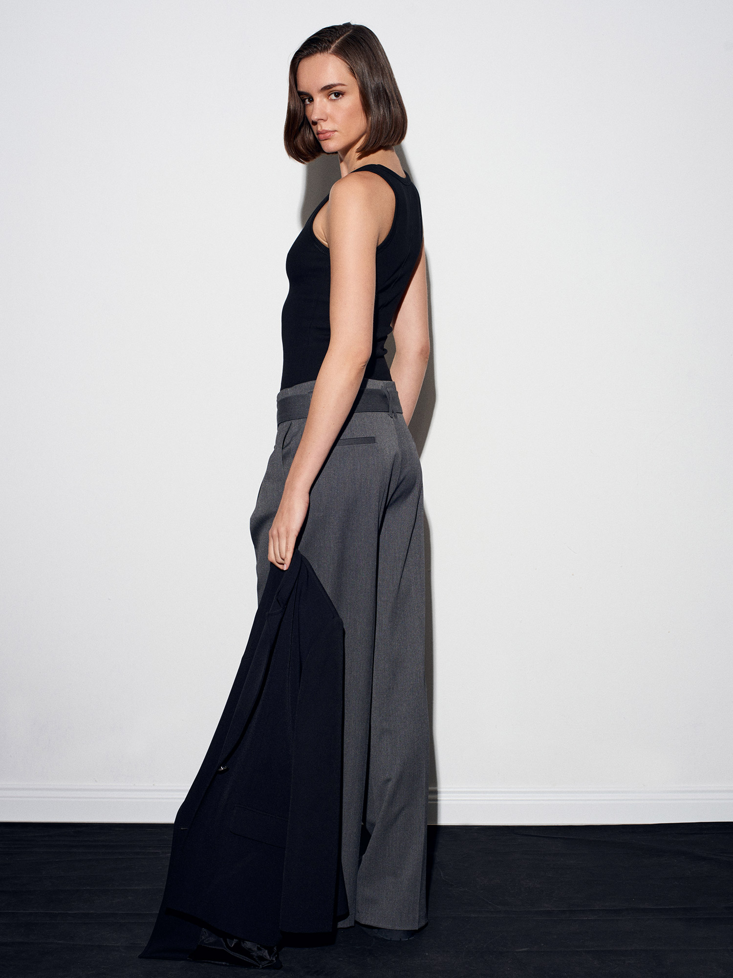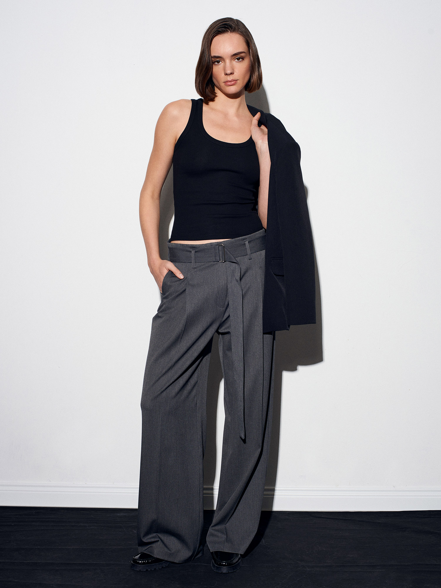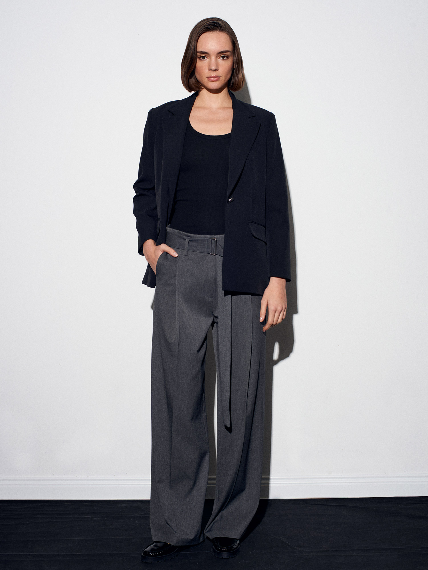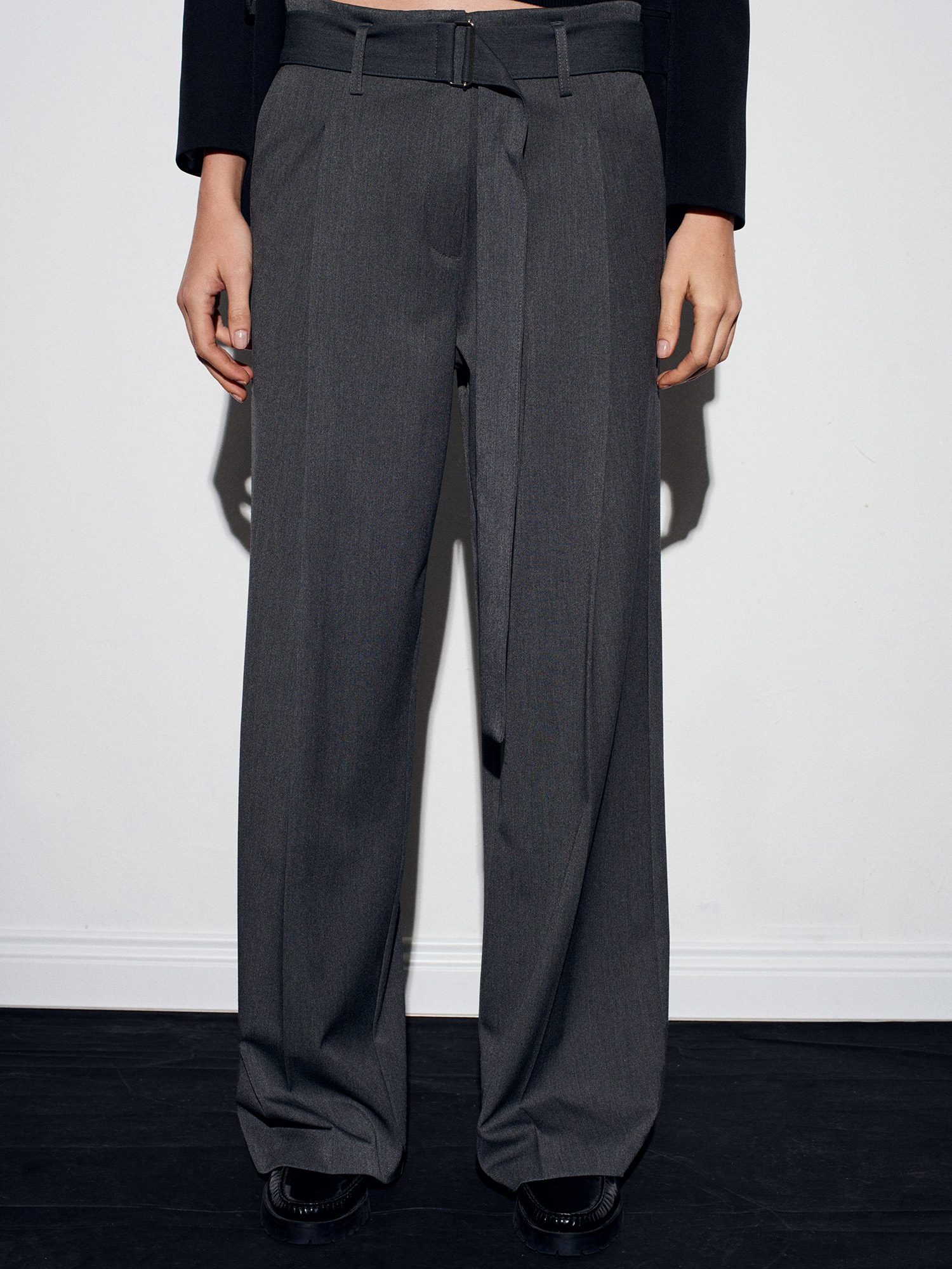 72210 Kemerli Pileli Bol Kumaş Pantolon-Gri