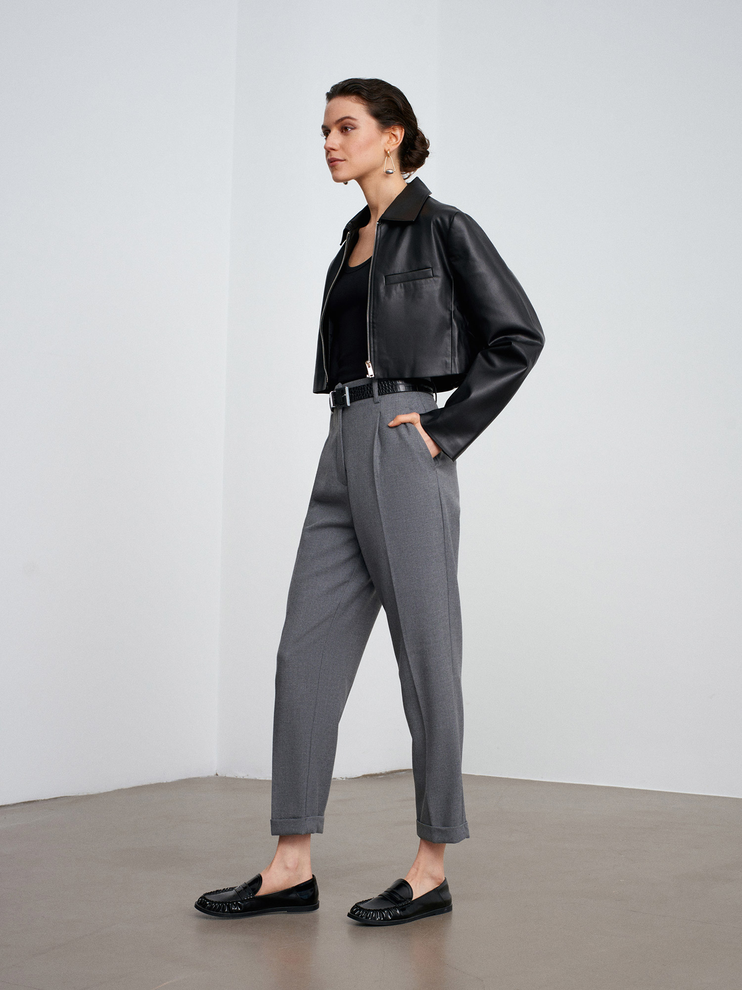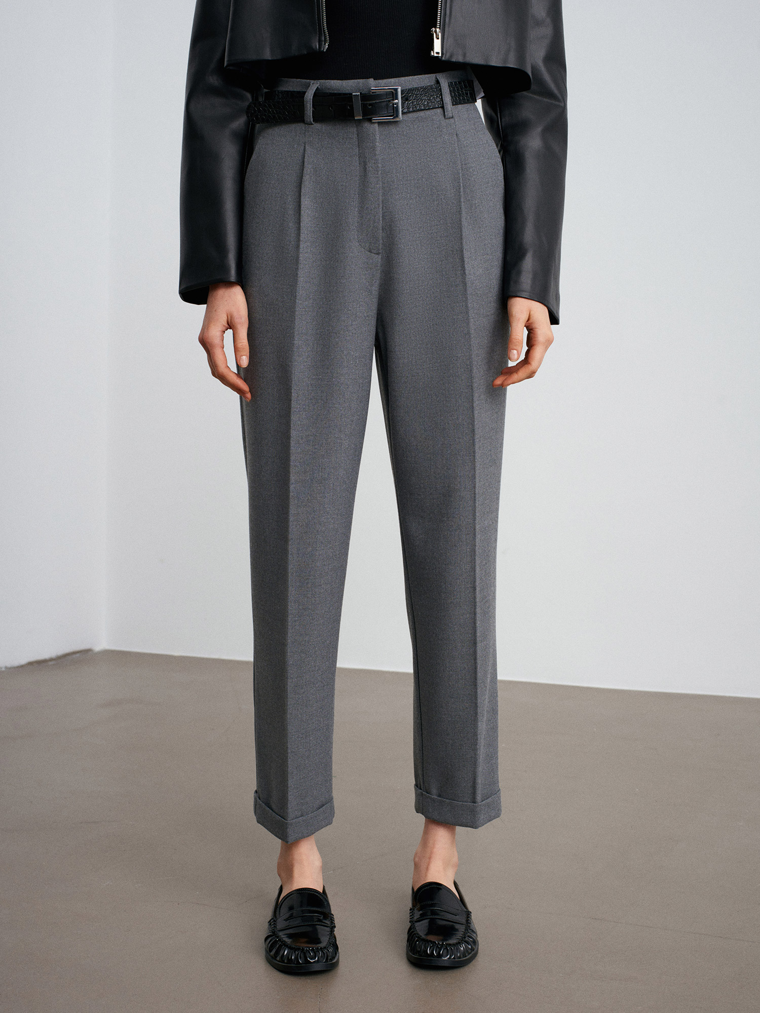 72213 Kıvrık Paça Kemerli Pantolon-Gri