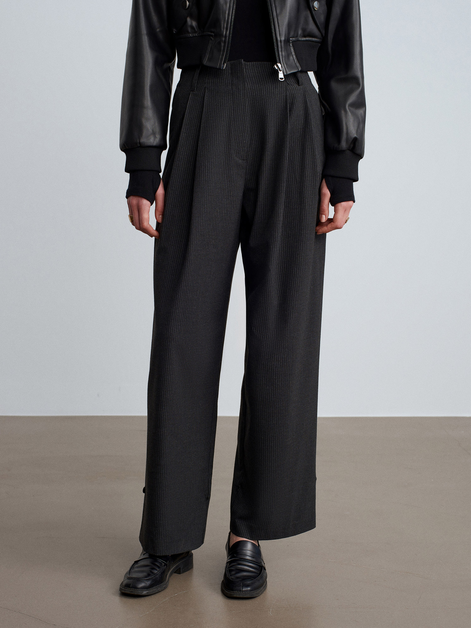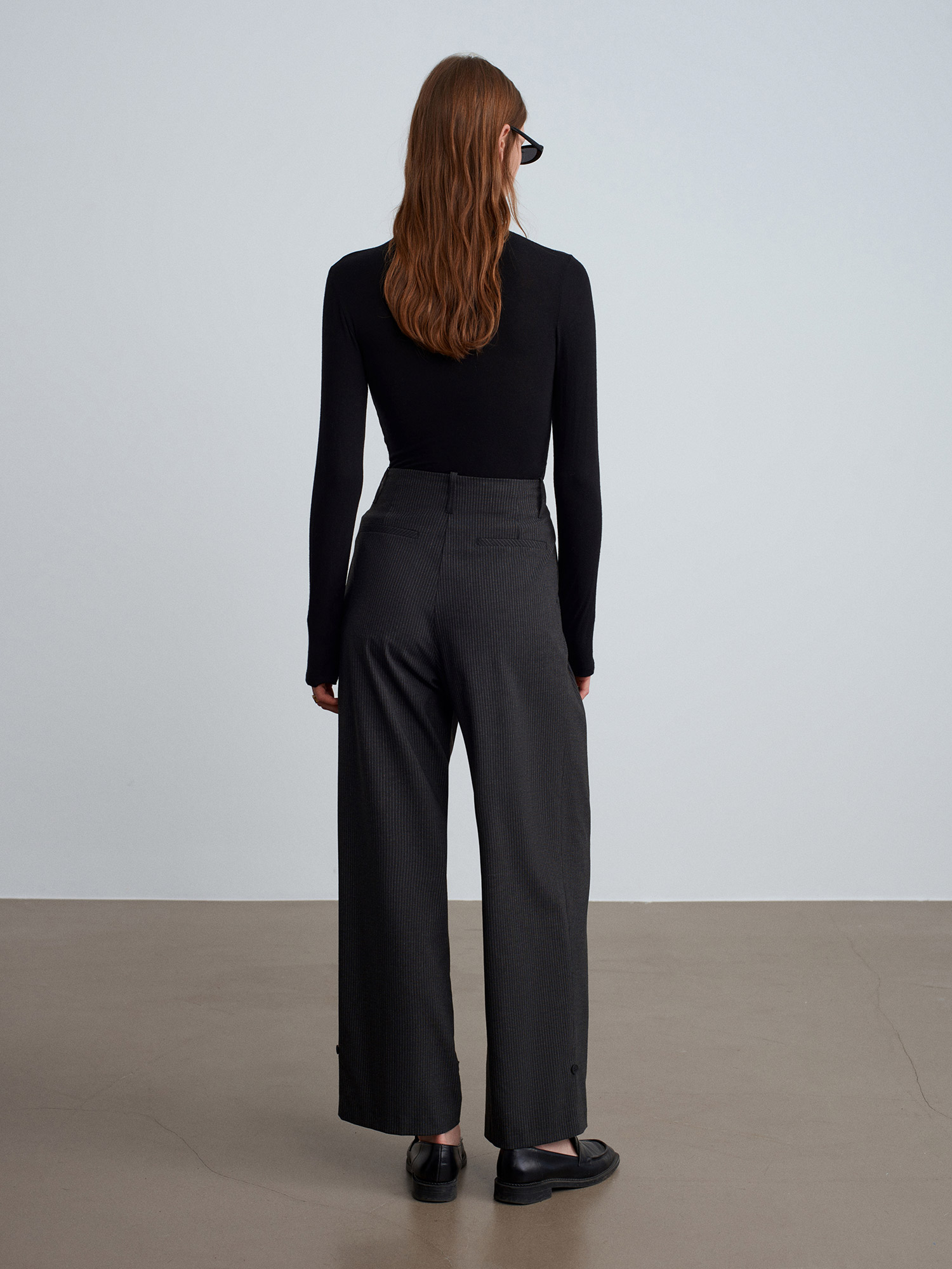 72222 Paçası Düğme Detaylı Kumaş Pantolon-Antrasit