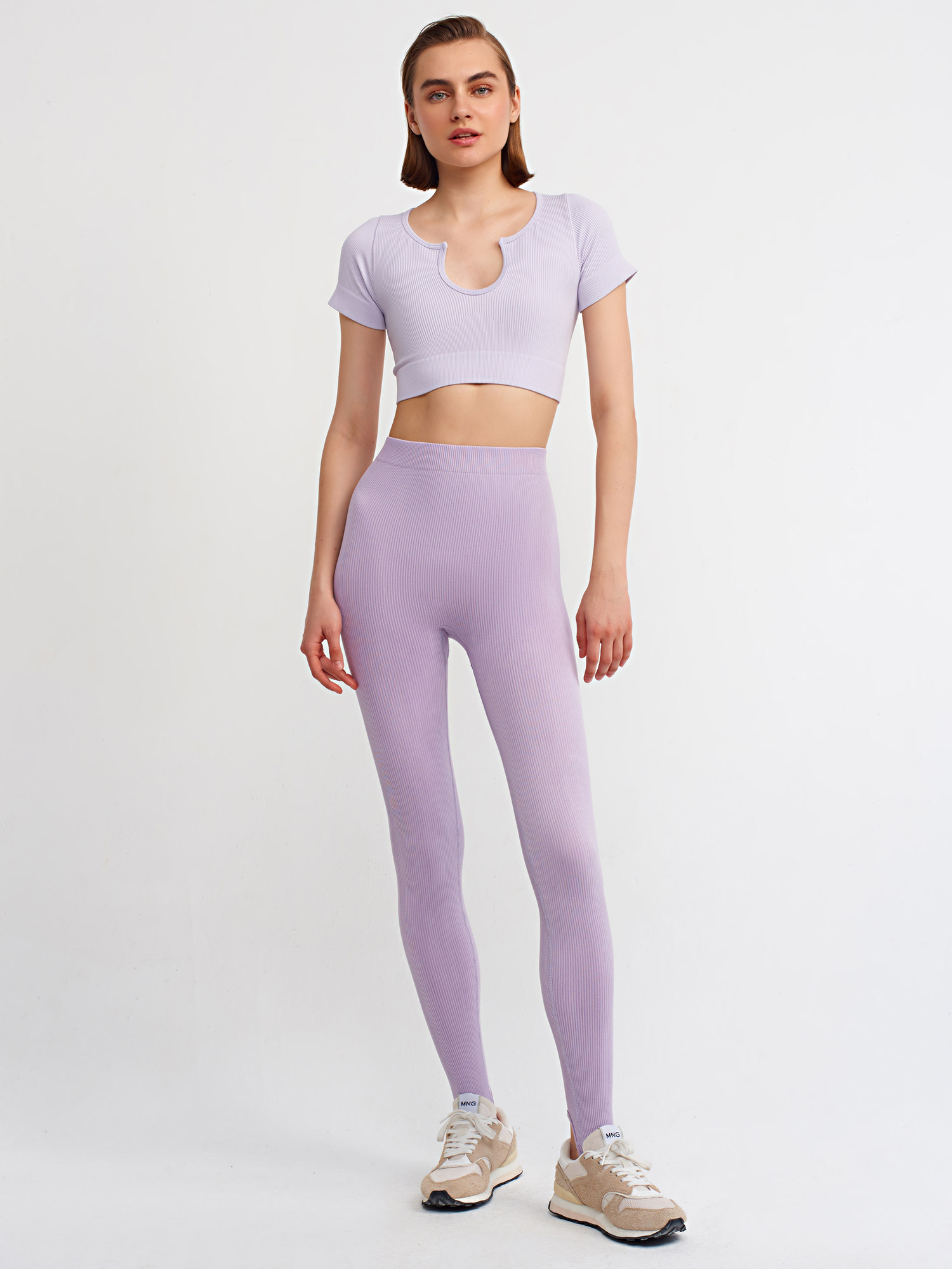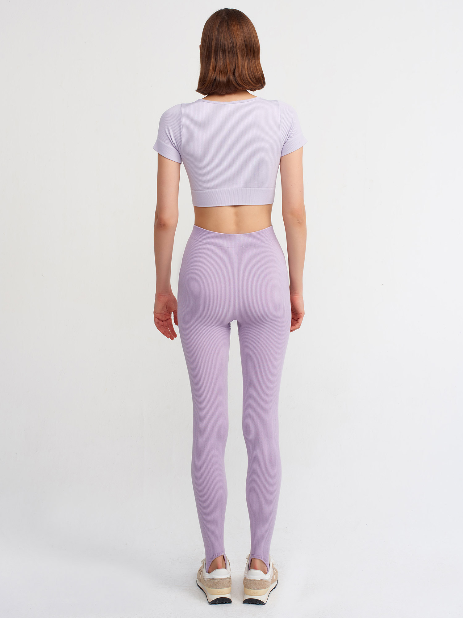 7923 Taş Yıkama Topuklu Tayt-Lila