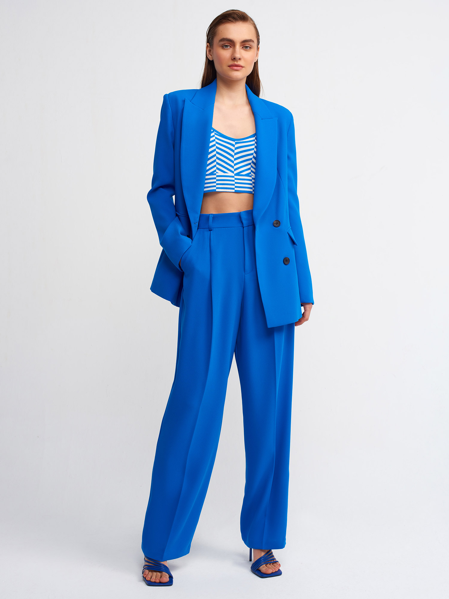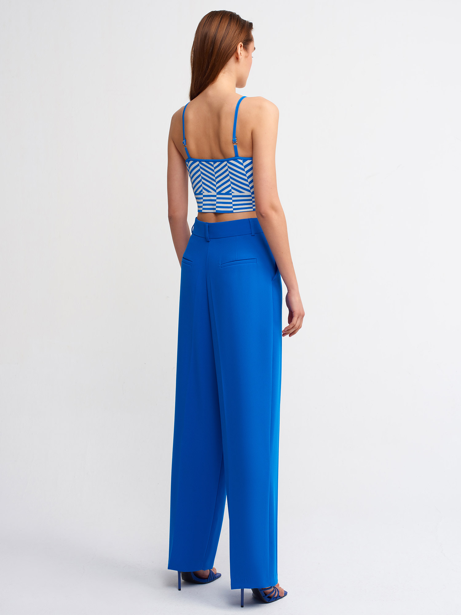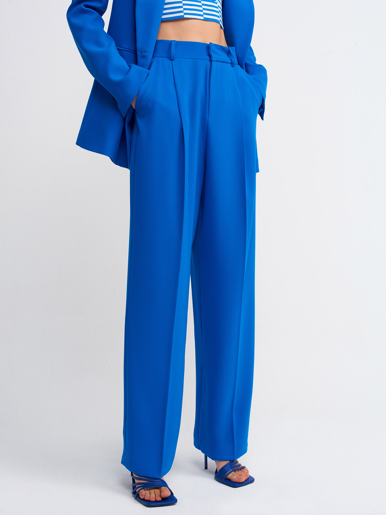 7954 Yüksek Bel Pileli Palazzo Pantolon-Saks