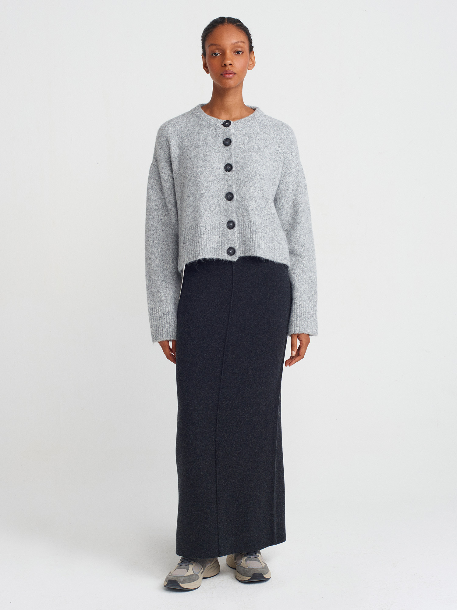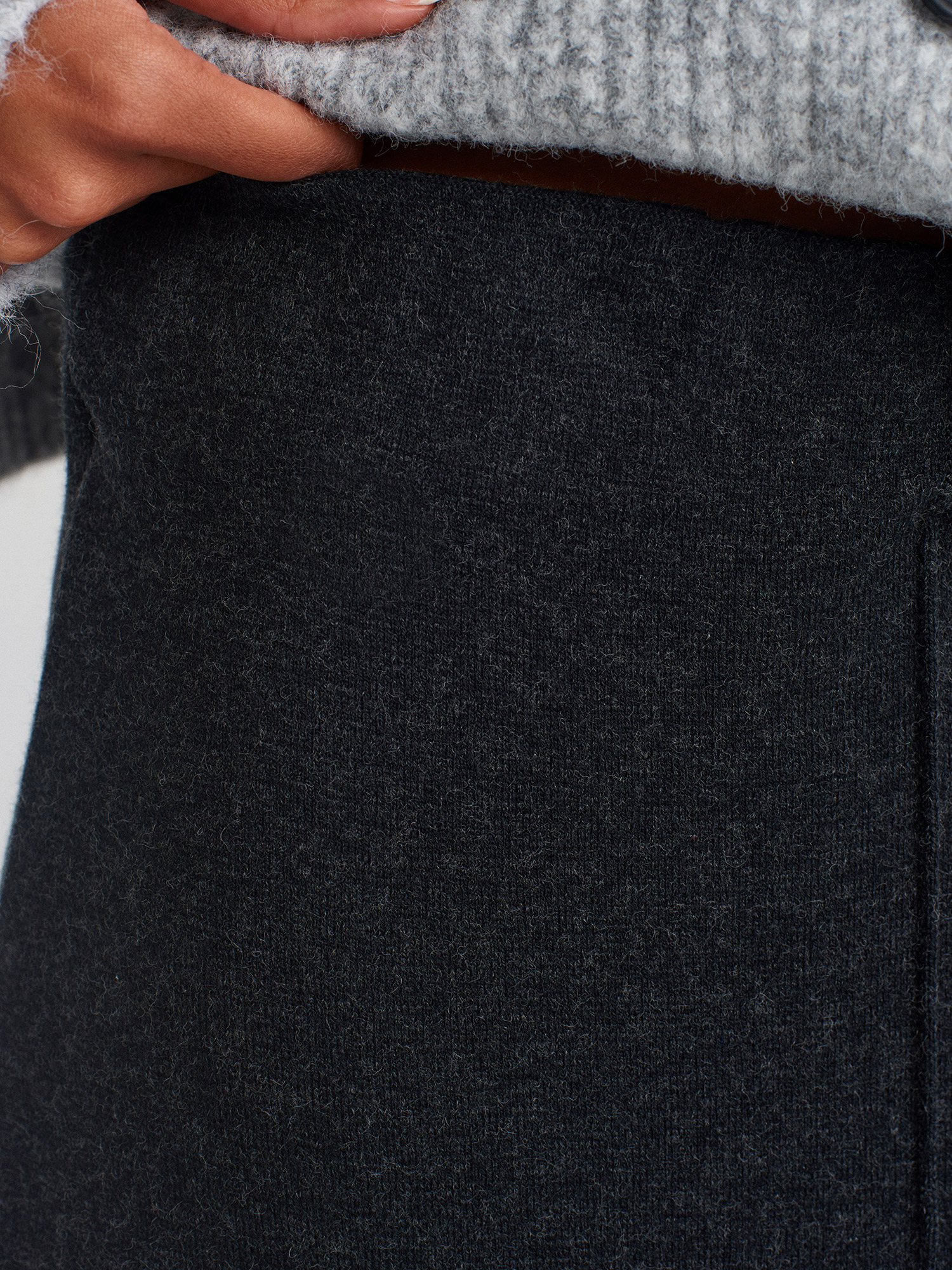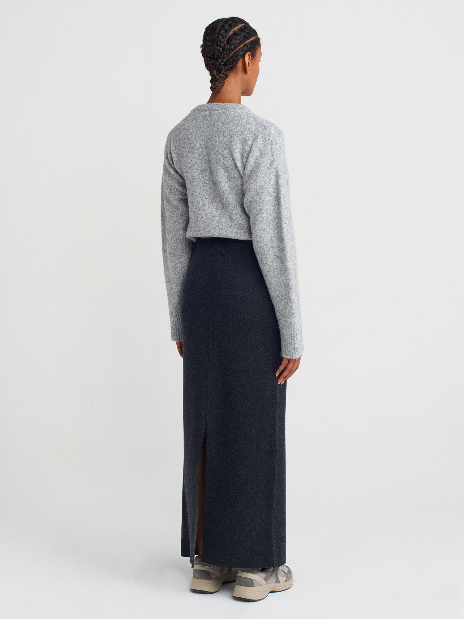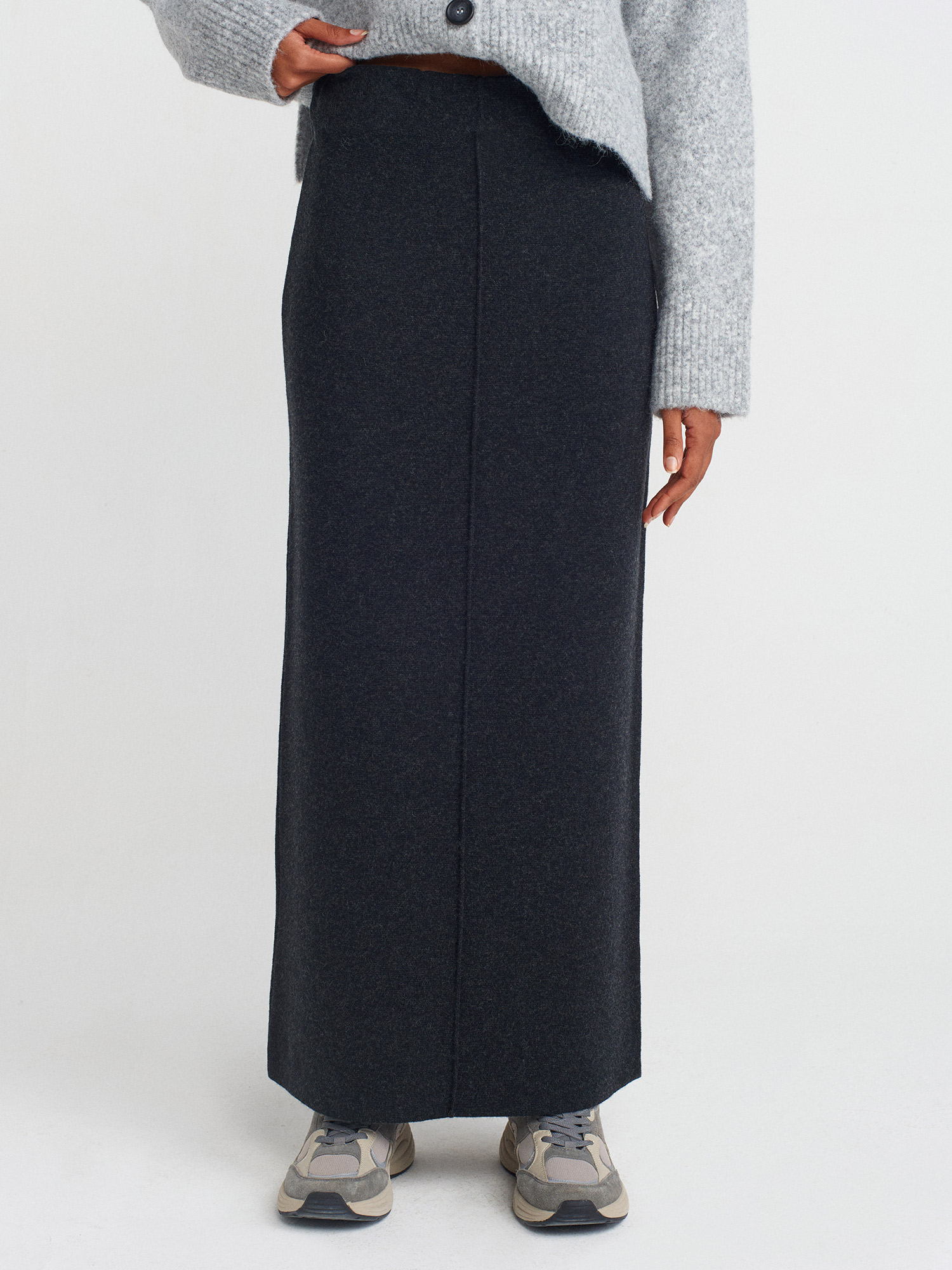 80116 Beli Lastikli Dikiş Yırtmaç Detaylı Triko Etek-Antrasit