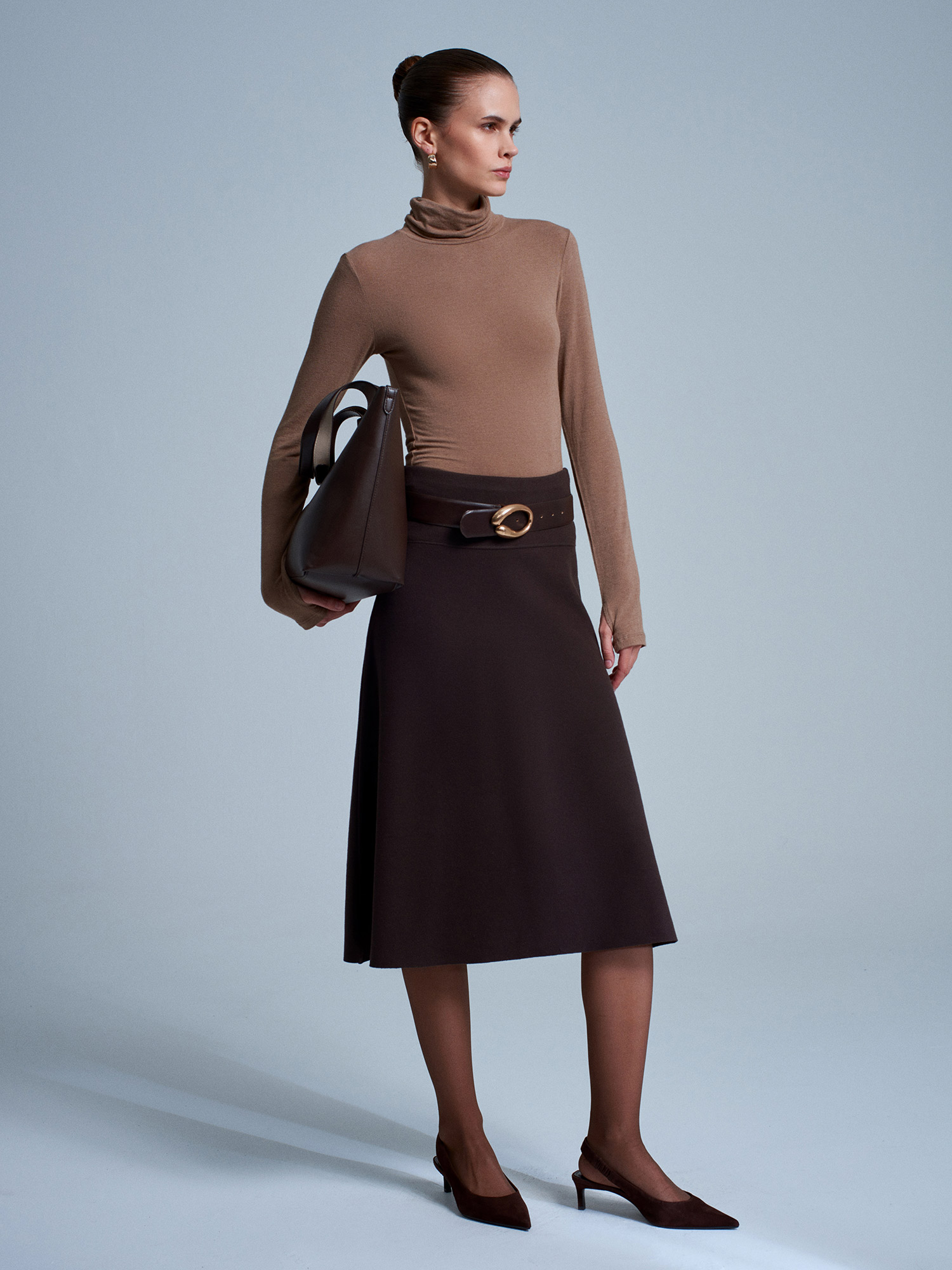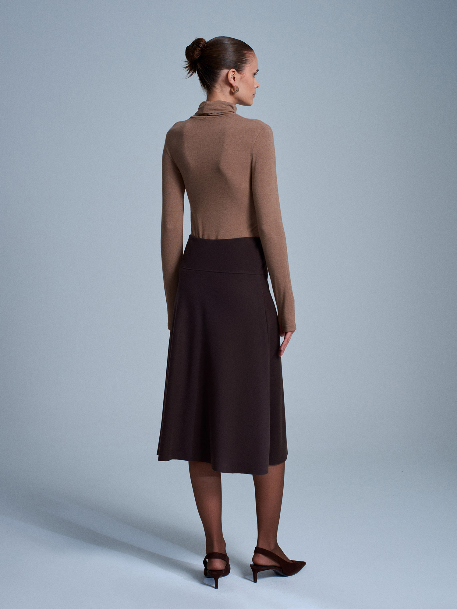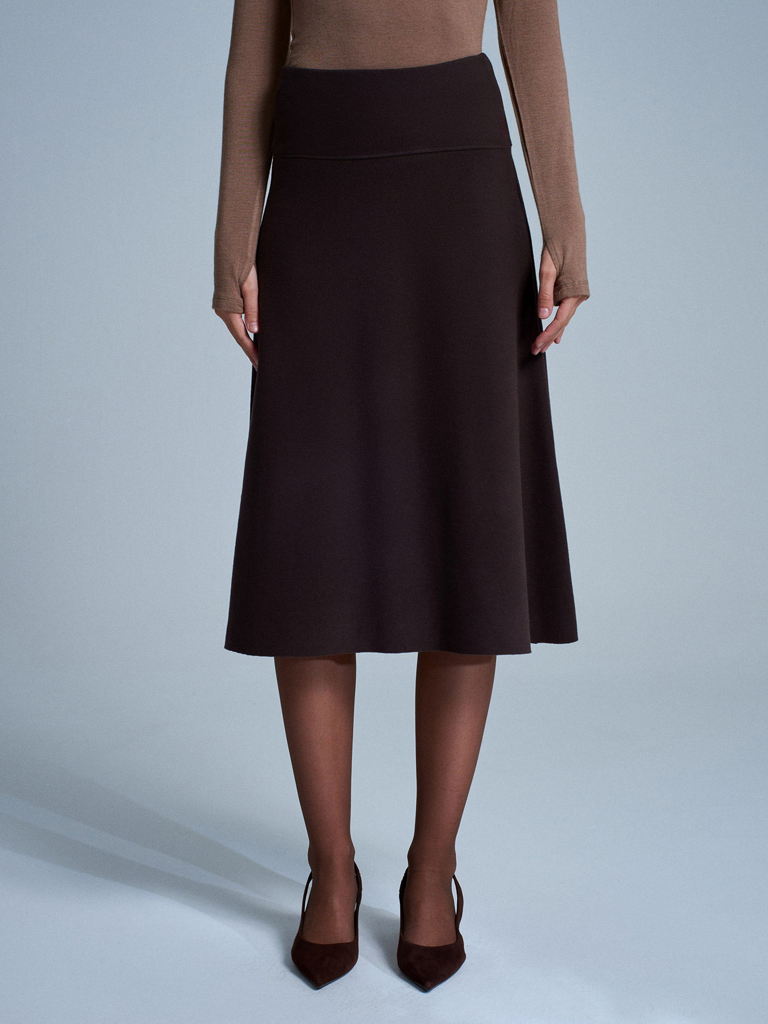 80390 Beli Lastikli Örme Midi Etek-Koyu Kahve
