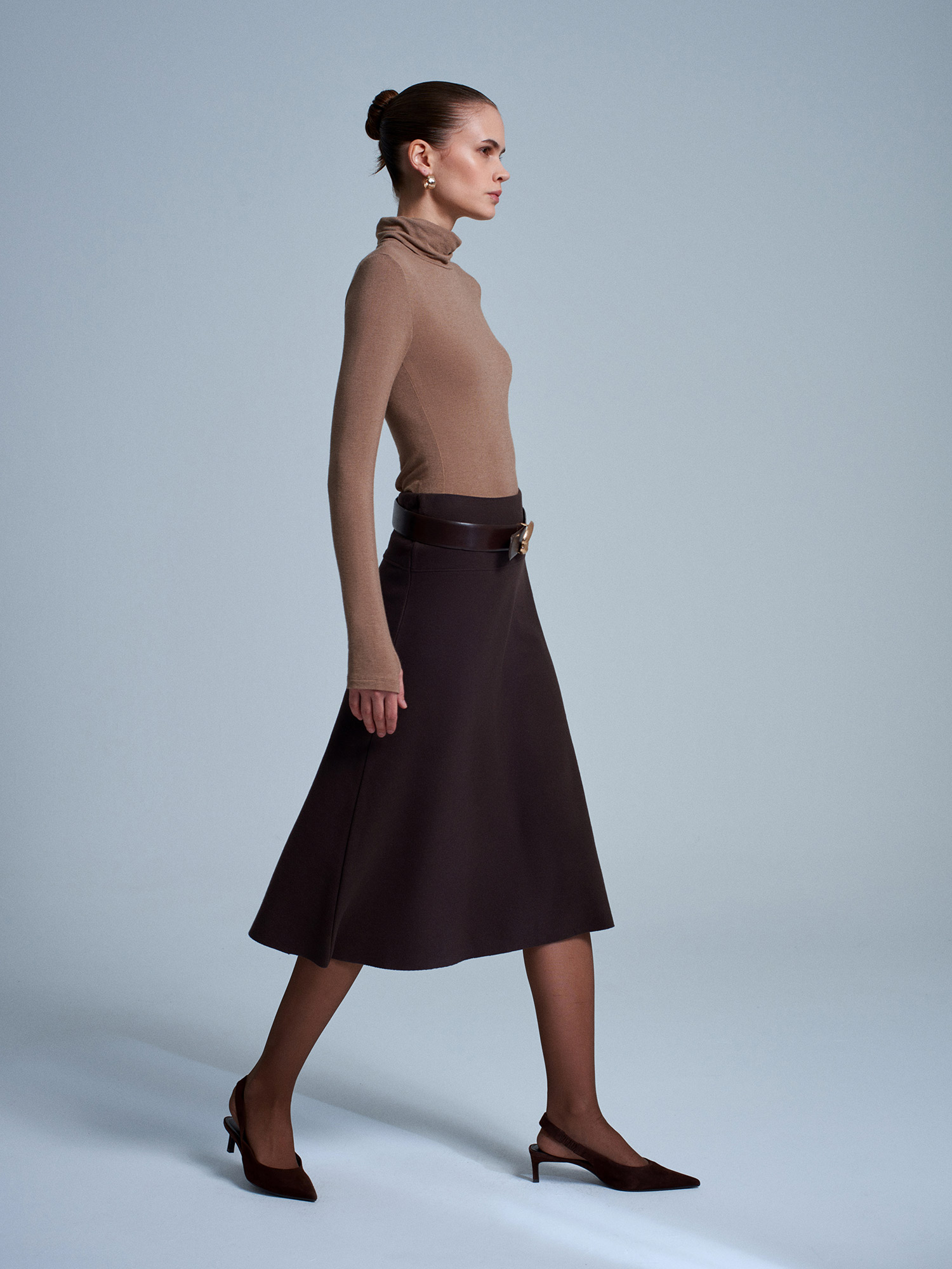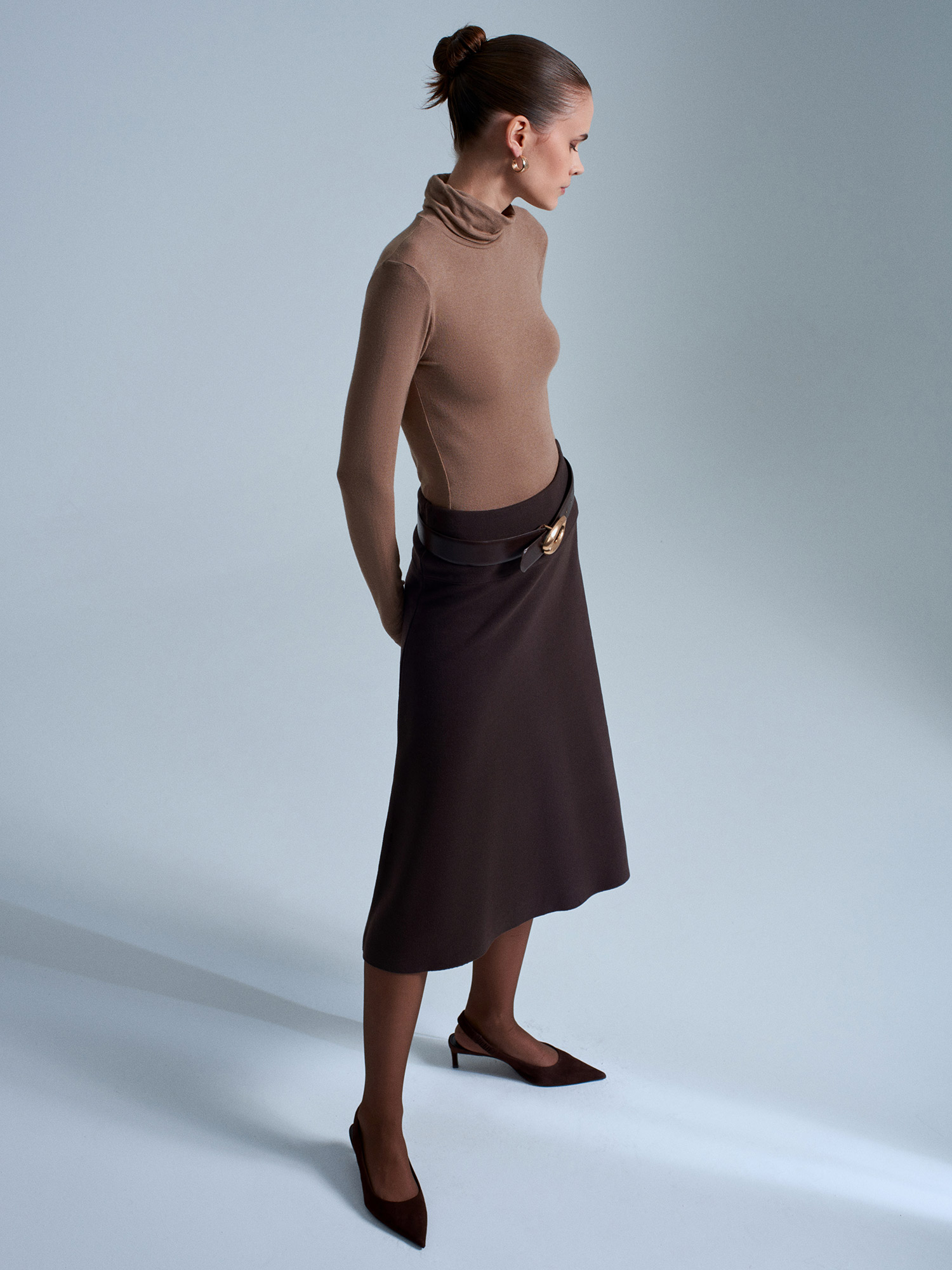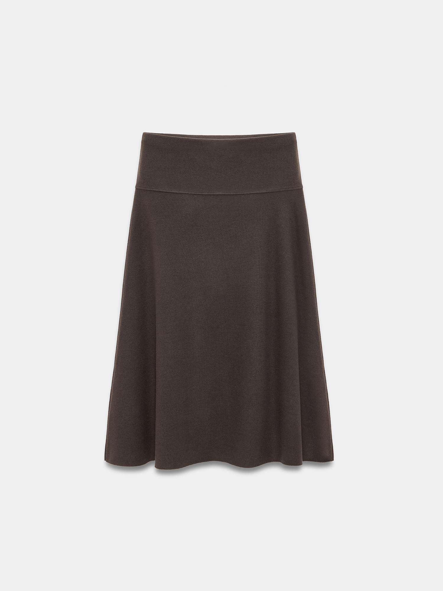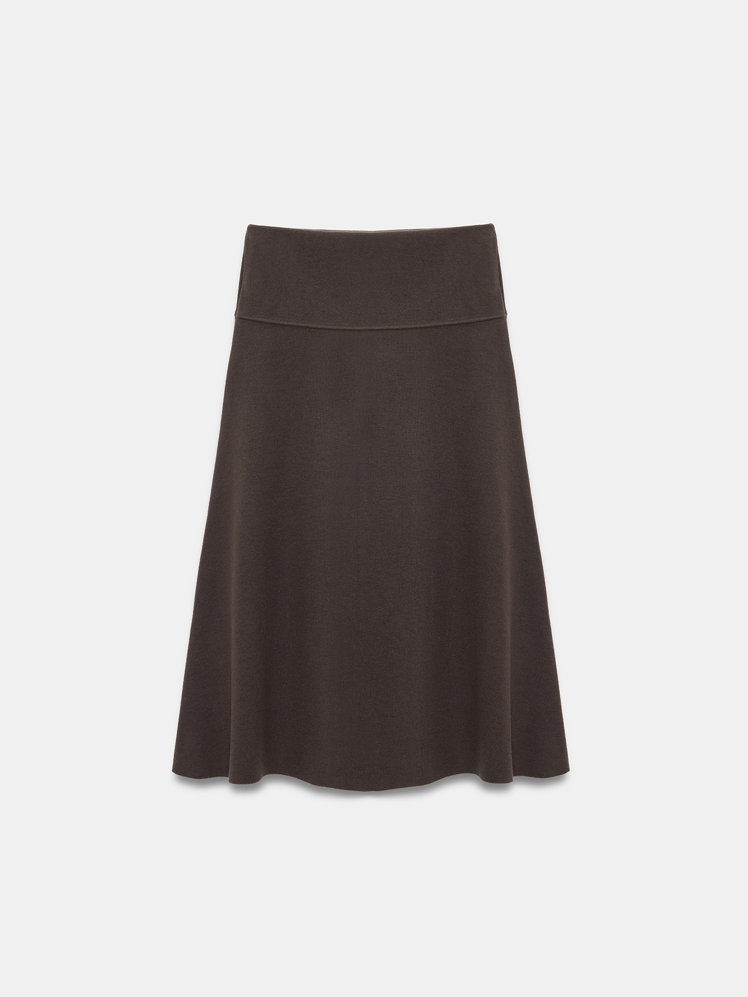 80390 Beli Lastikli Örme Midi Etek-Koyu Kahve