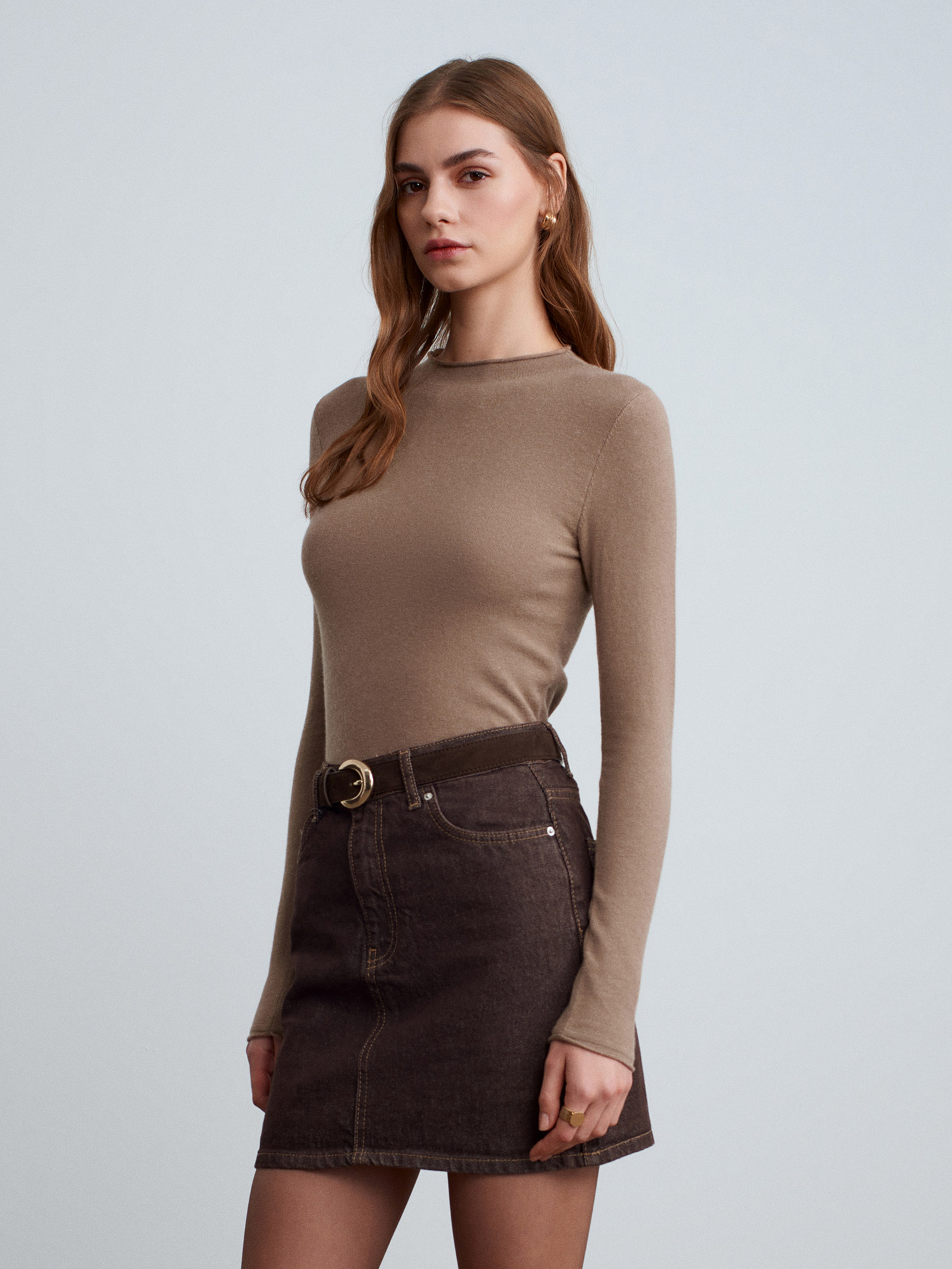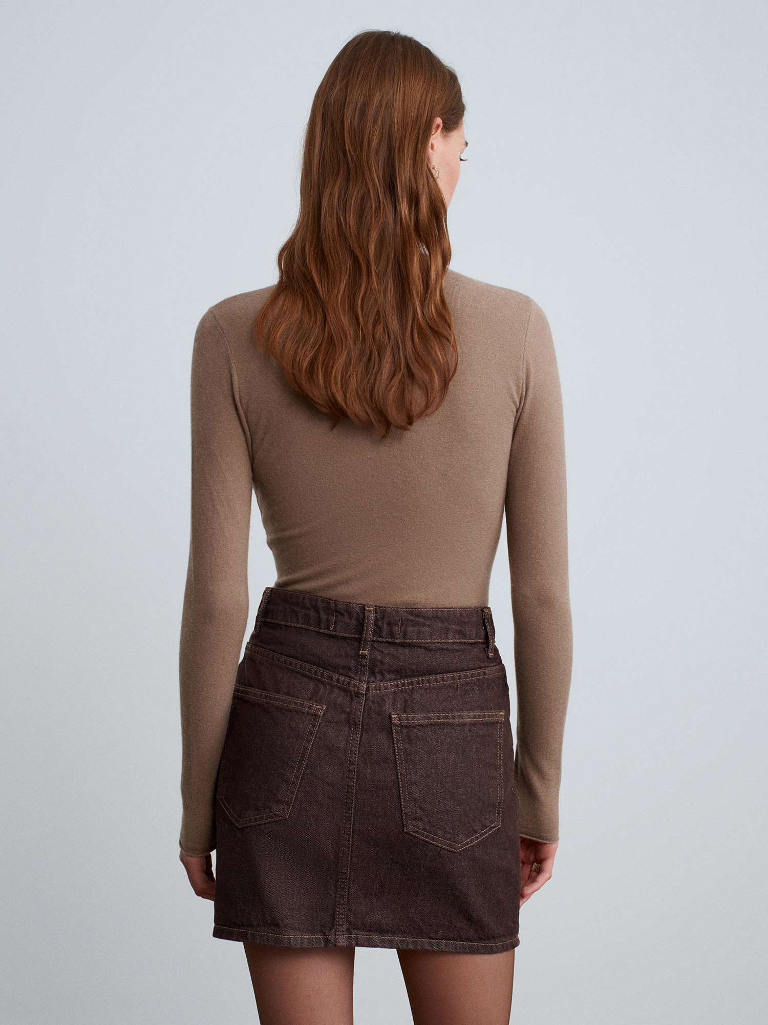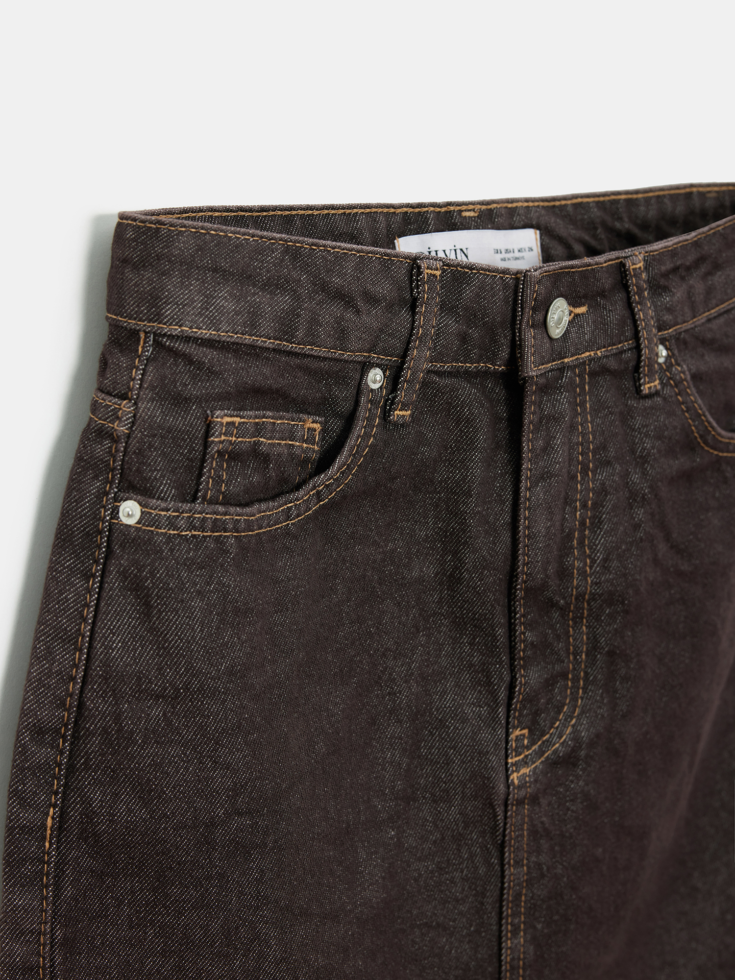 80592 %100 Pamuk Mini Kot Etek-Kahve