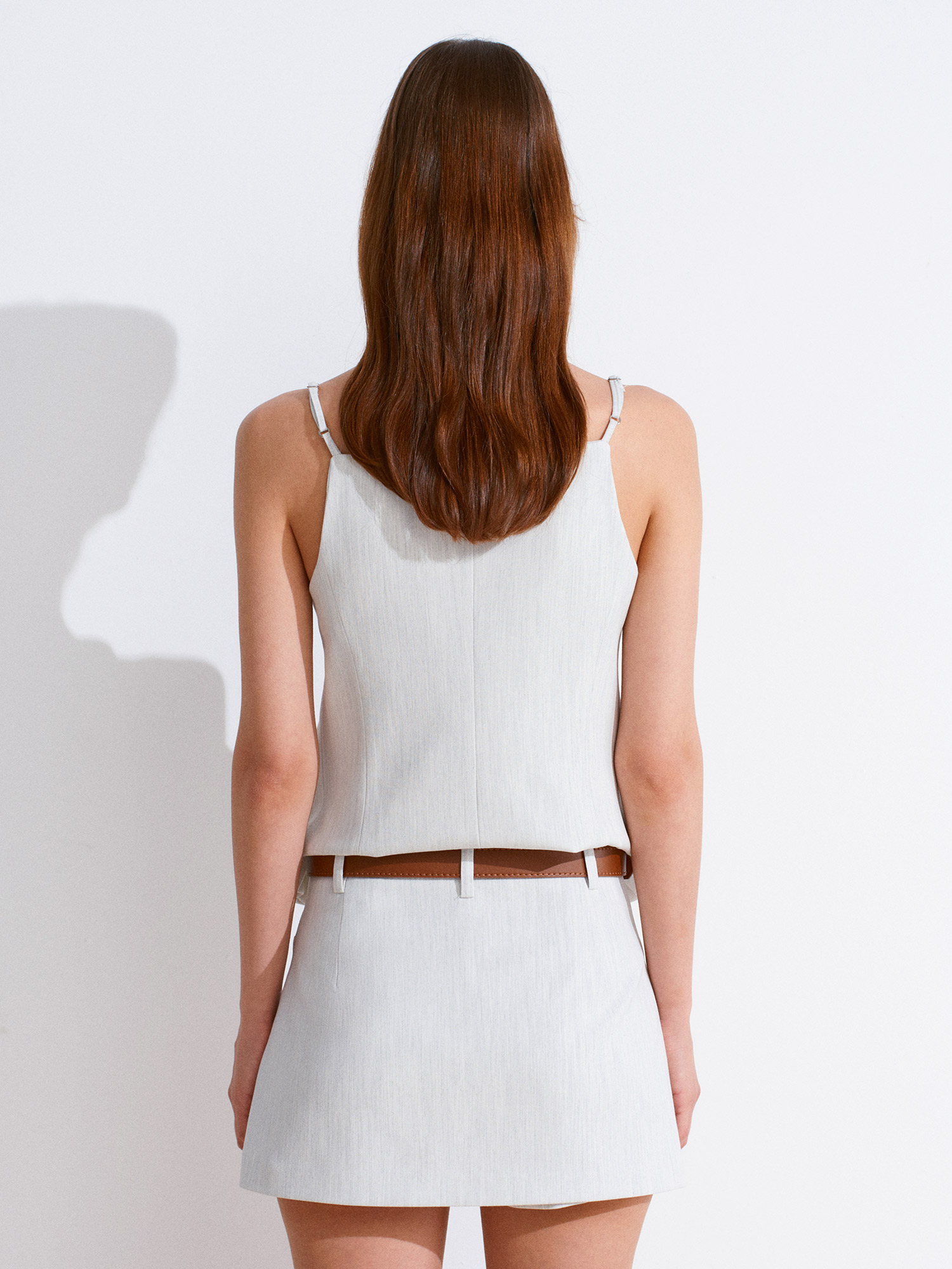 81059 Kemerli Kruvaze Şort Etek-Açık Gri