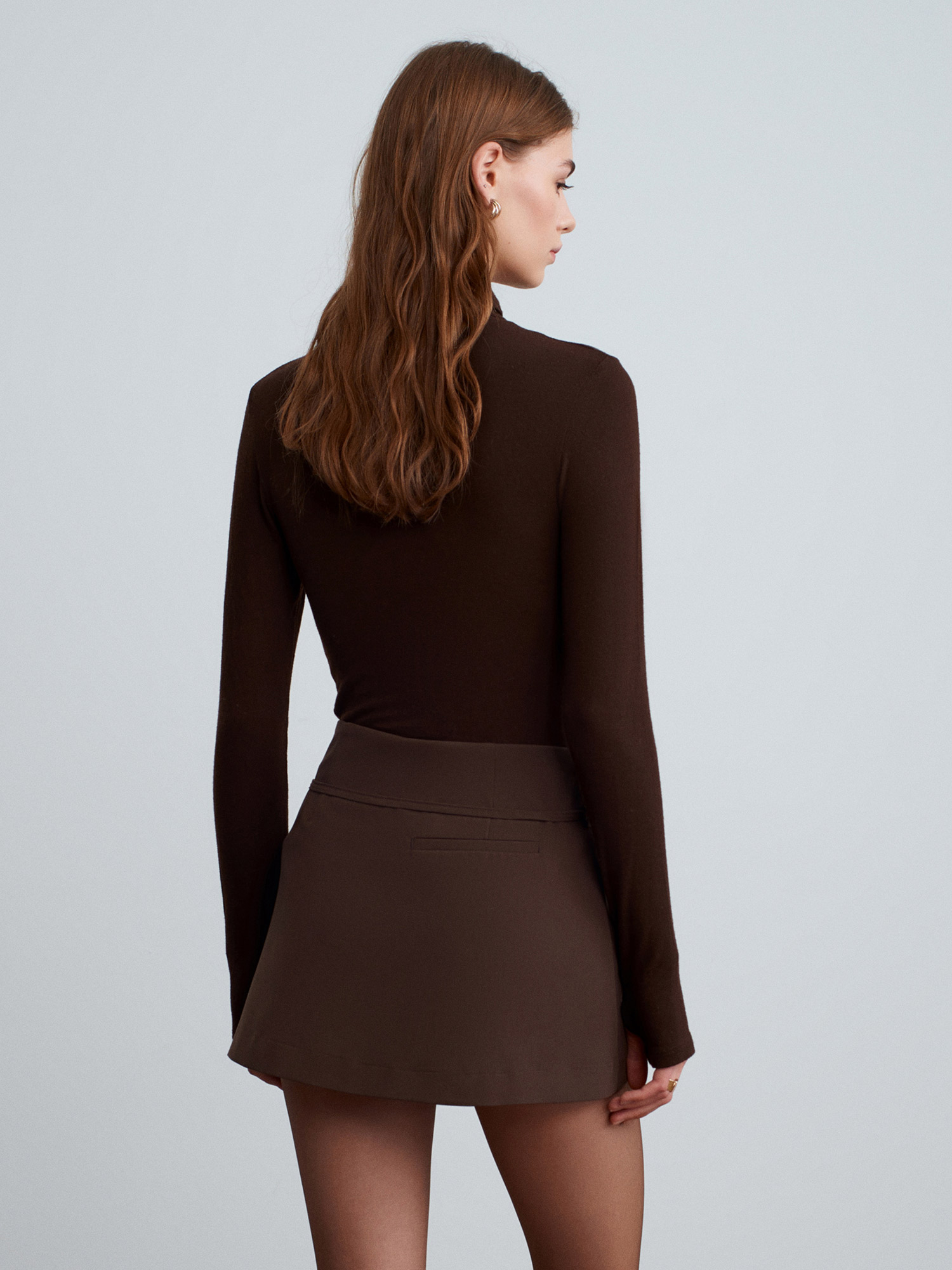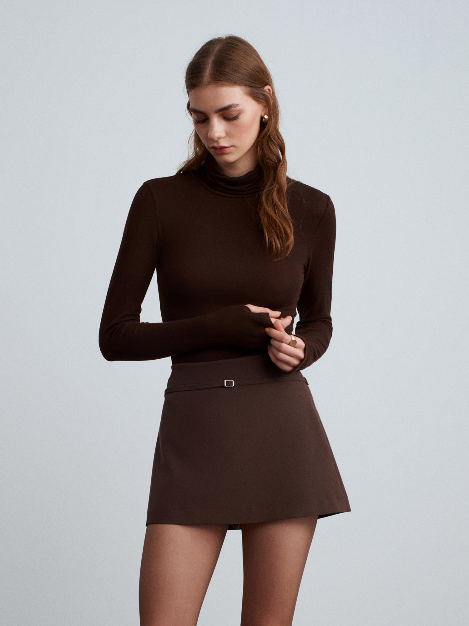 81068 Kemerli Şort Etek-Kahve