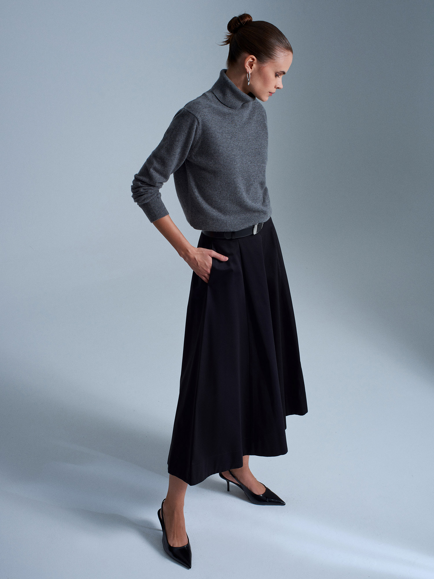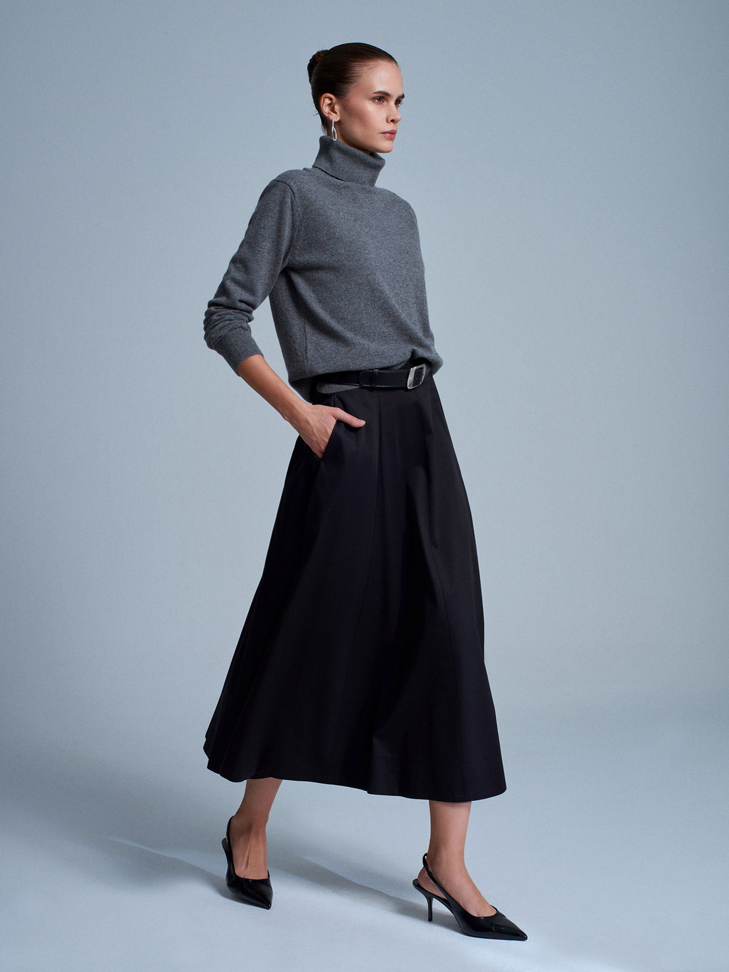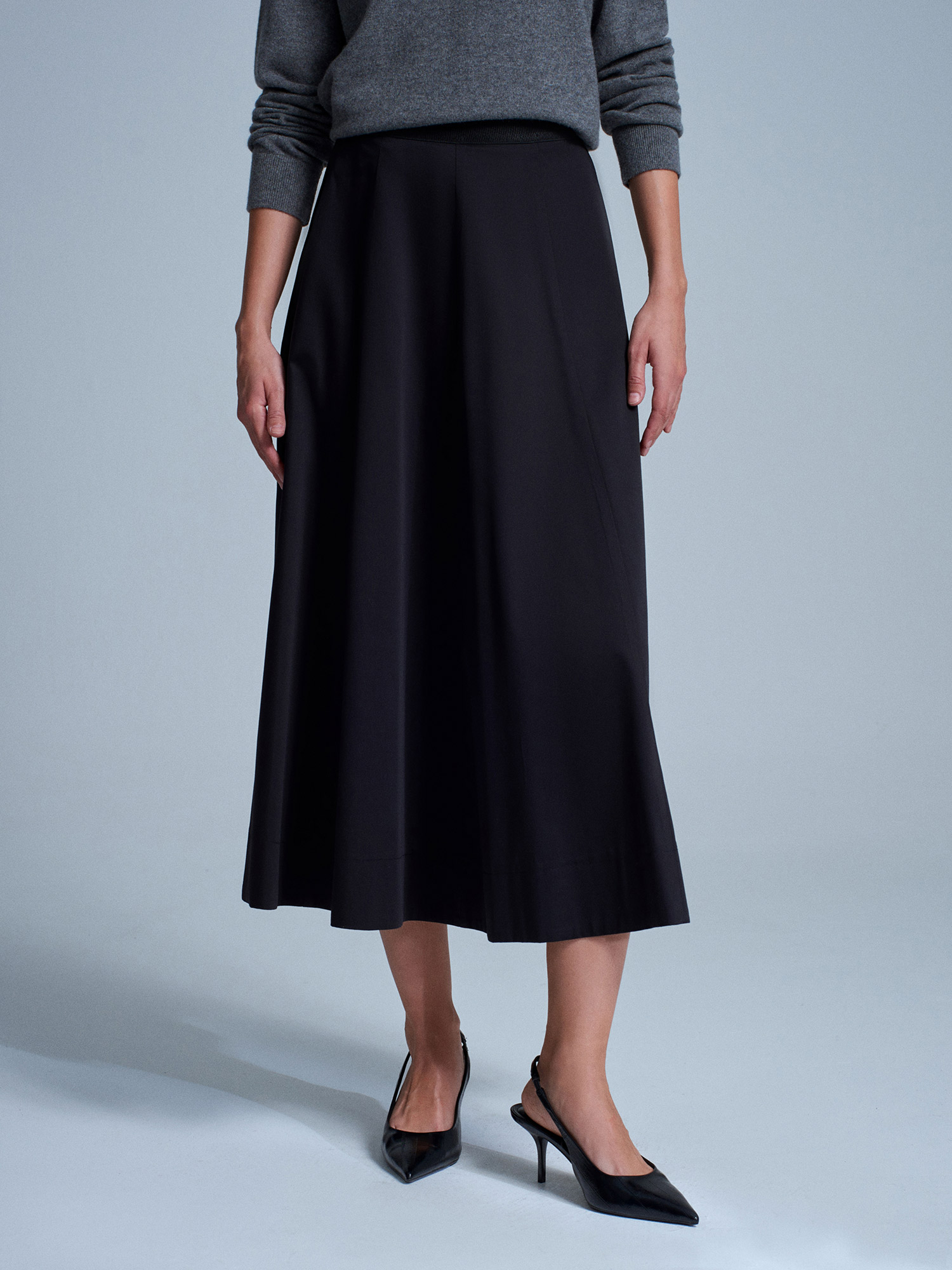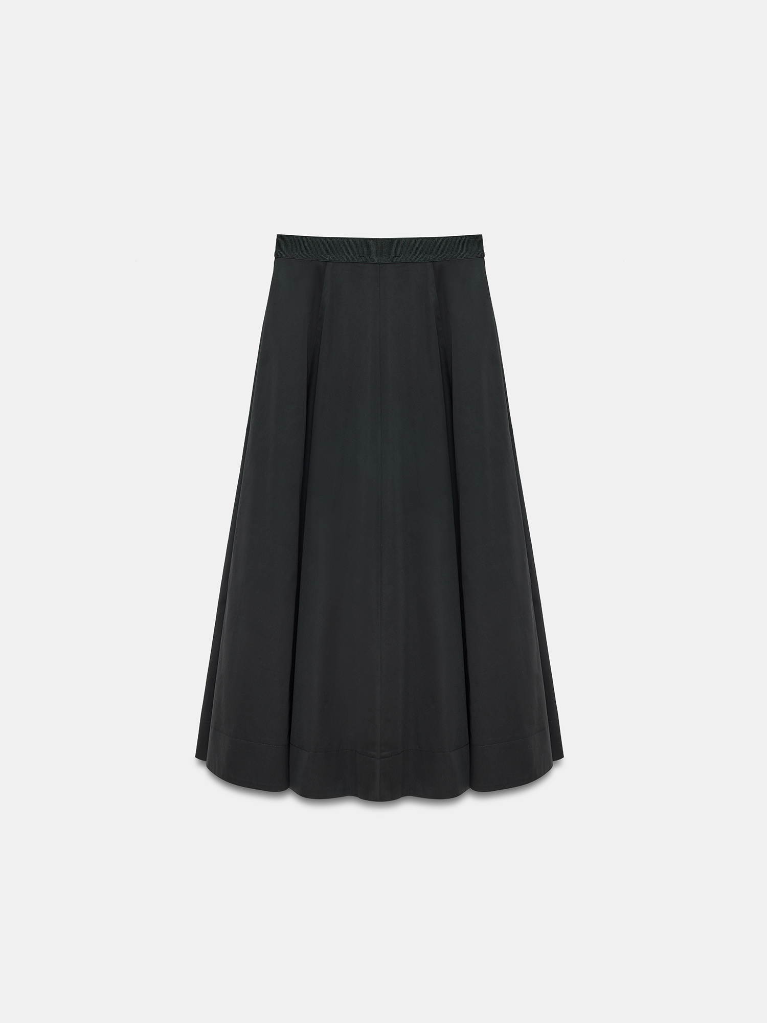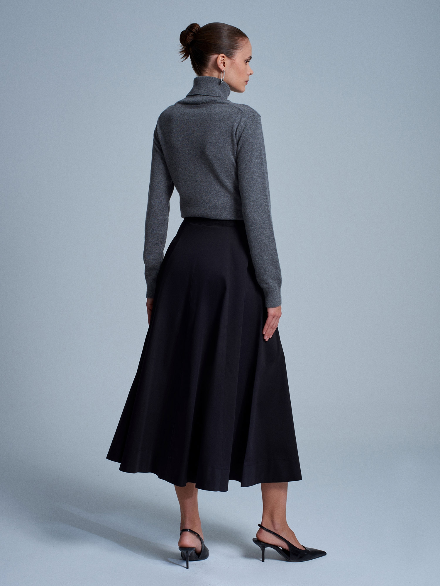 81070 %100 Pamuk Beli Lastikli Midi Etek-Siyah