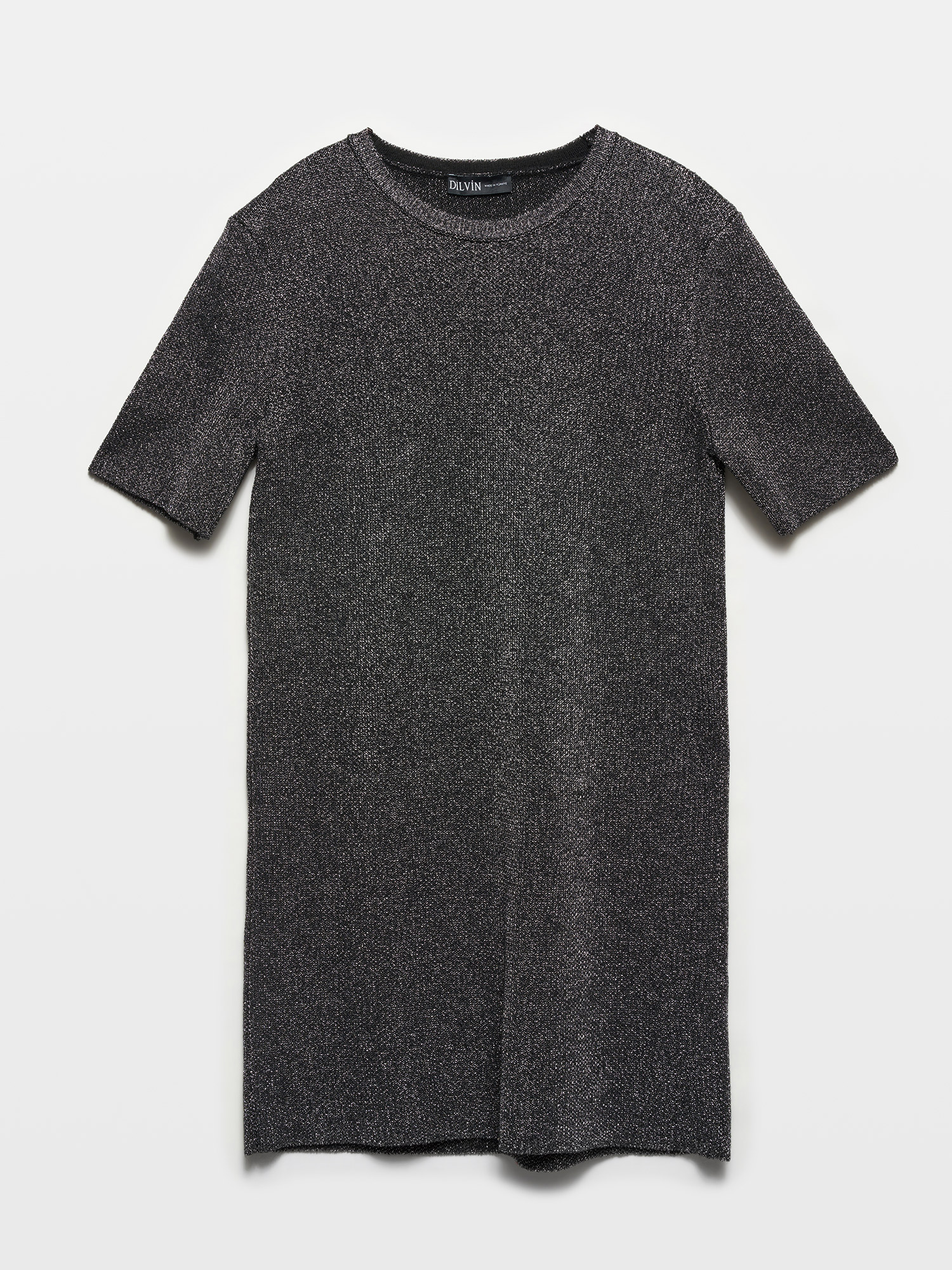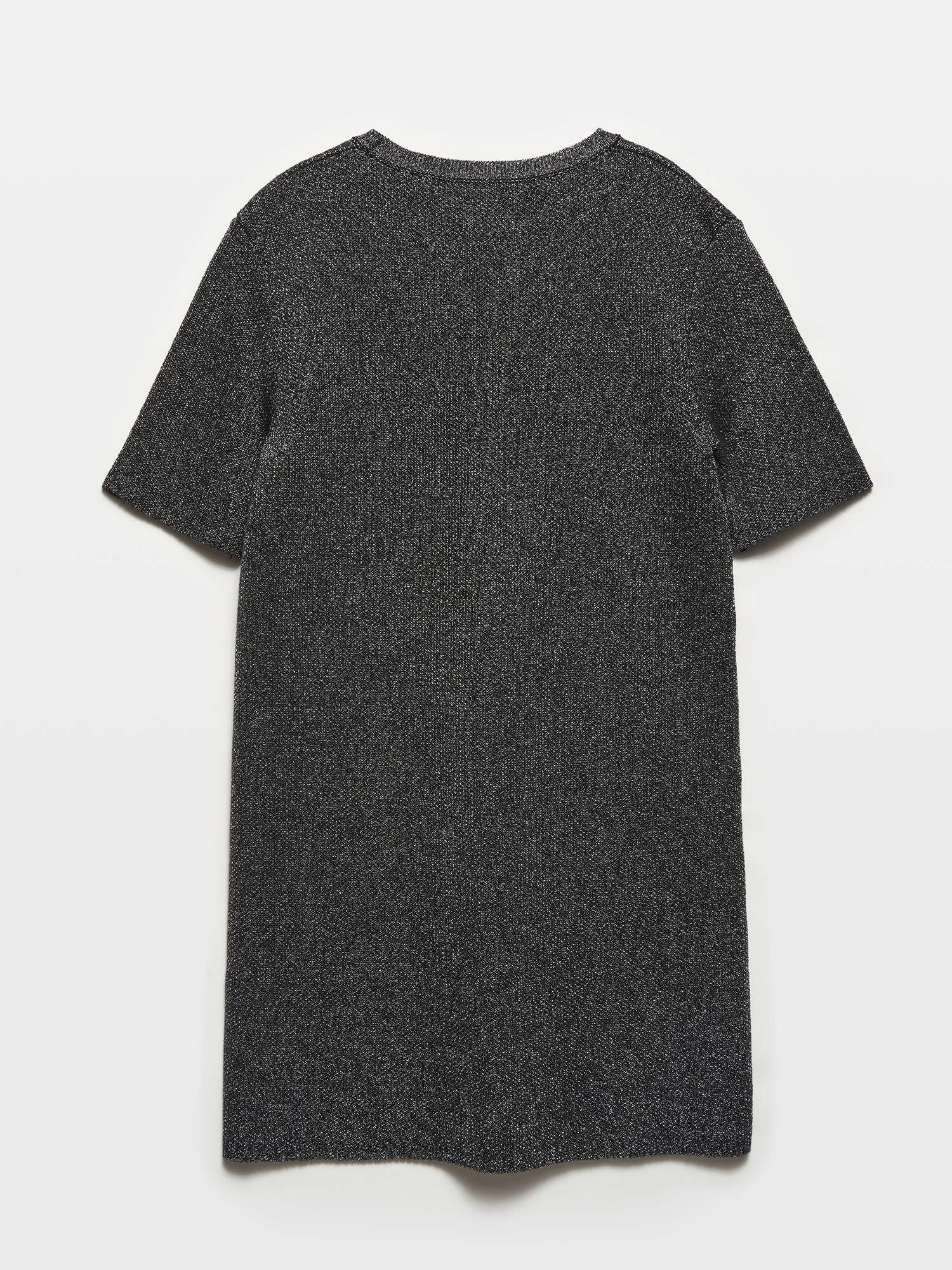 90231 Parlak Dokulu Mini Triko Elbise-S.-Gümüş