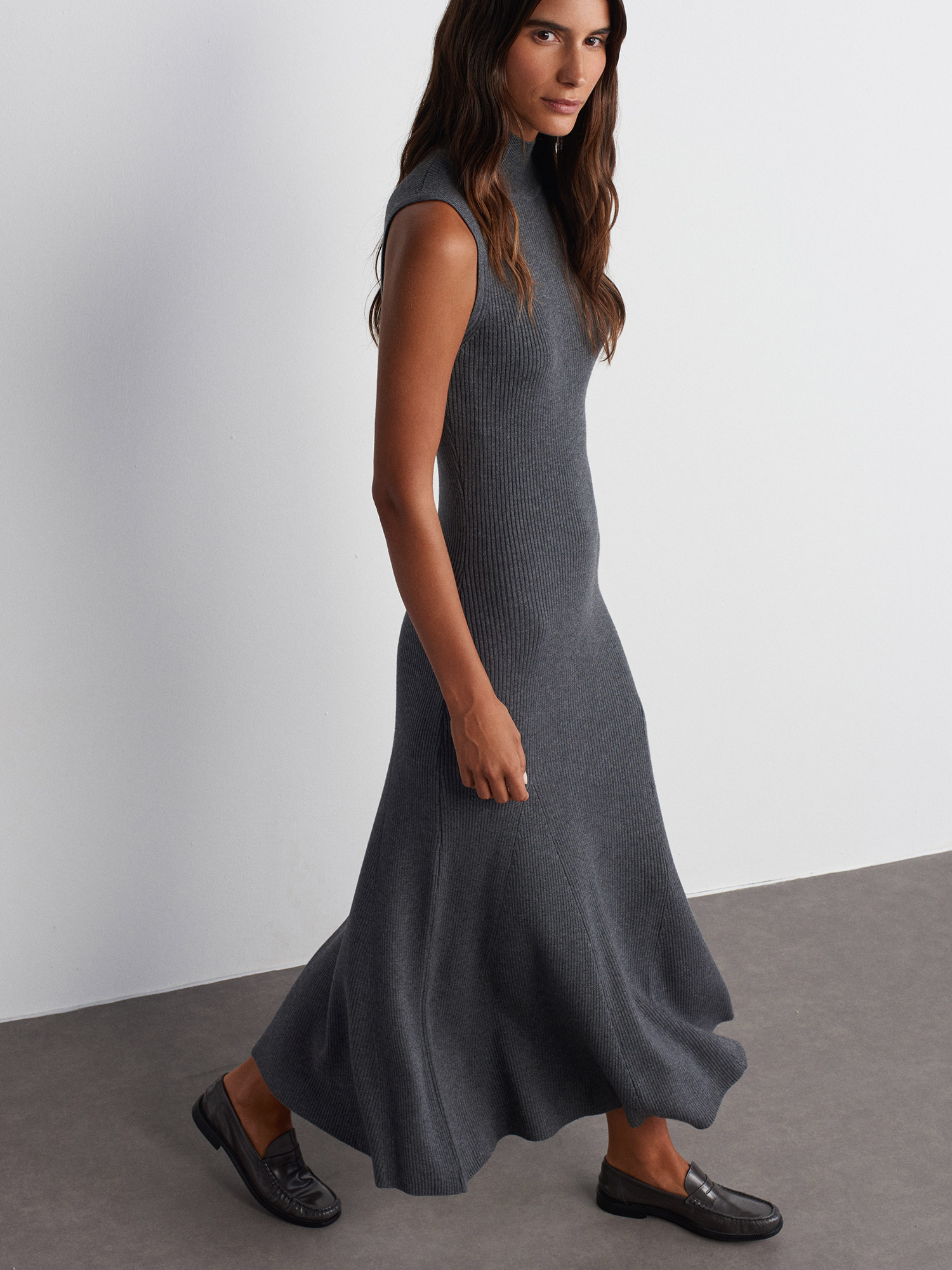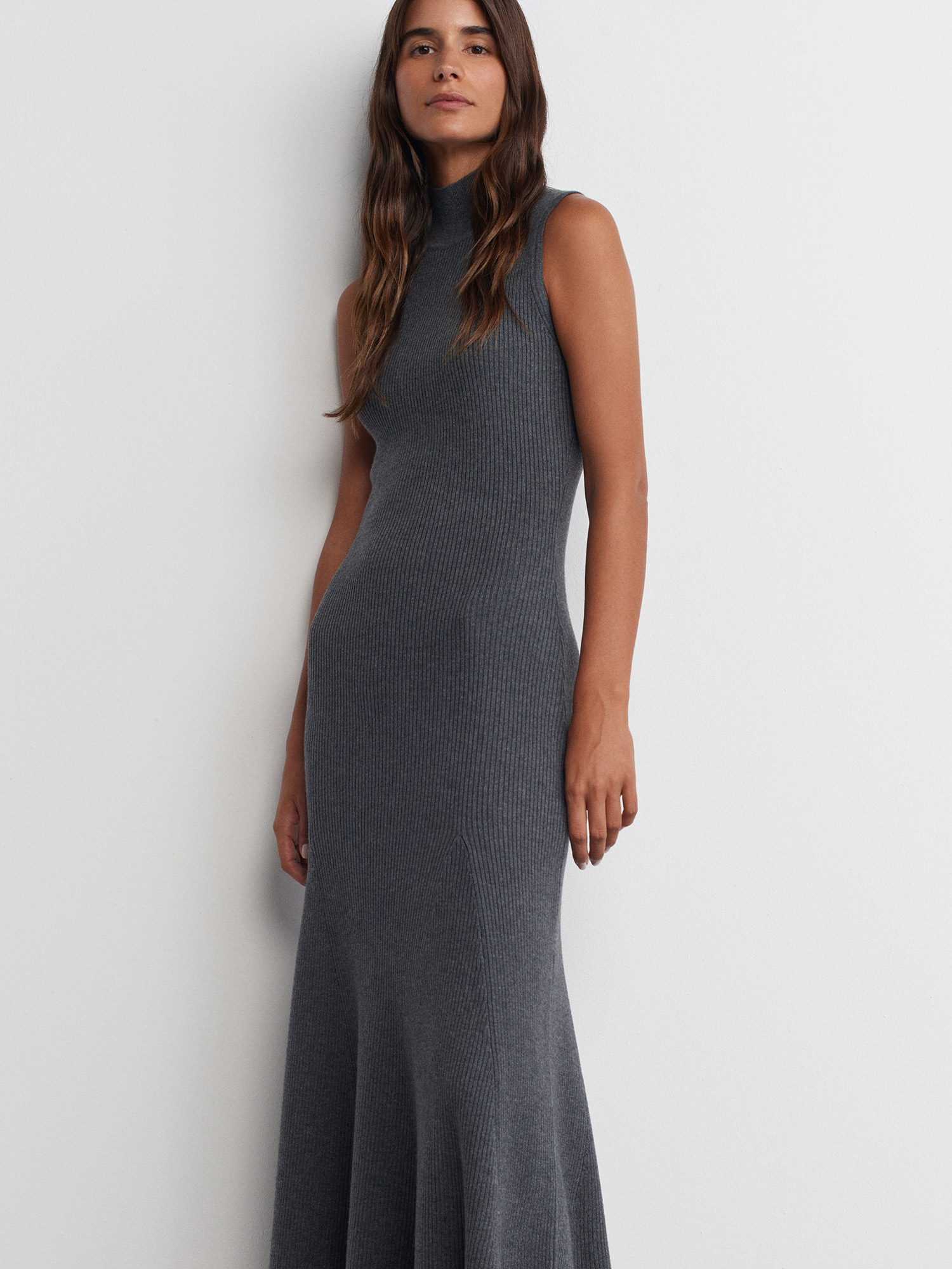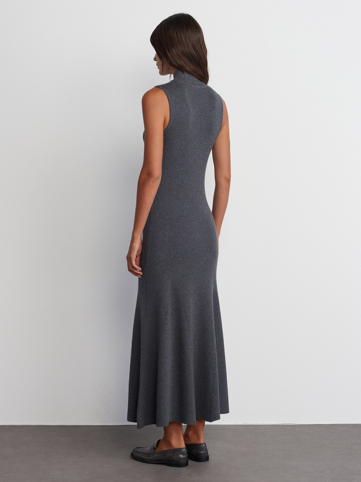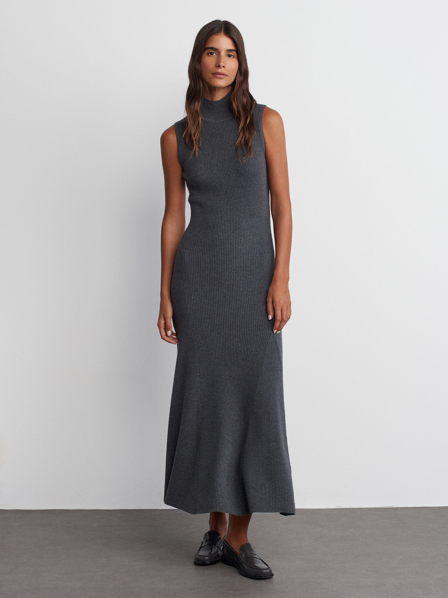 90234 Dik Yaka Fitilli Kolsuz Triko Elbise-Füme M.