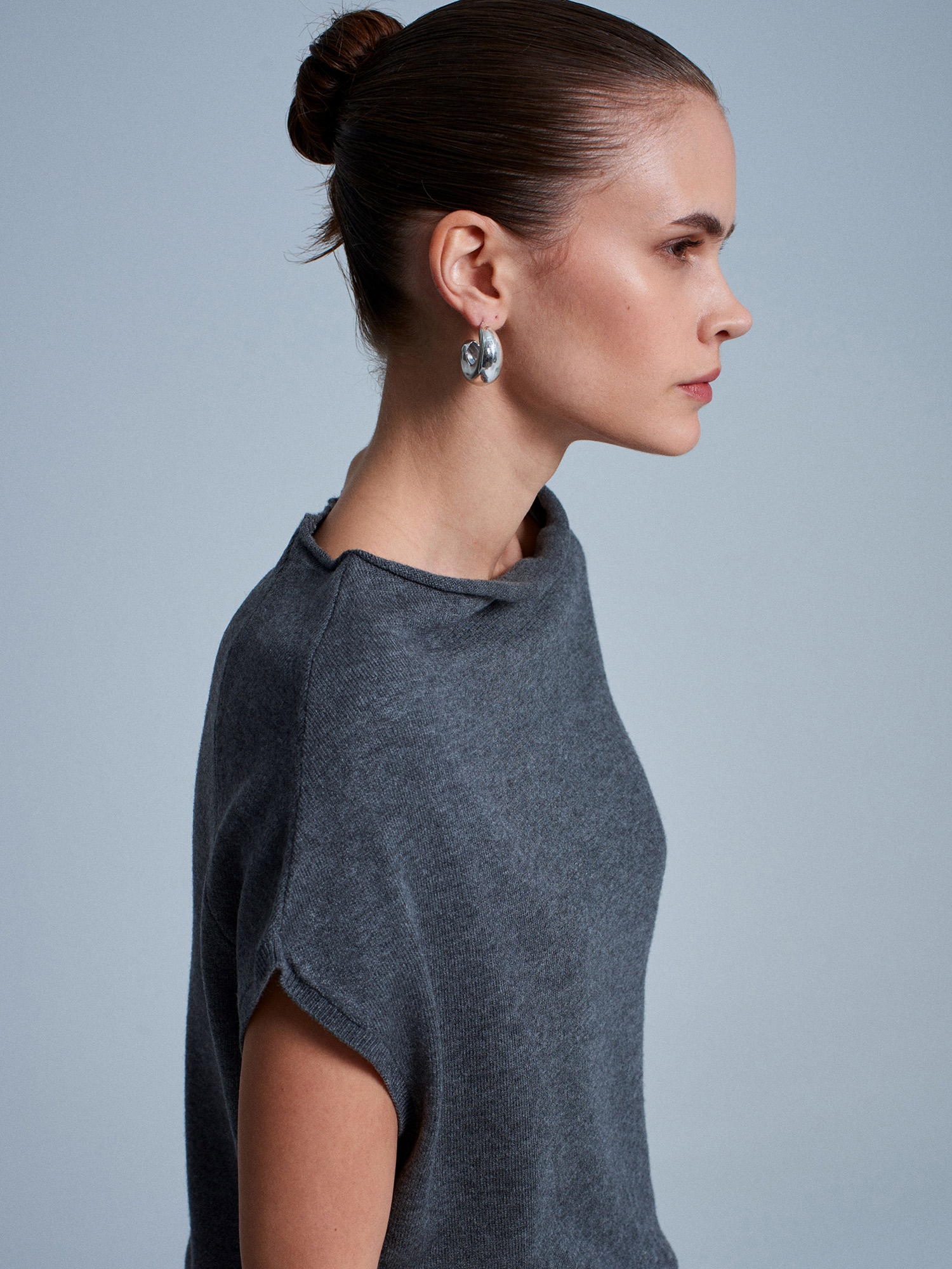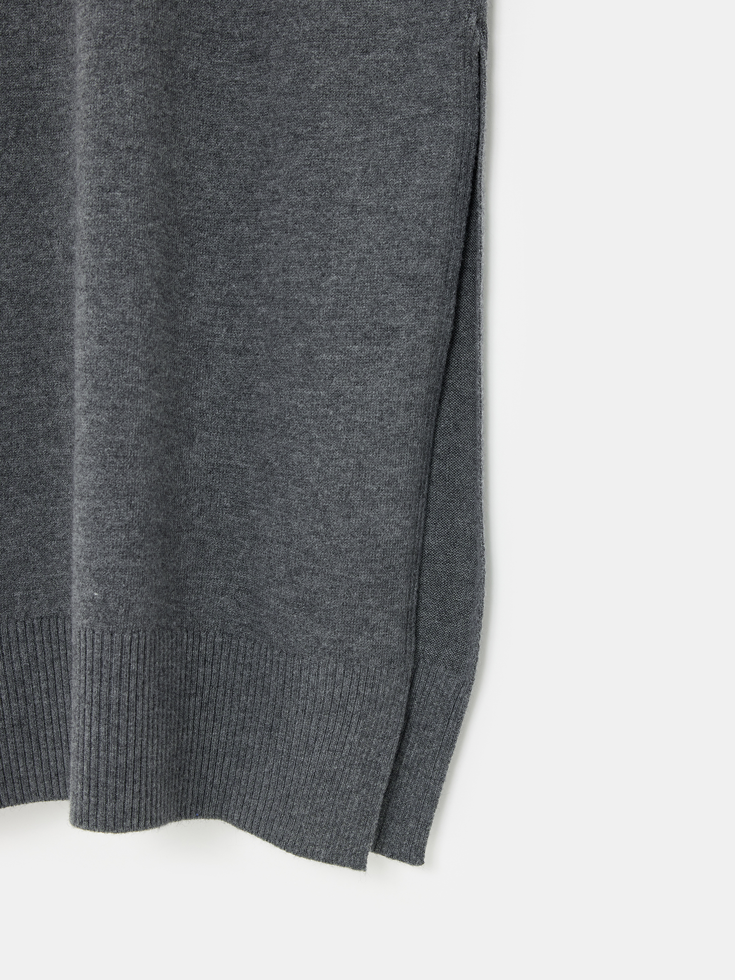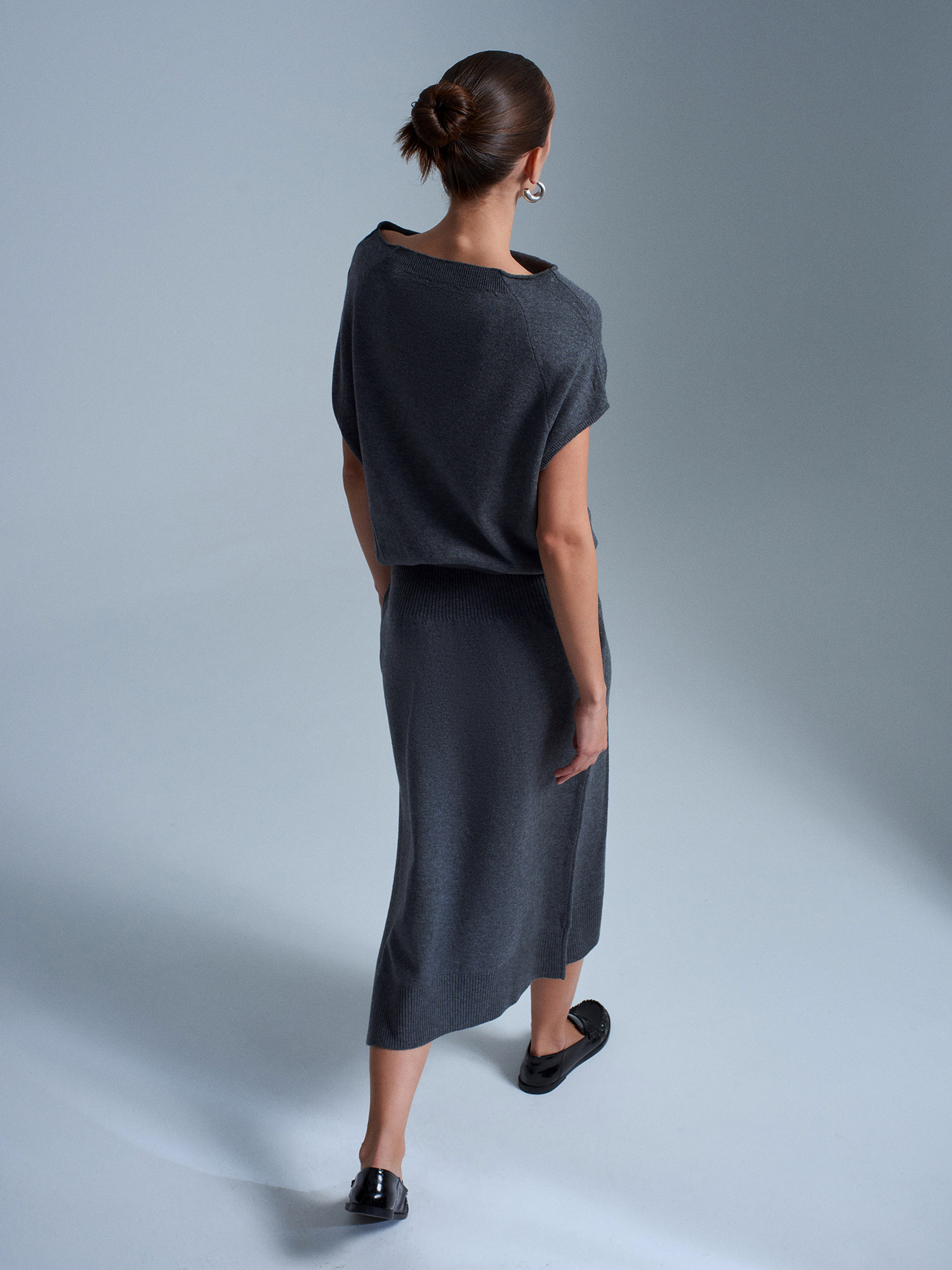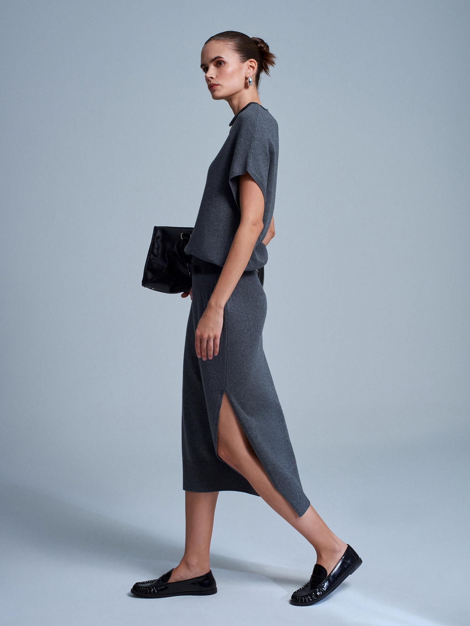 90256 Yün Karışımlı Kemerli Triko Elbise-Füme M.