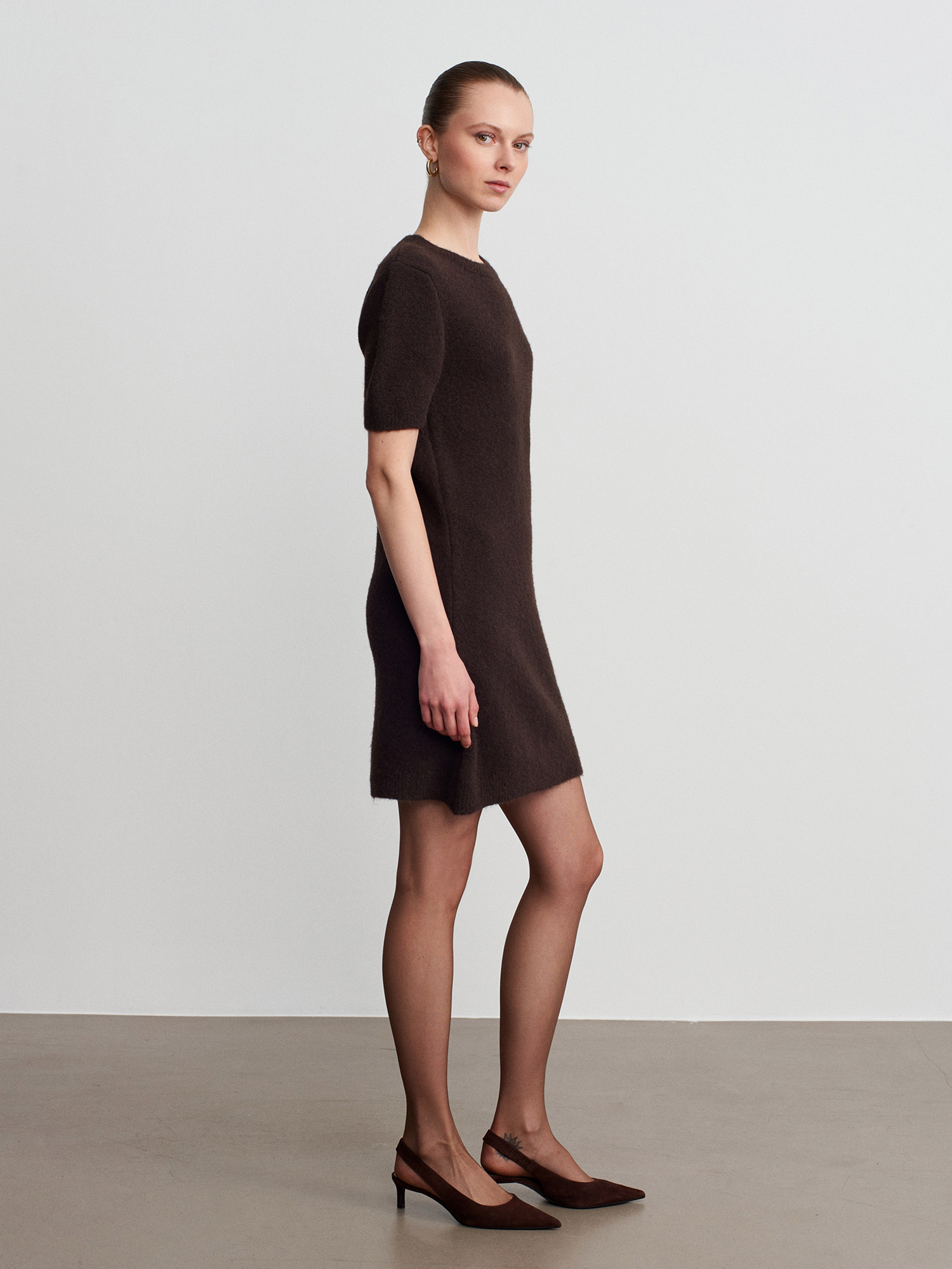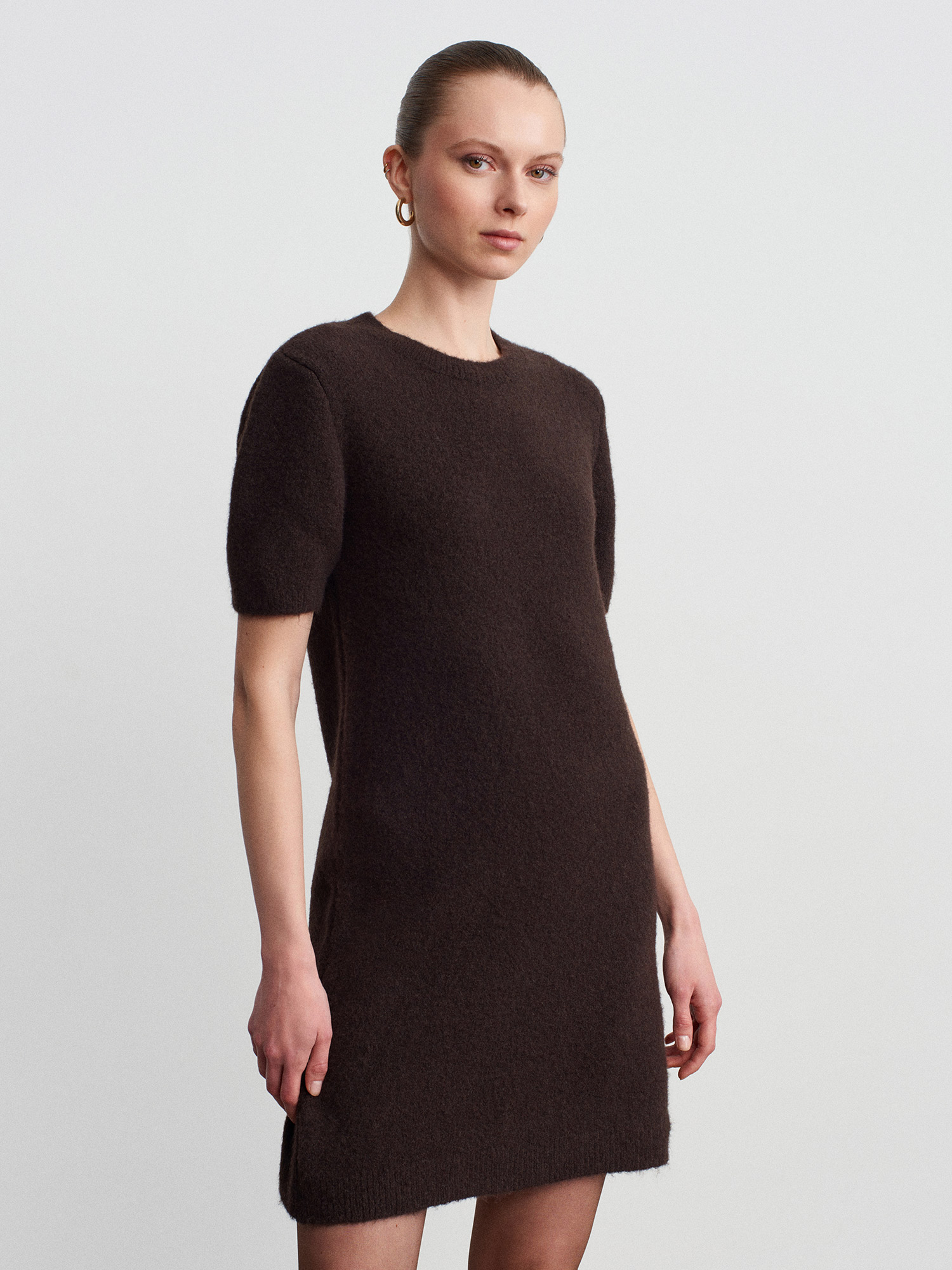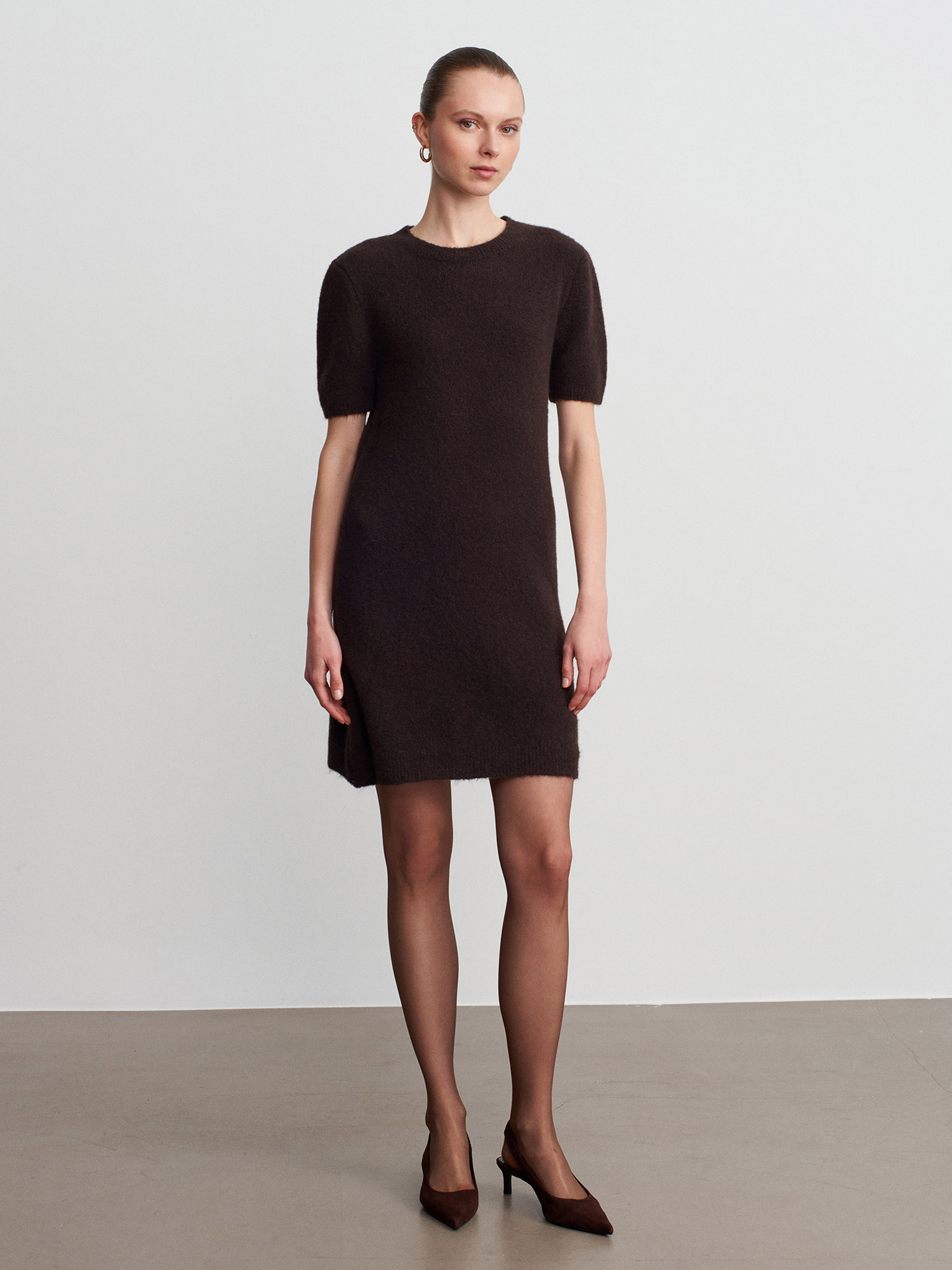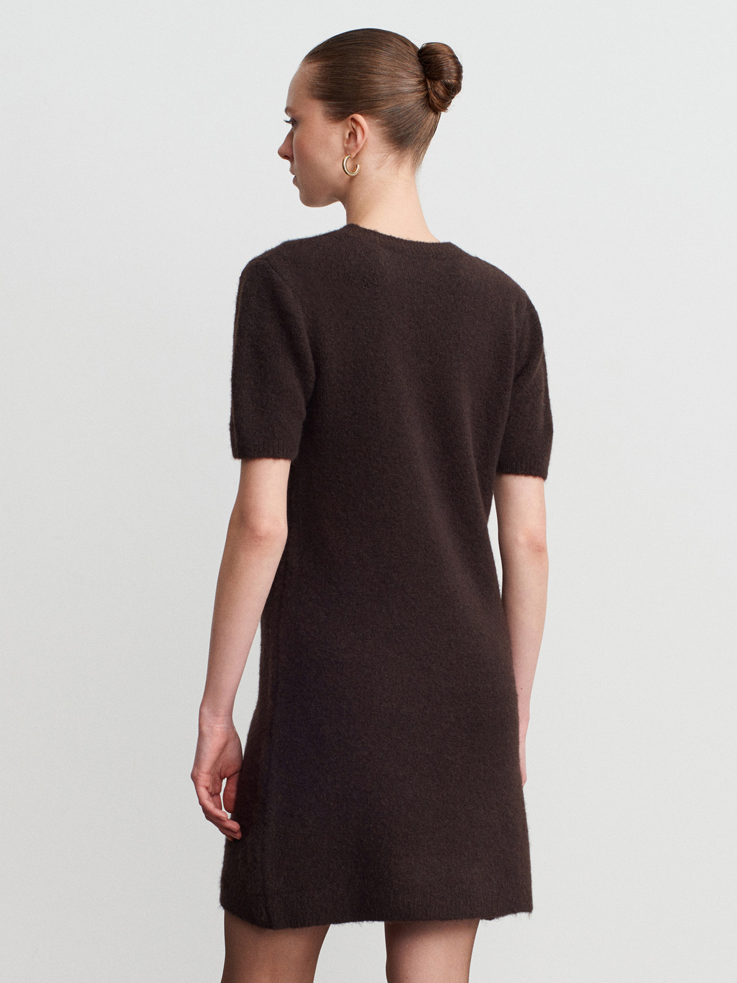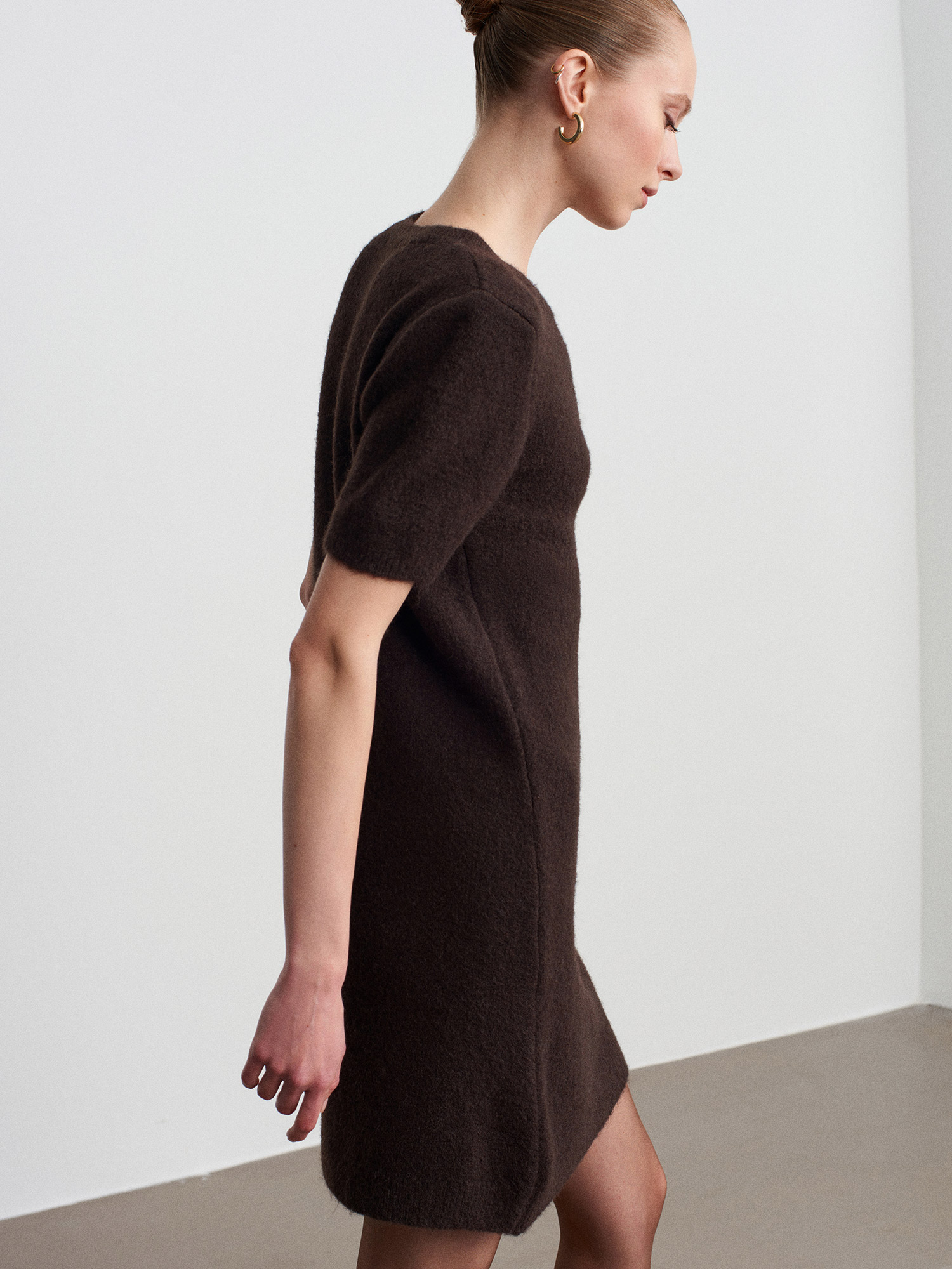 90257 Bisiklet Yaka Yün Karışımlı Triko Elbise-Koyu Kahve