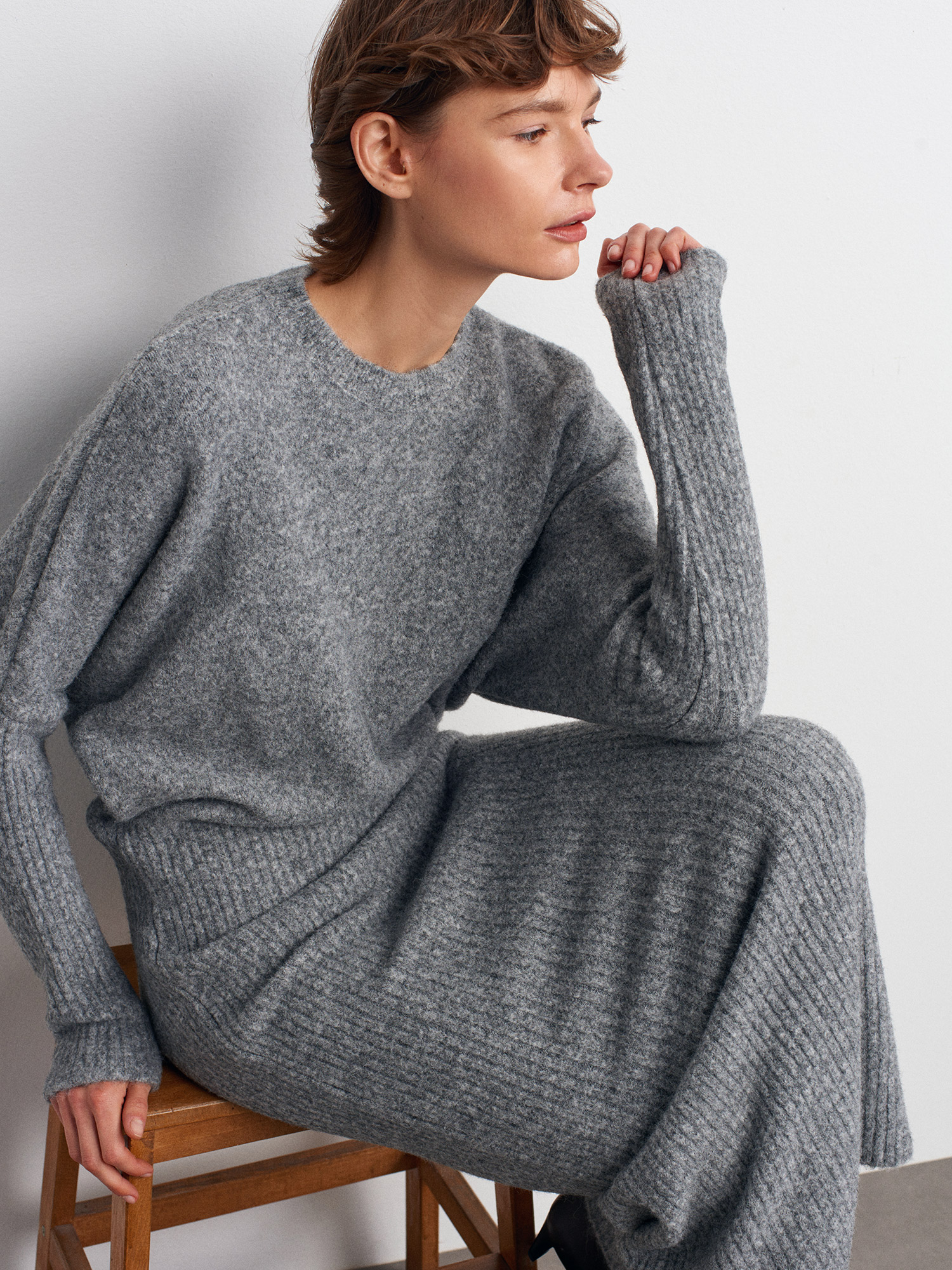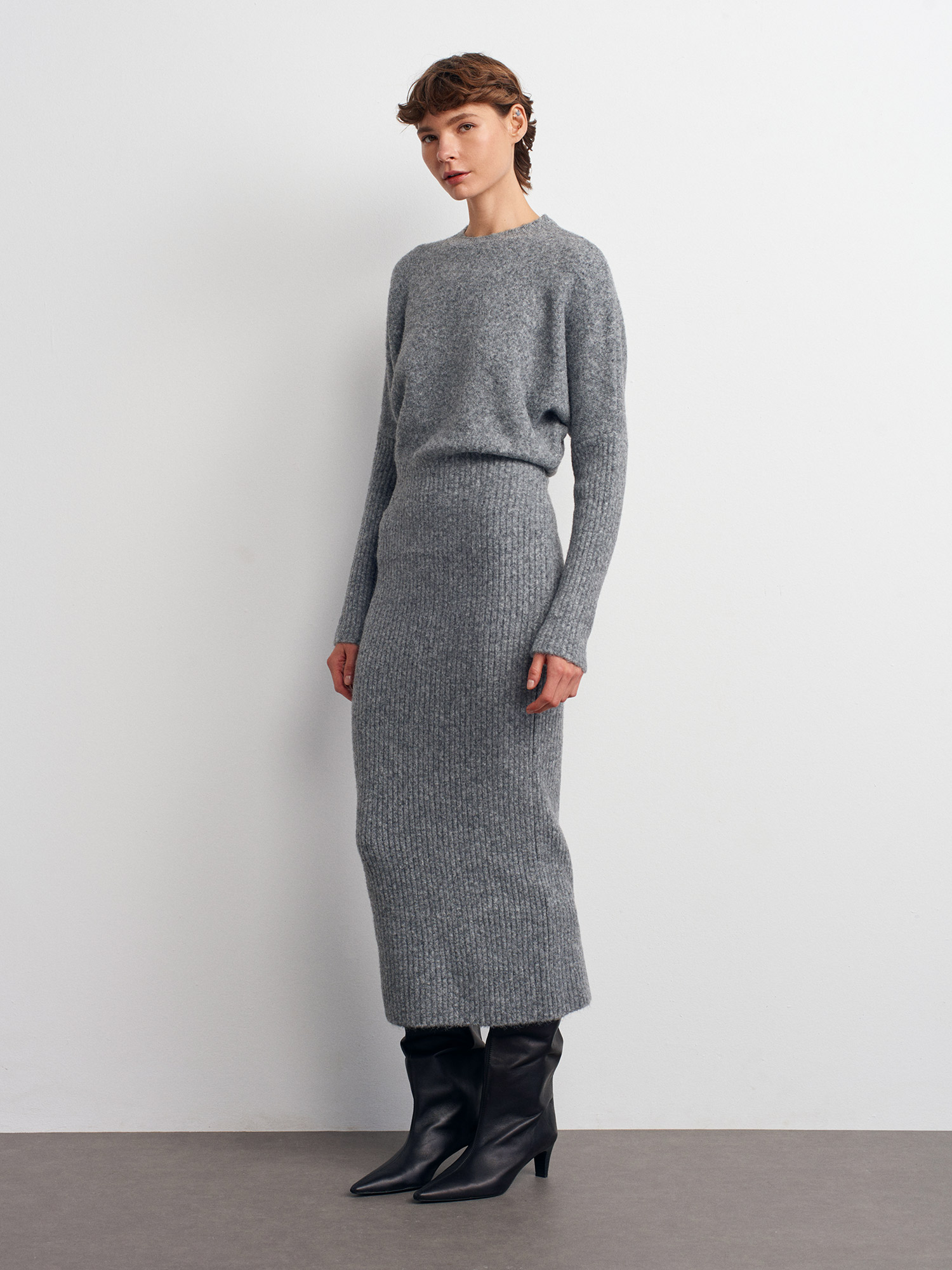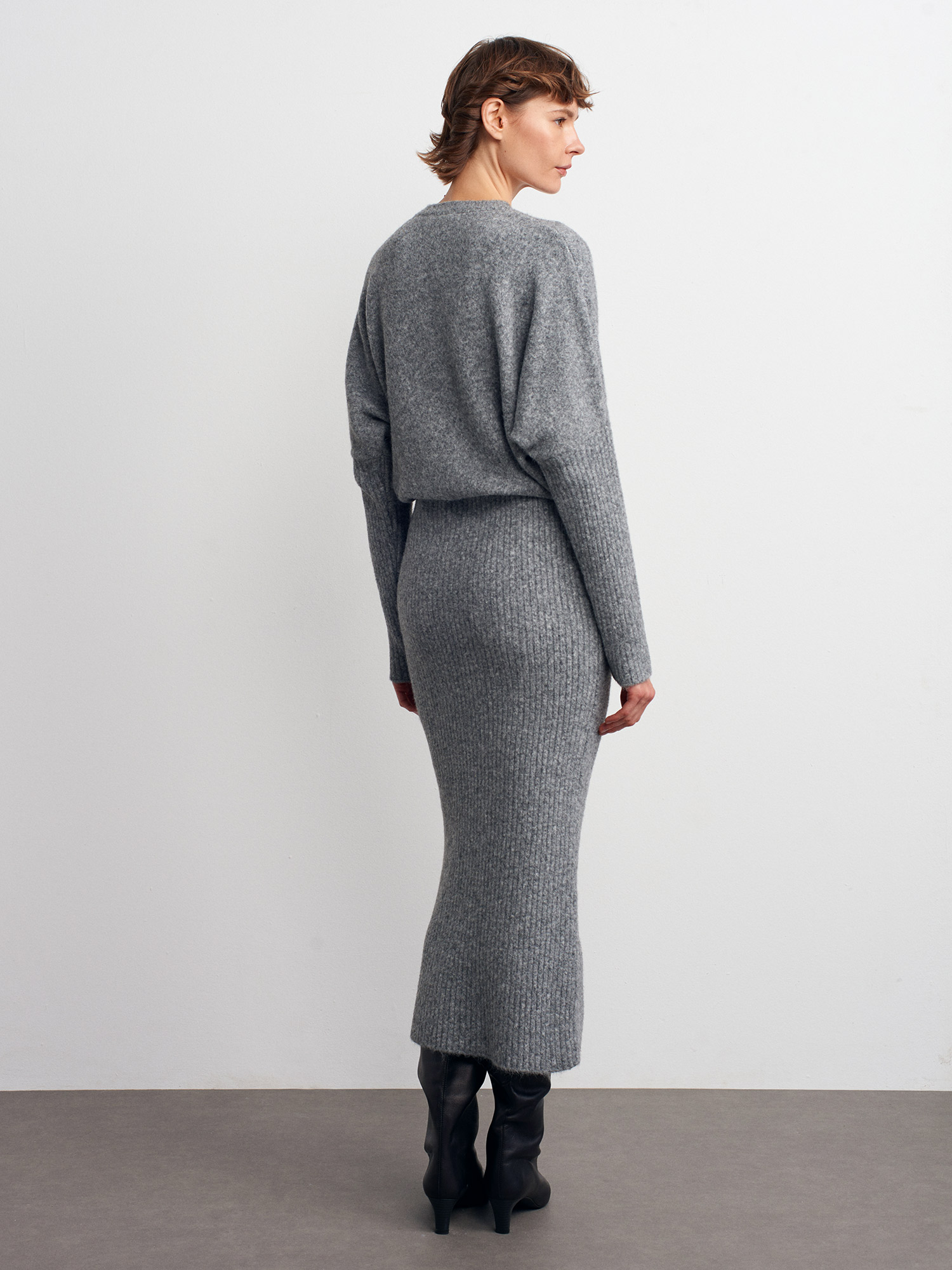 90260 Bisiklet Yaka Yumuşak Dokulu Triko Elbise-Füme M.