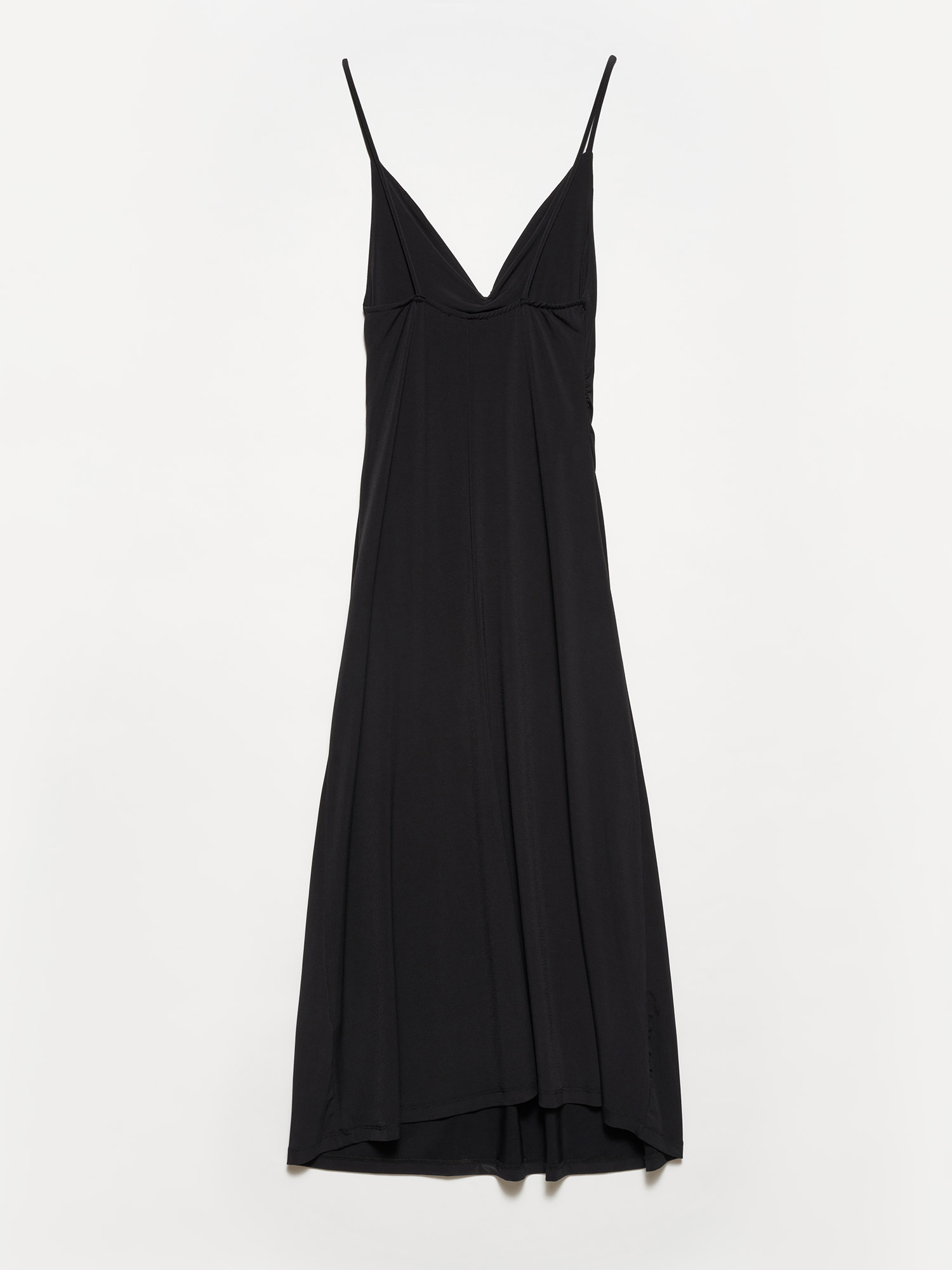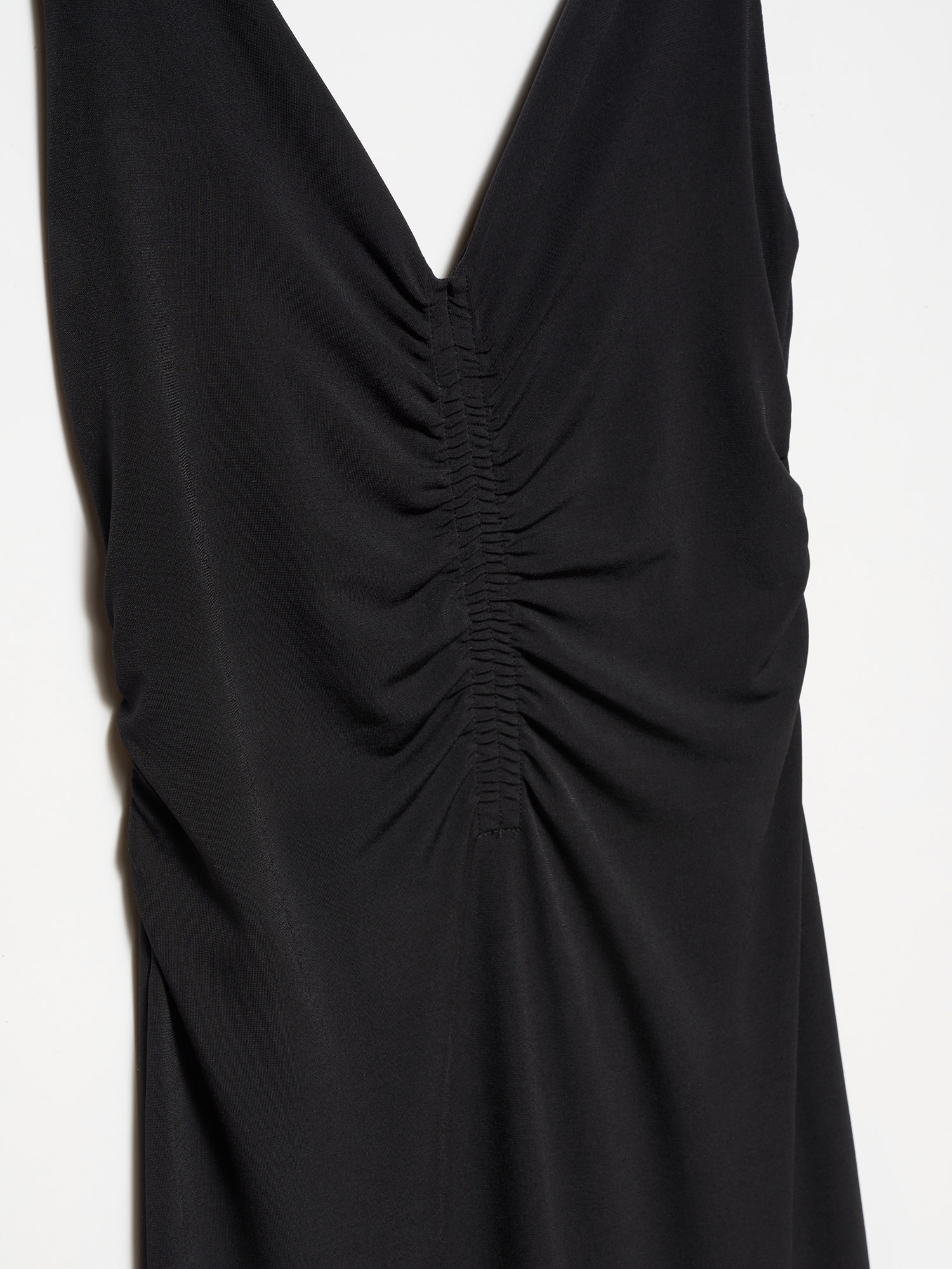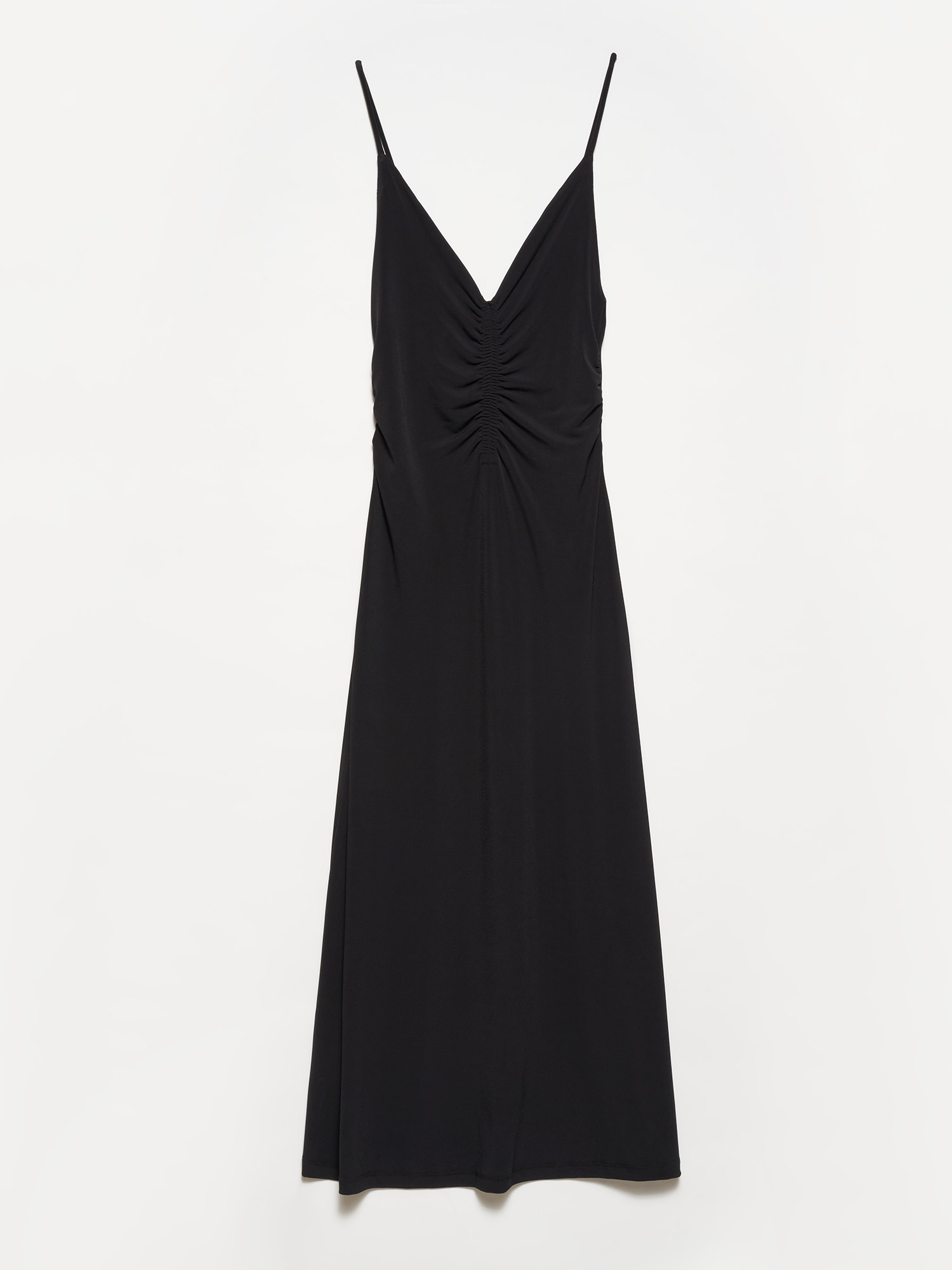 90467 Büzgülü Midi Boy Elbise-Siyah