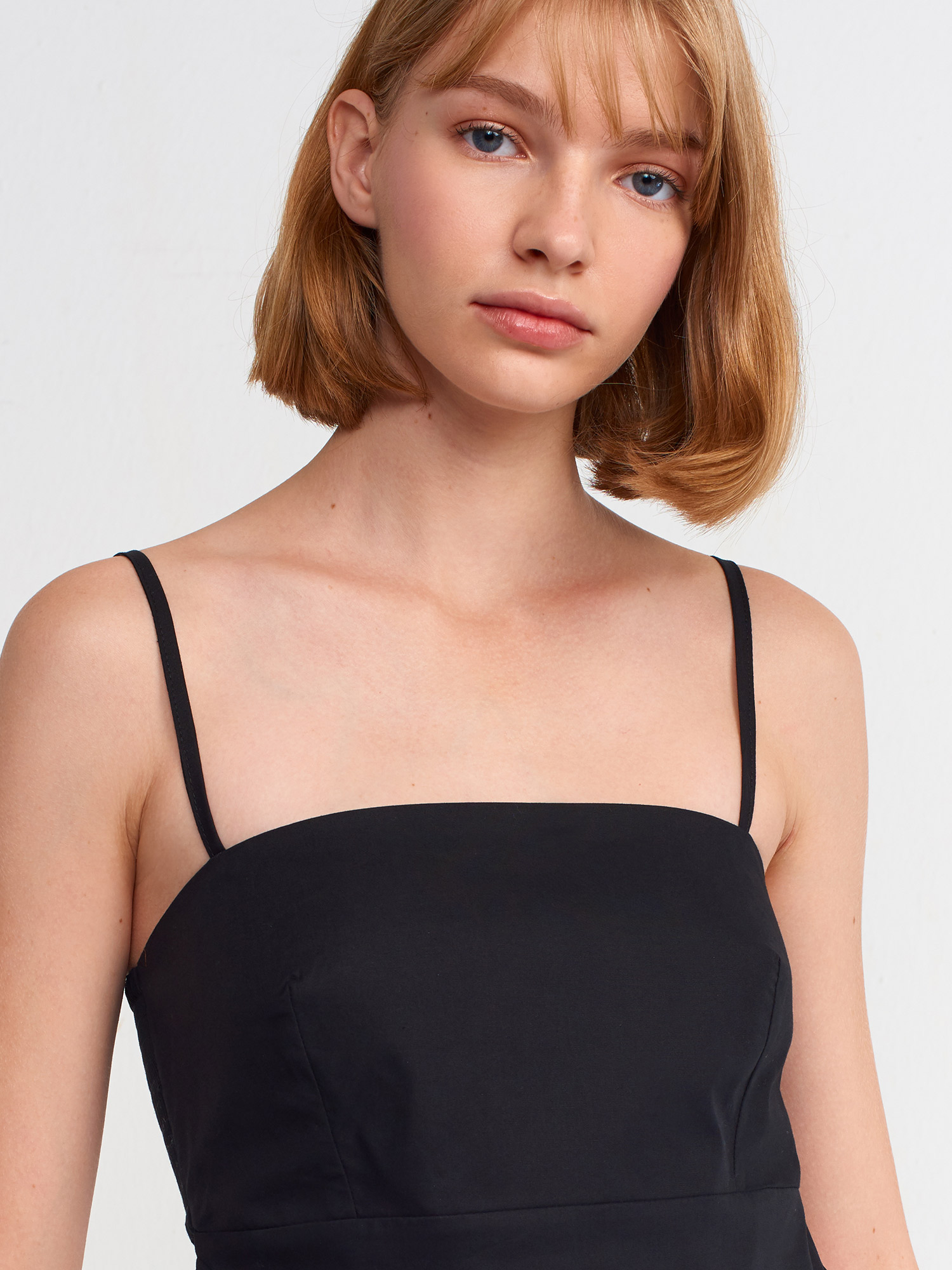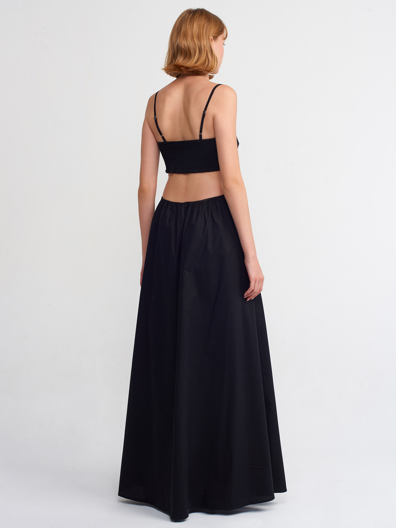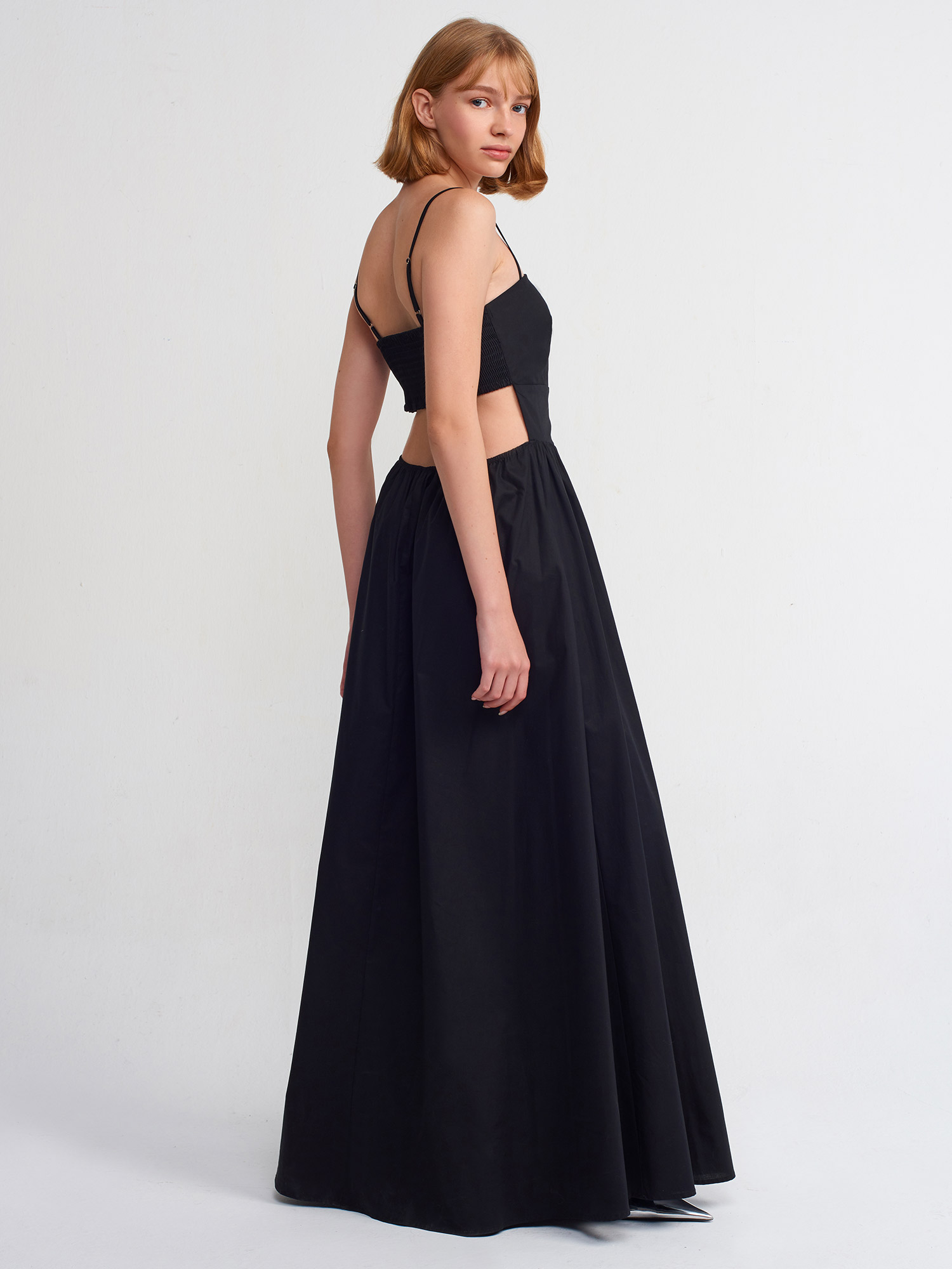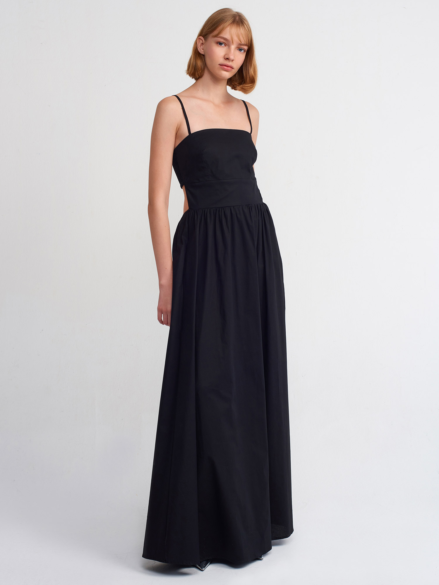 90490 Sırt Detaylı Askılı Uzun Elbise-Siyah