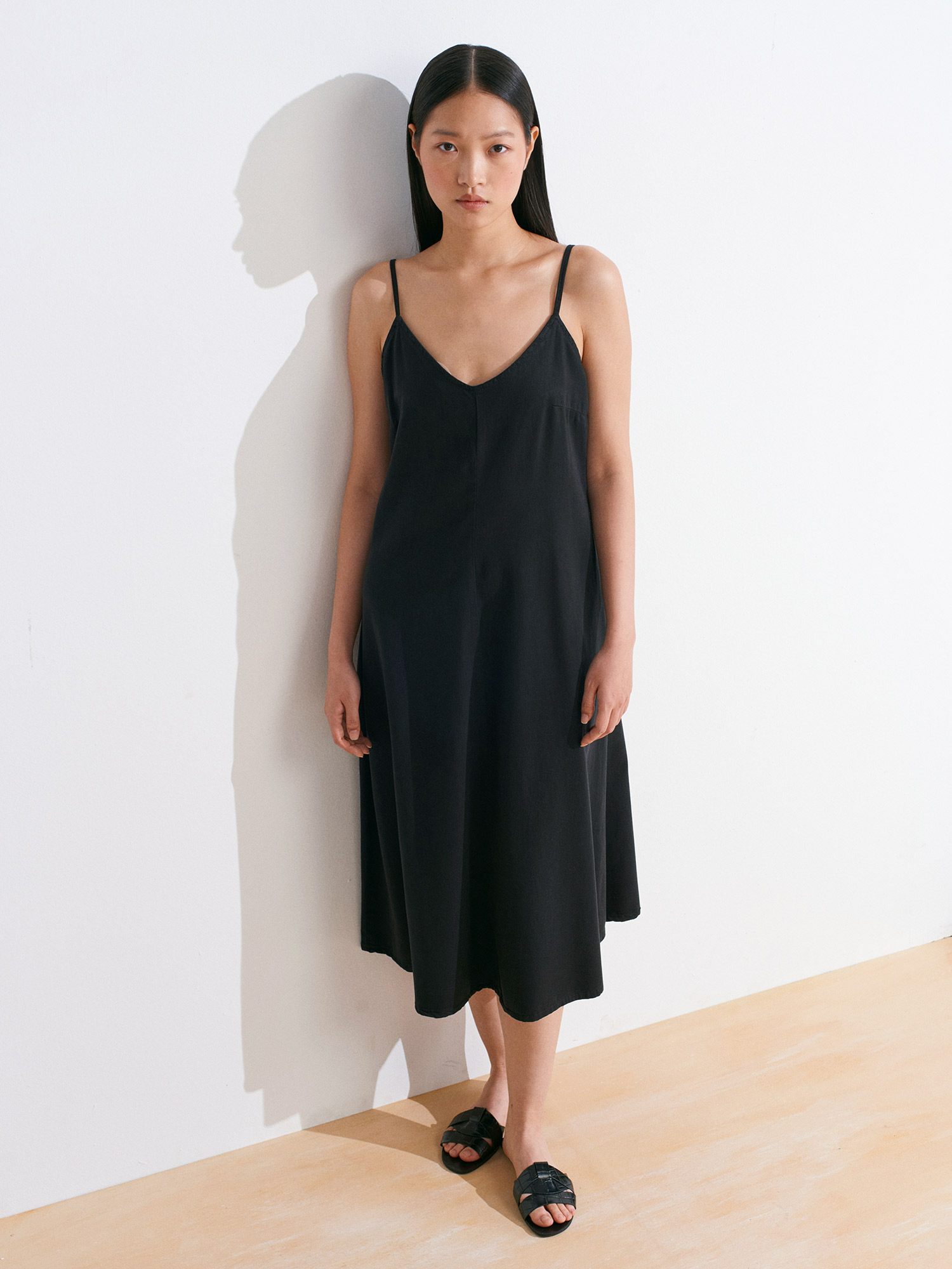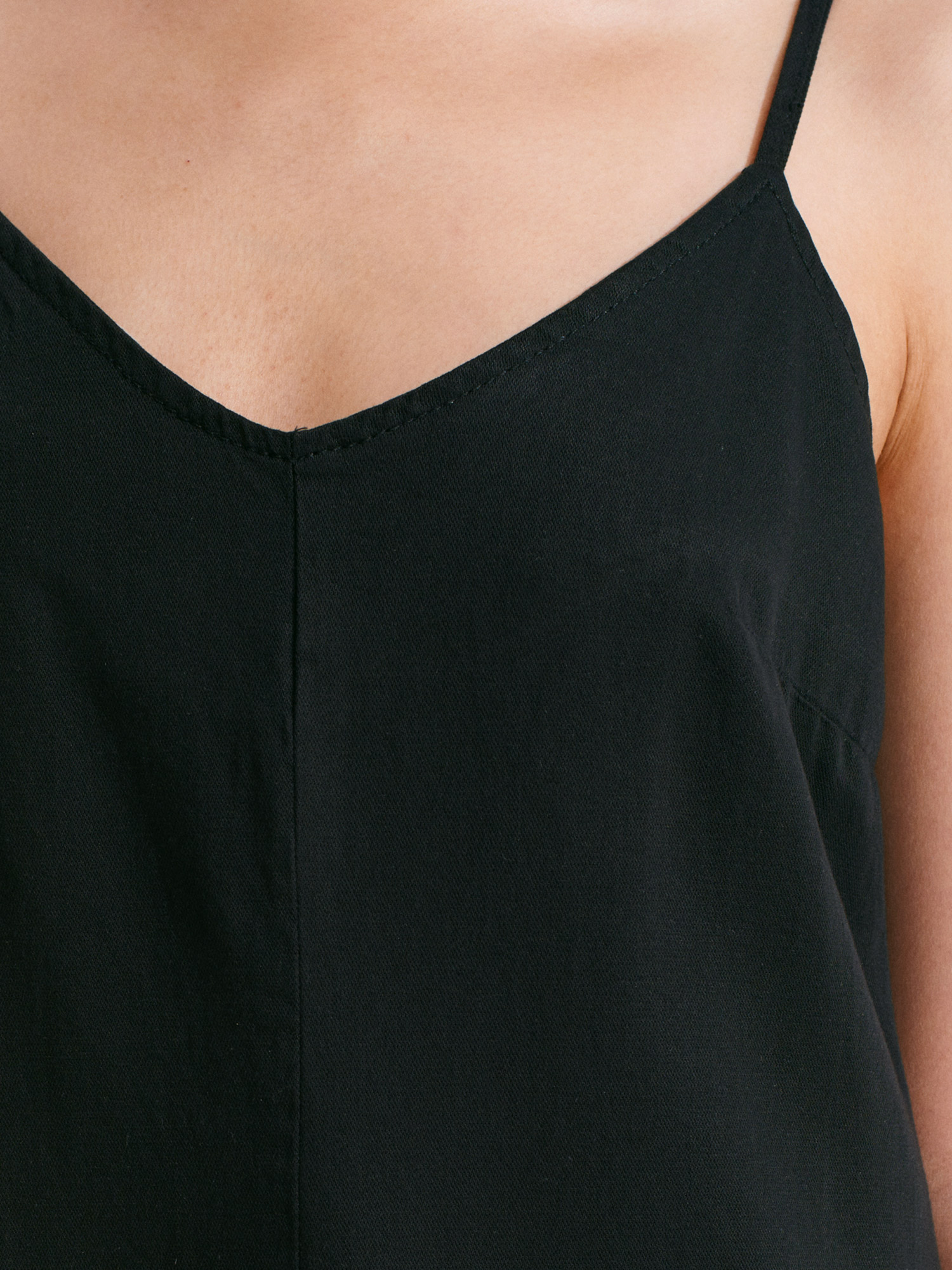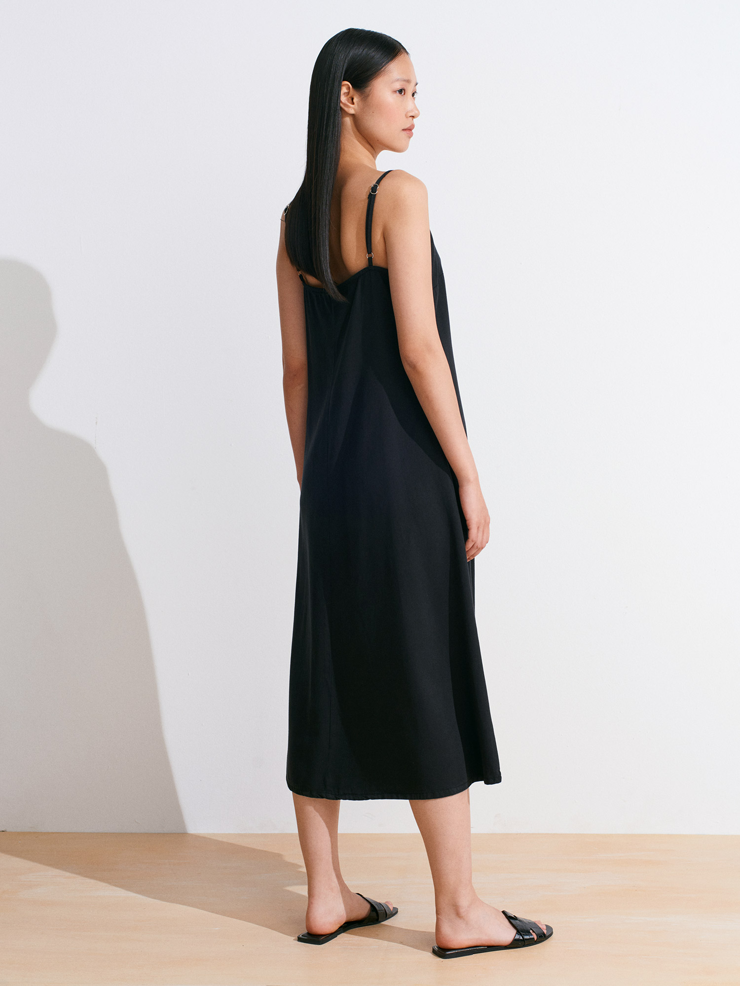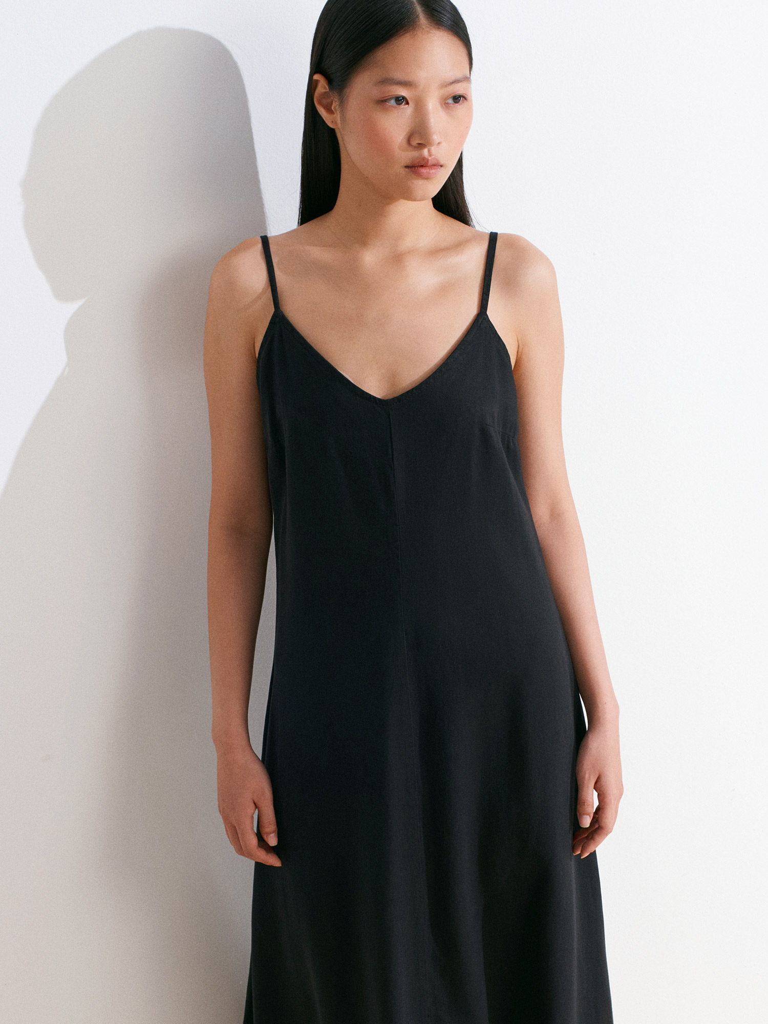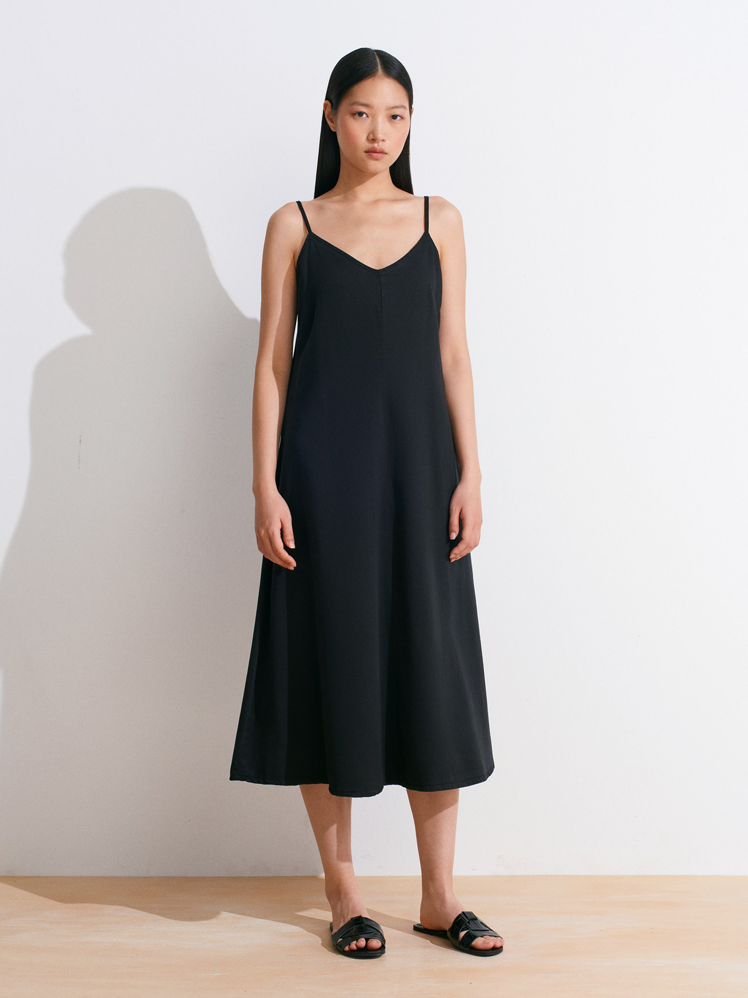90562 İnce Askılı Parçaboya Denim Elbise-Siyah