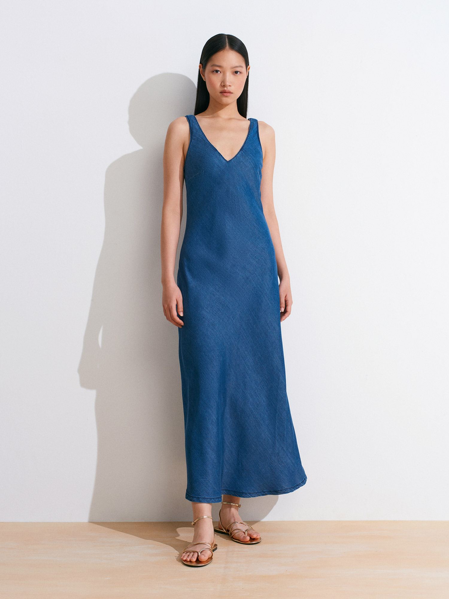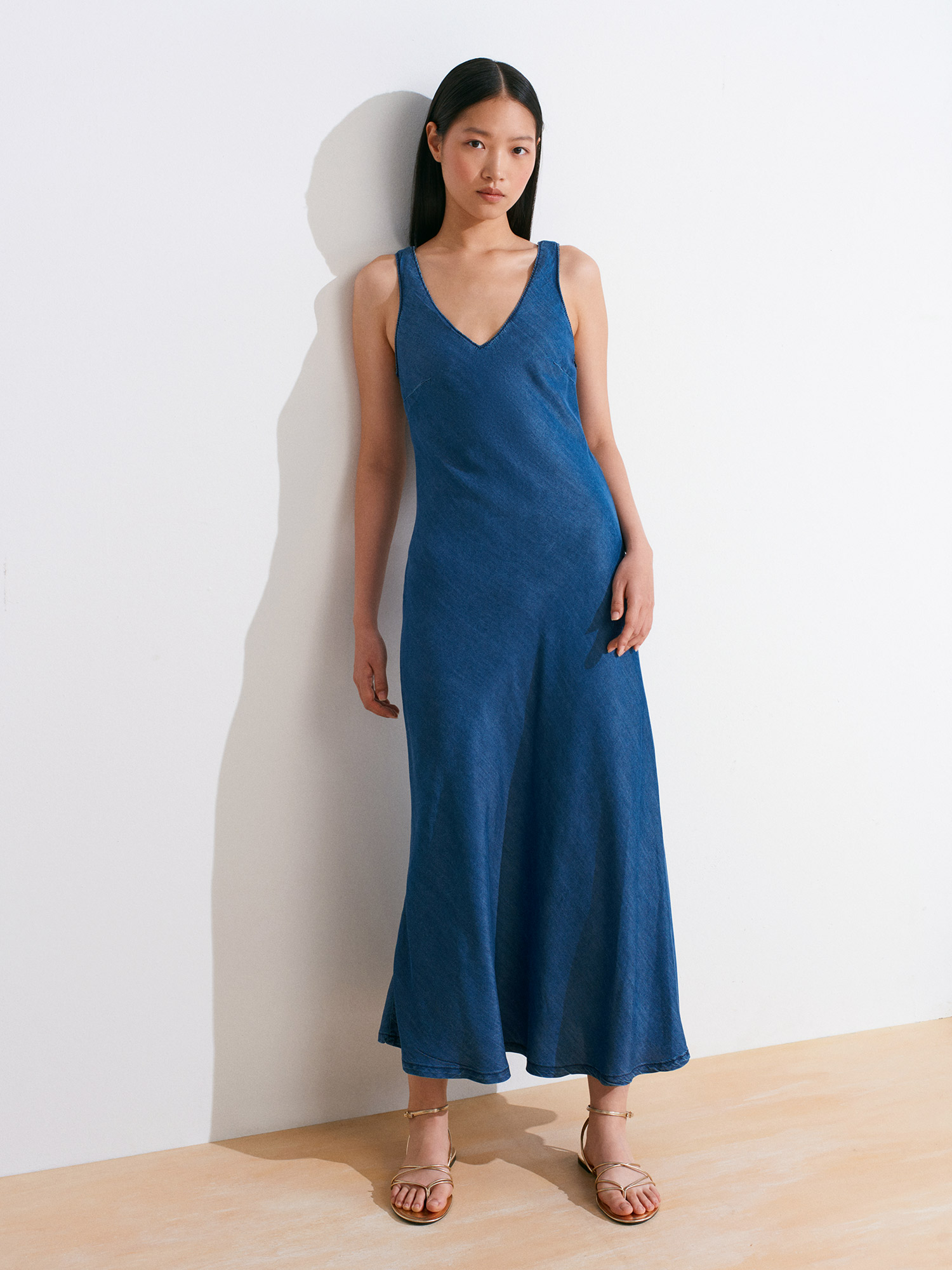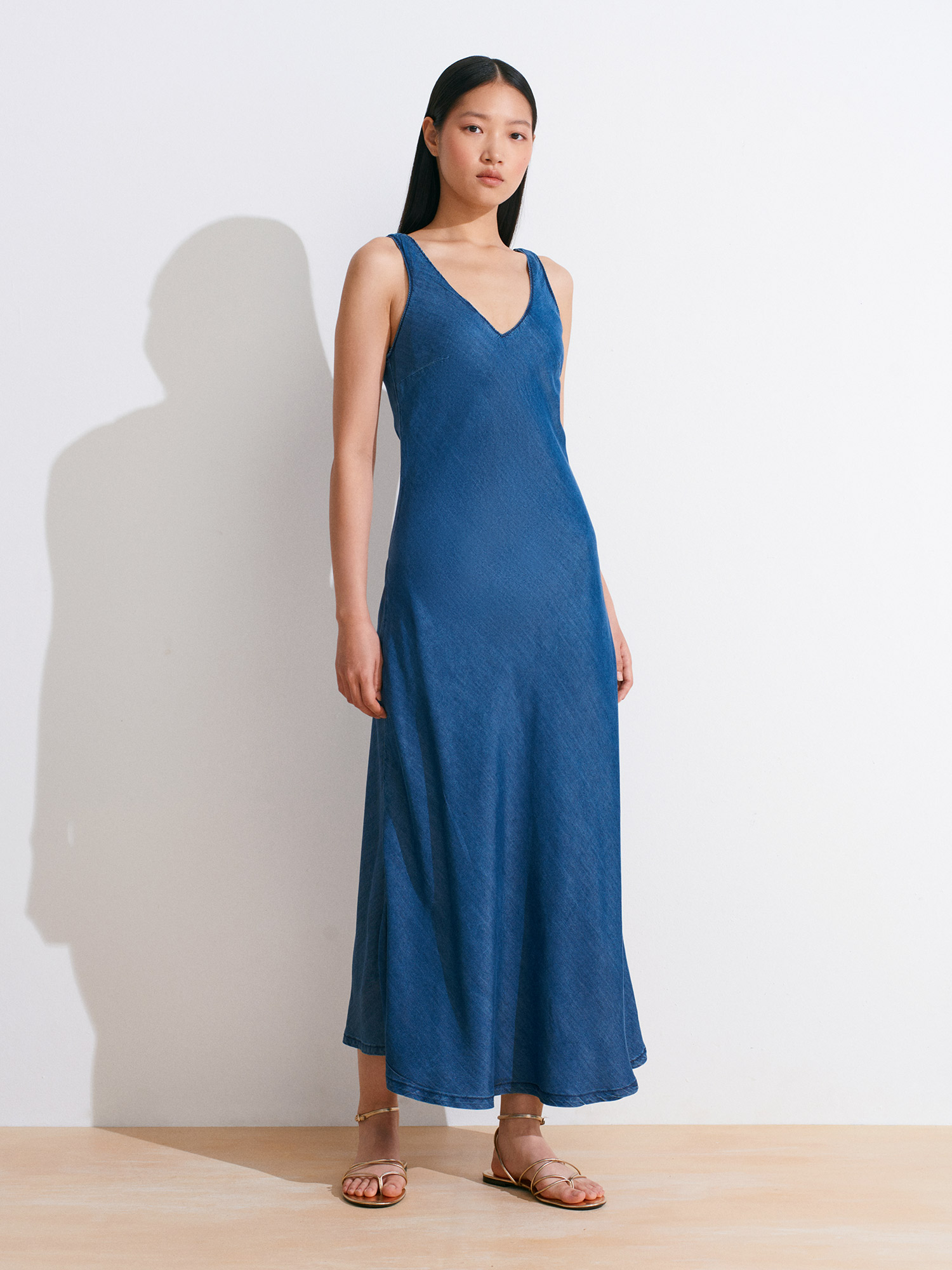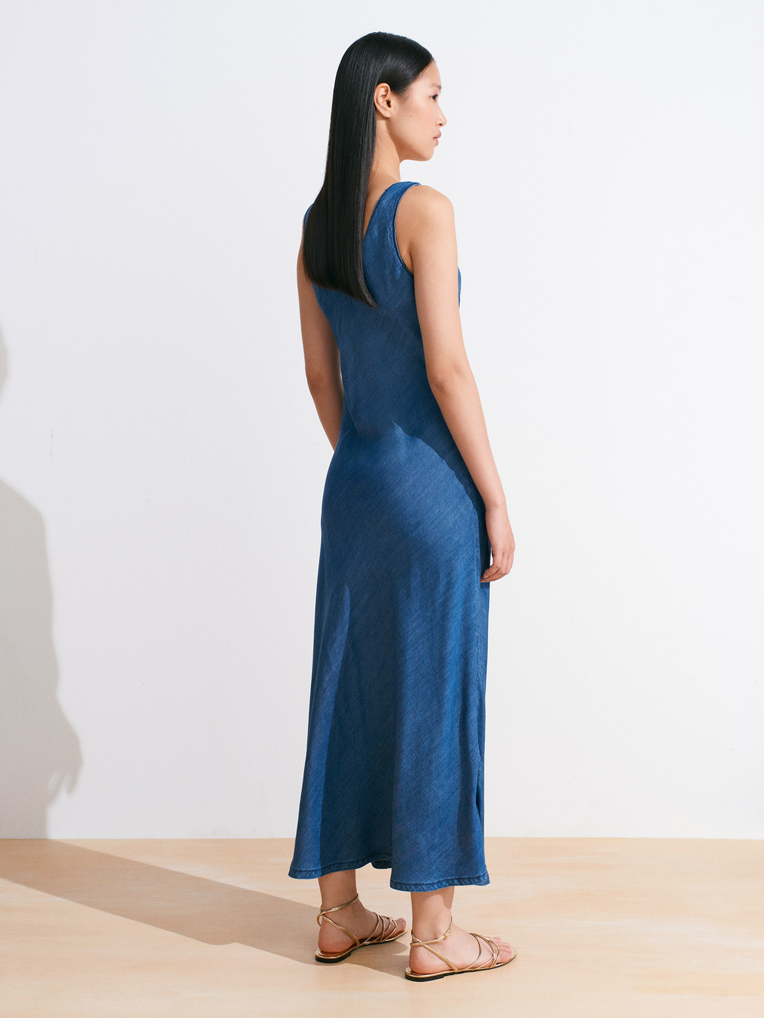 90567 Lyocell Verev Kesim Denim Elbise-Lacivert