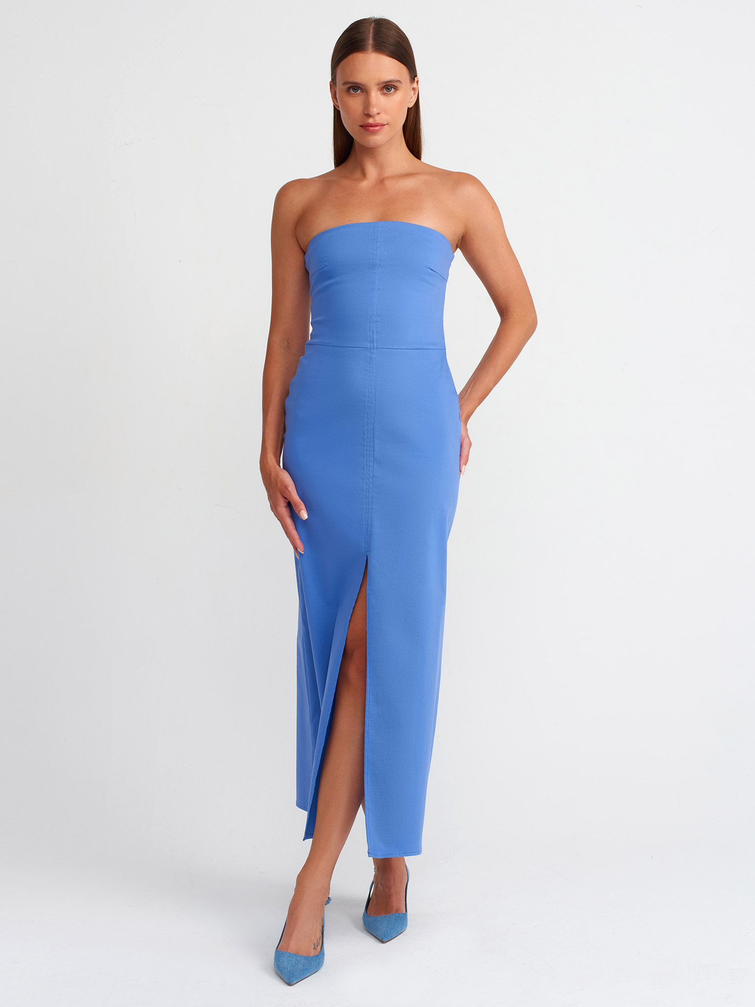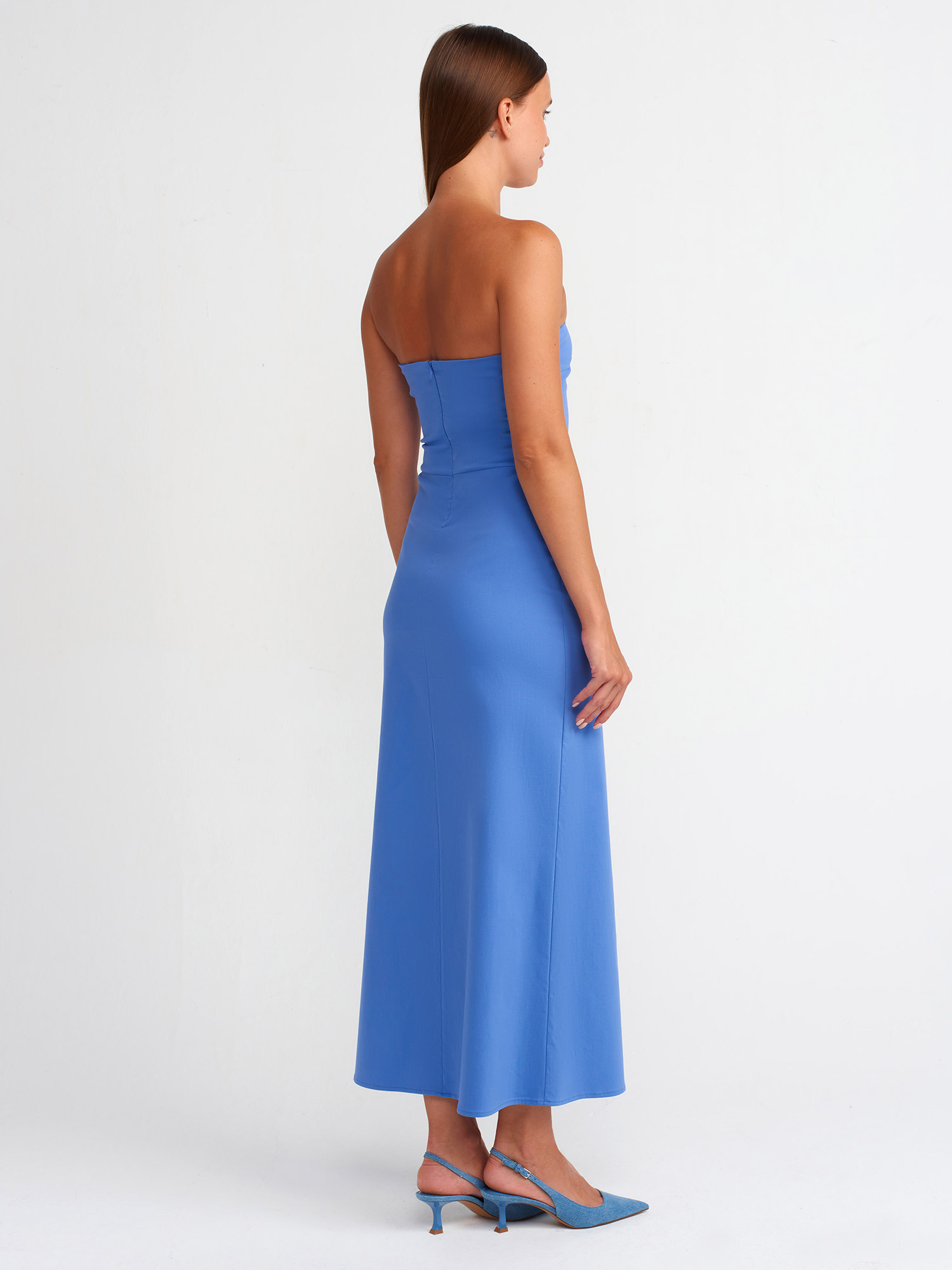 90758 Straplez Elbise-İndigo