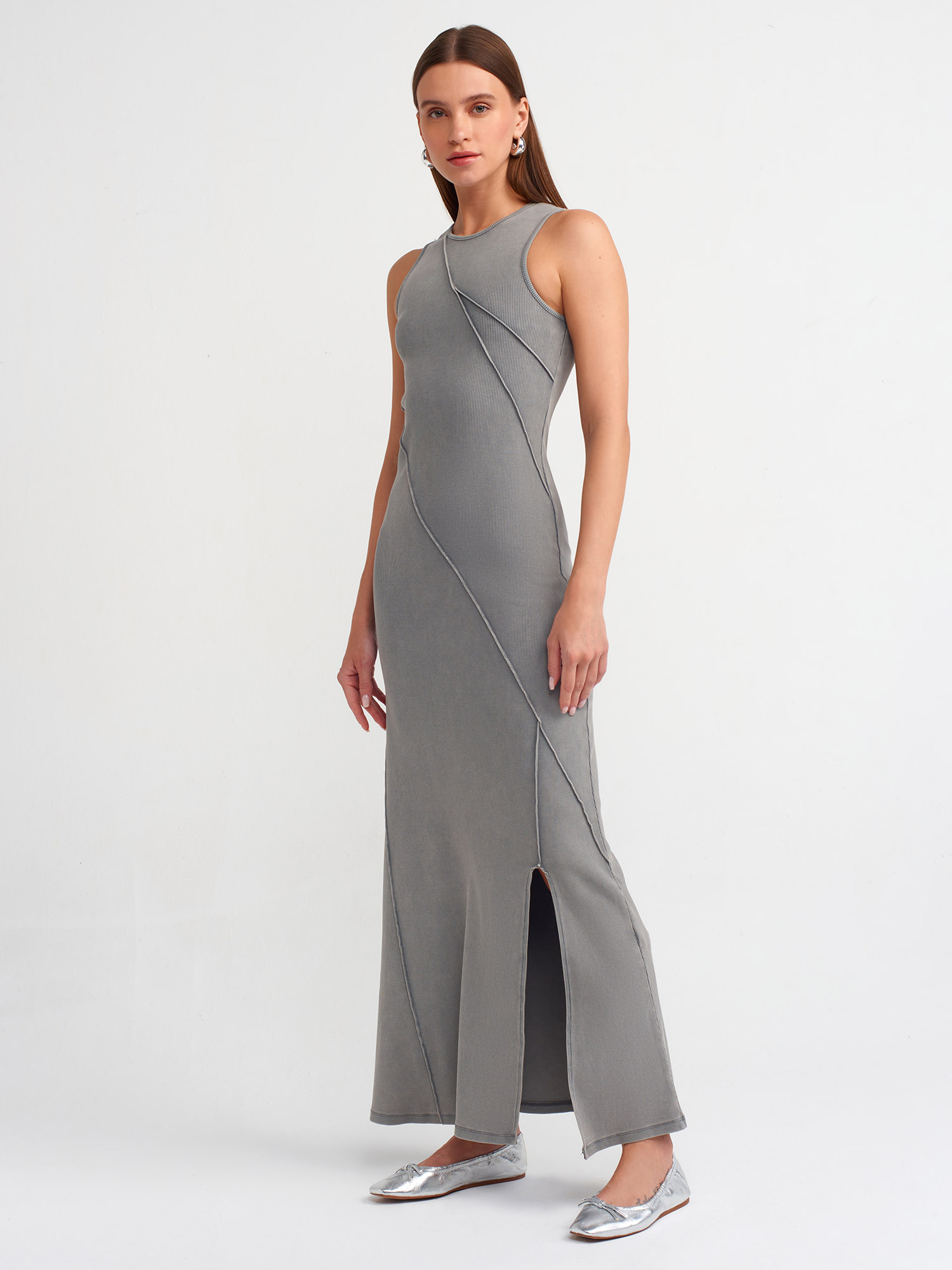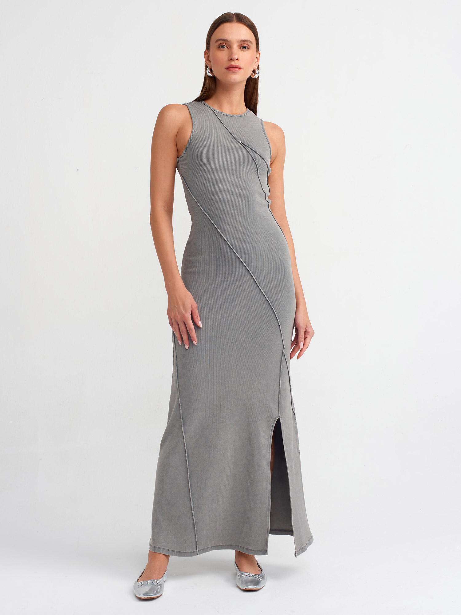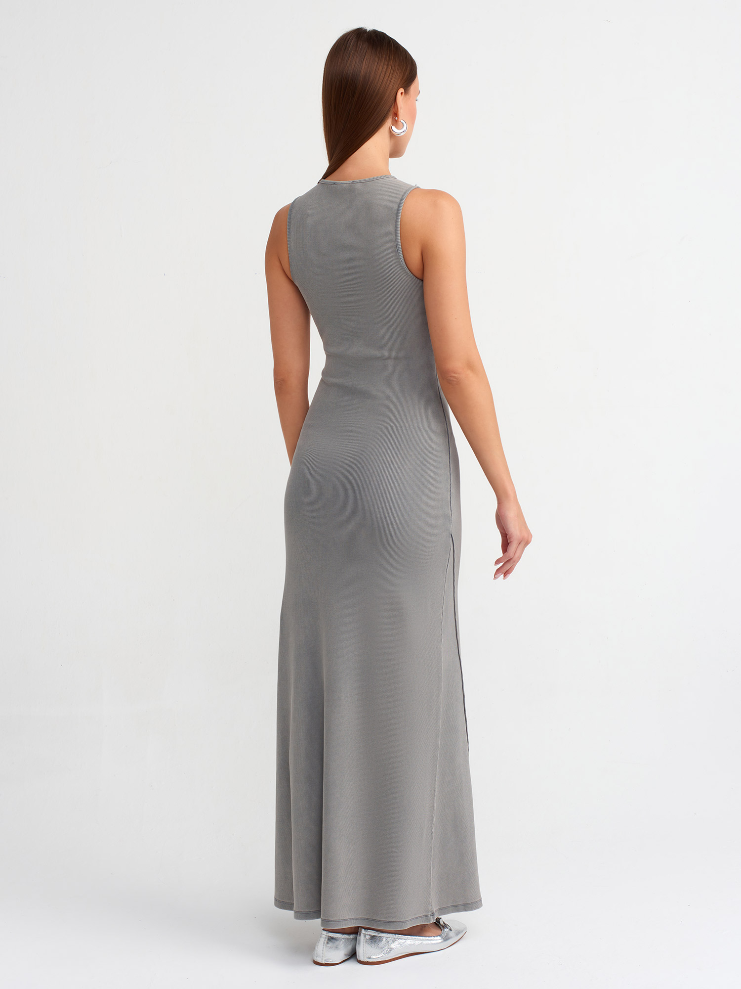 90868 Yıkama Efektli Maxi Elbise-Gri