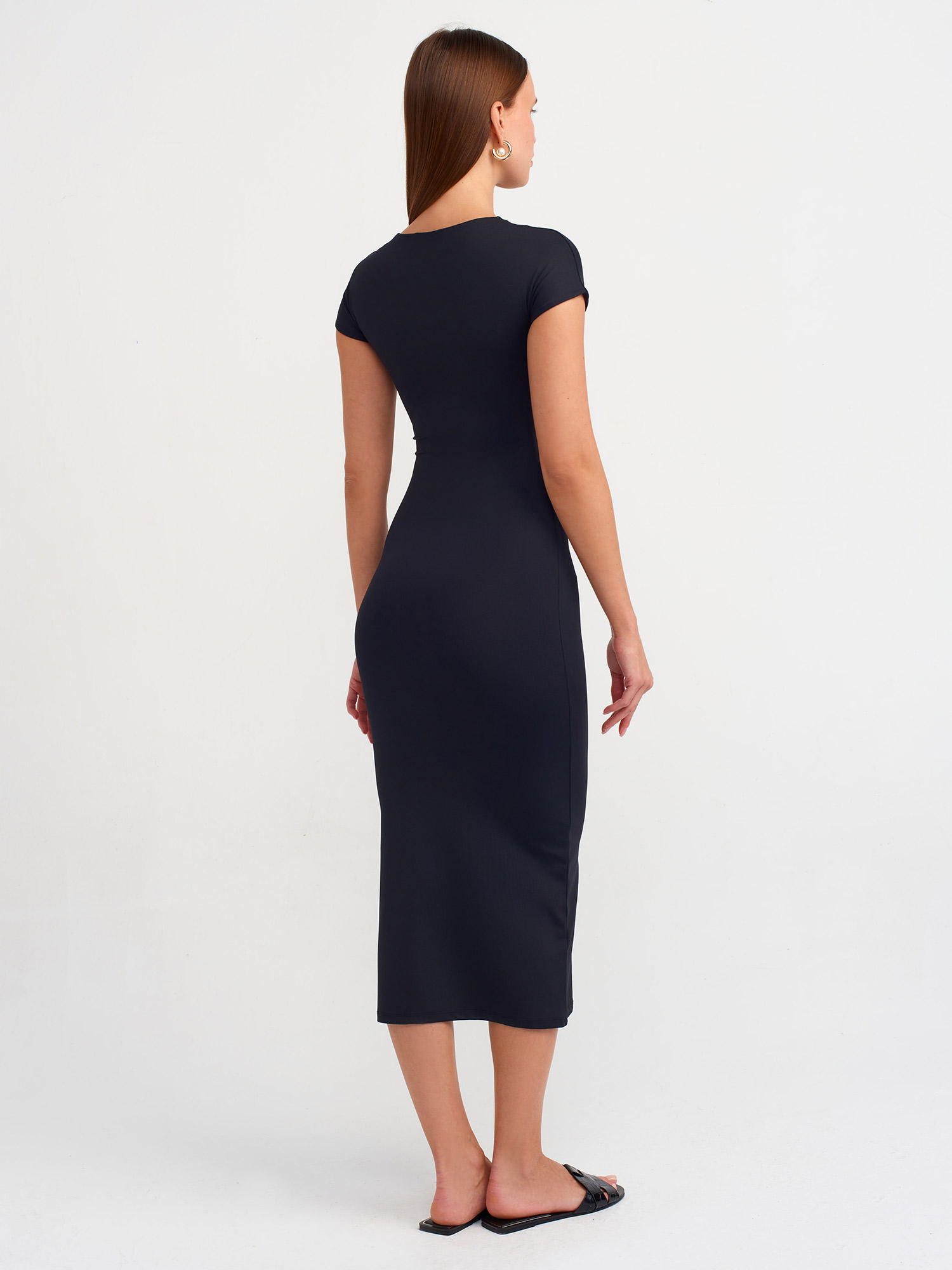 90890 Bisiklet Yaka Uzun Elbise-Siyah