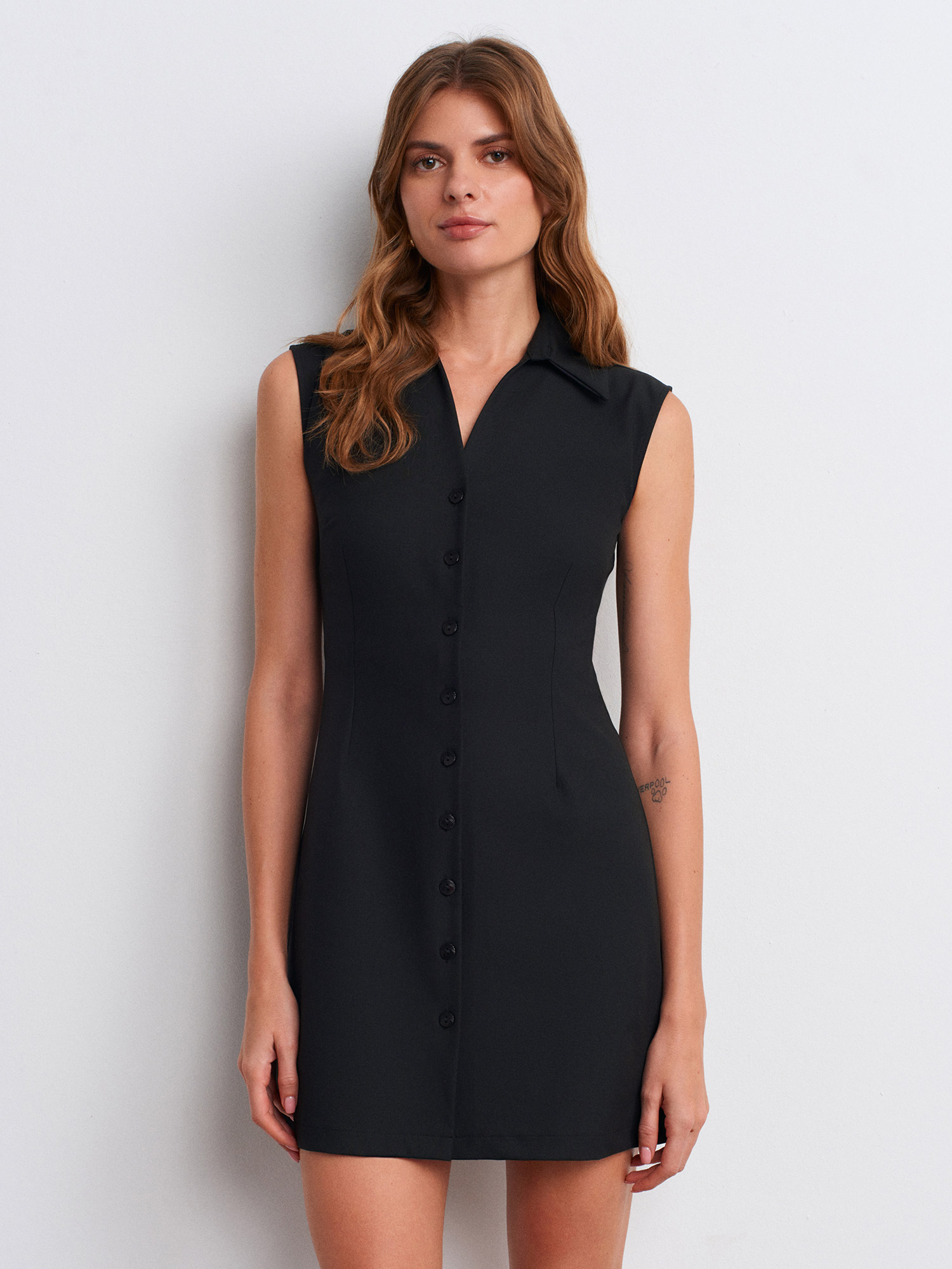 90929 Kolsuz Mini Elbise-Siyah